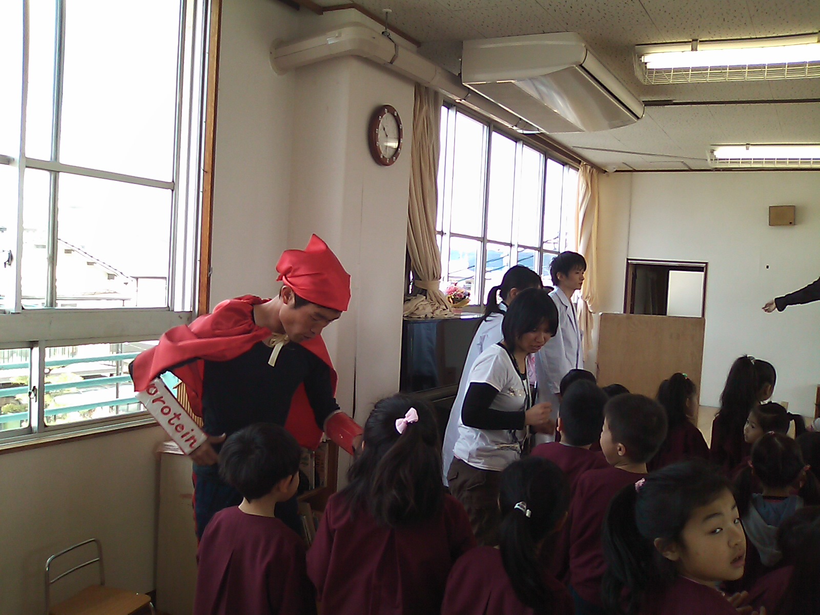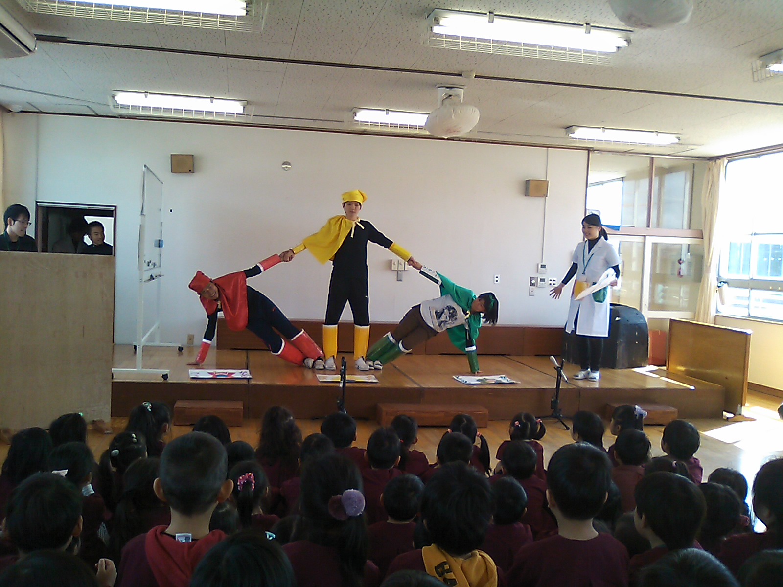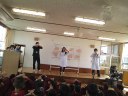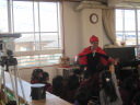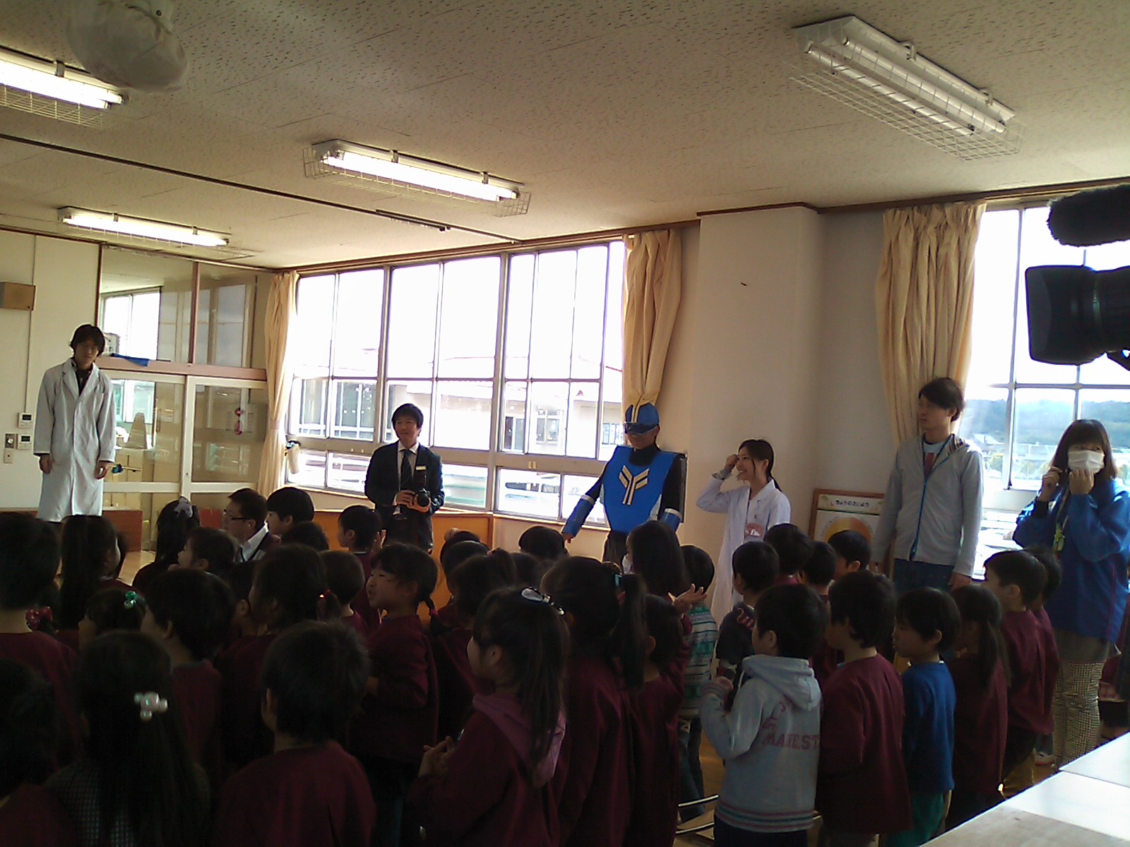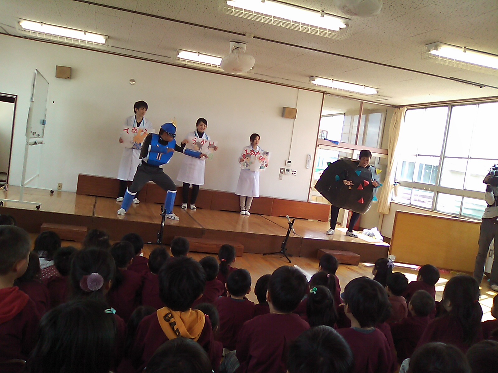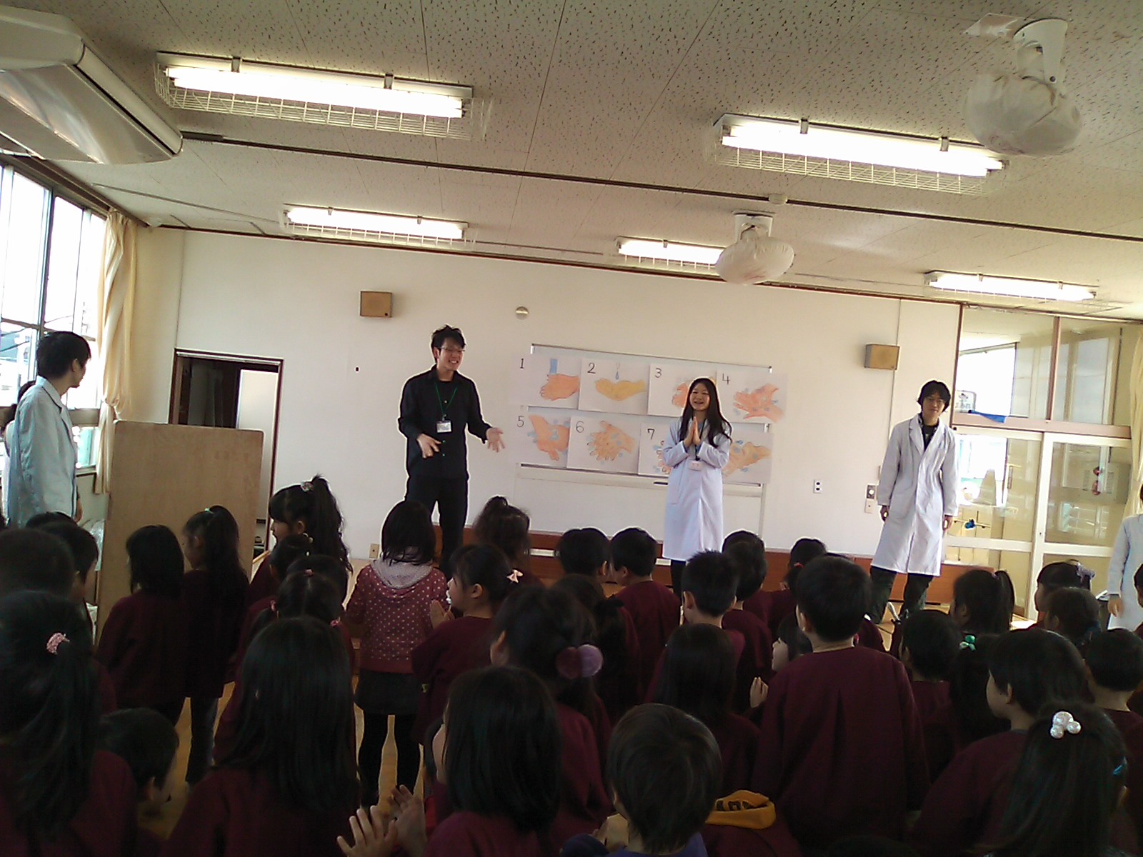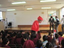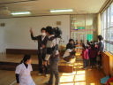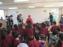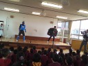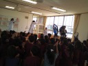 子どもたちもノリノリ! インフルエンザウィルスに泣き出した子も居ましたが,最後にコールドバスターがやっつけると笑顔になりました。