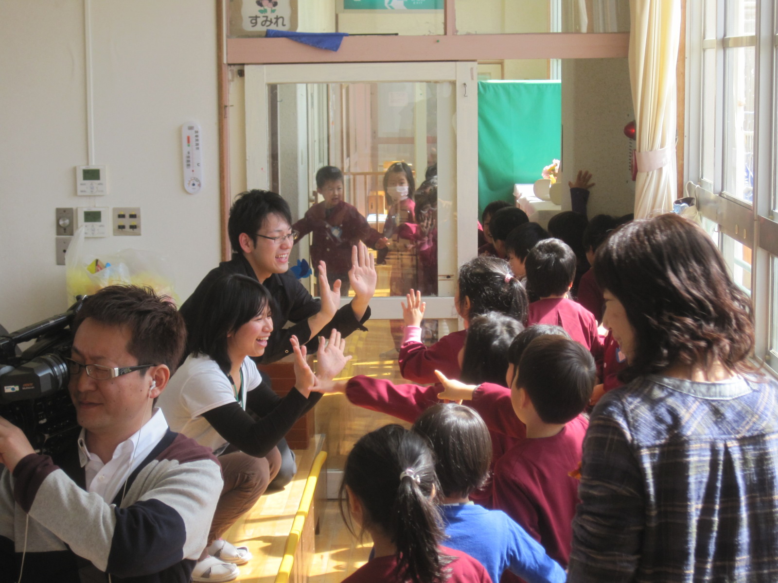 公演終了後も,子供たちの人気者です!!!! みんな,バイバイ