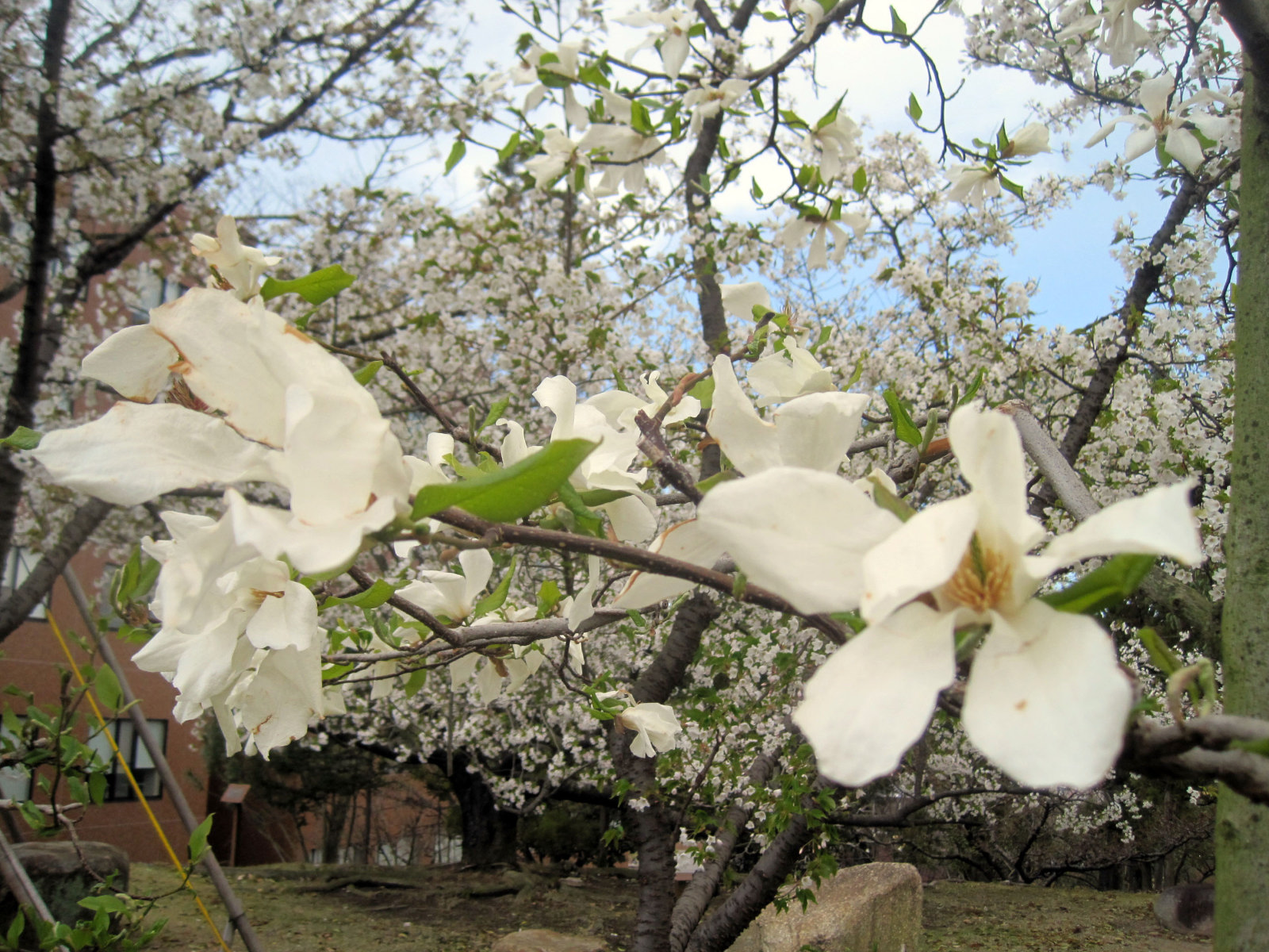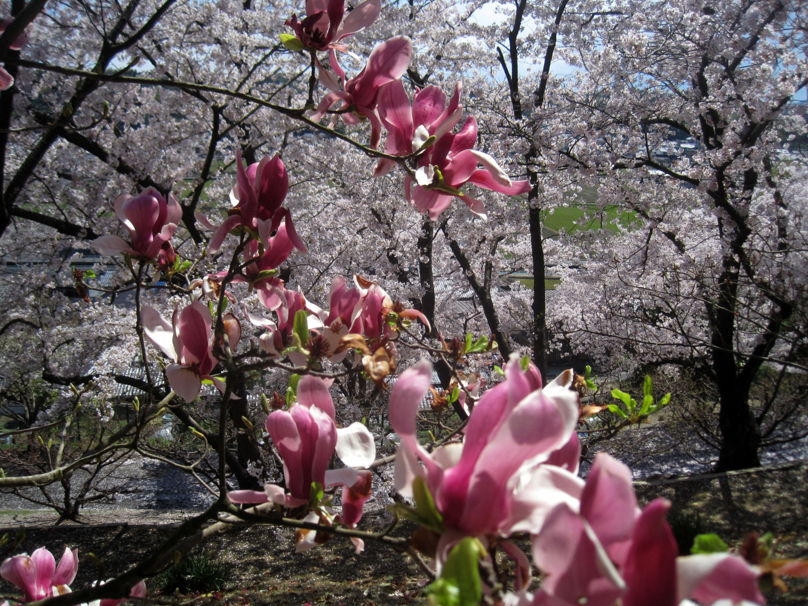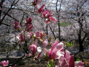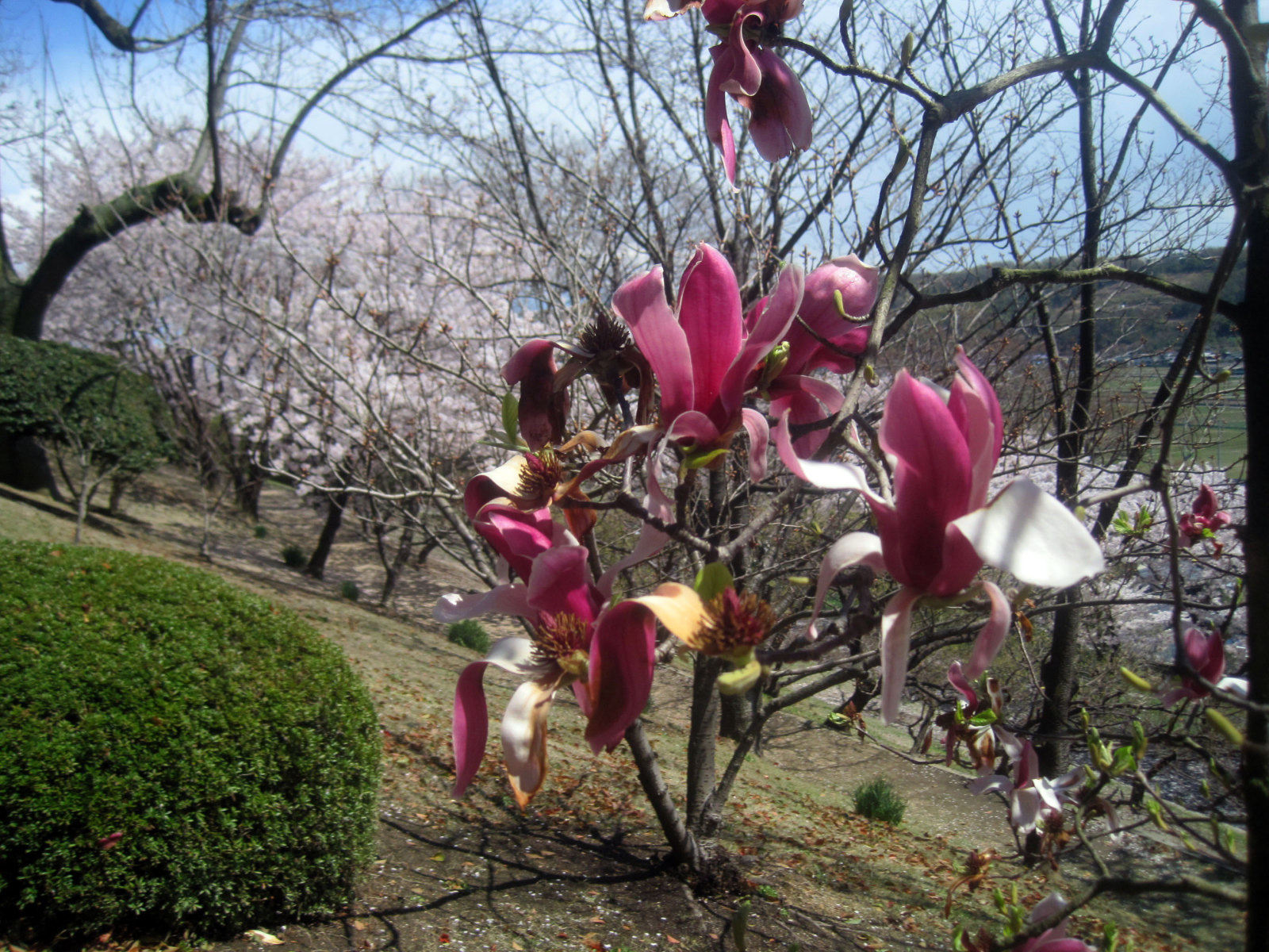 日曜日は,仕事と趣味の両方で大学。昼過ぎに,休憩がてら「ふるさとの森」へ。ソメイヨシノやオオシマザクラ,辛夷や木蓮,そして桃も・・みんな春を謳歌するように満開! 花冷えの週末でしたが,それでも青空も拡がってきて。そういえば,今年は,バタバタしていてじっくりと花を愛でる機会がなかったので〜穏やかな午後でした。
