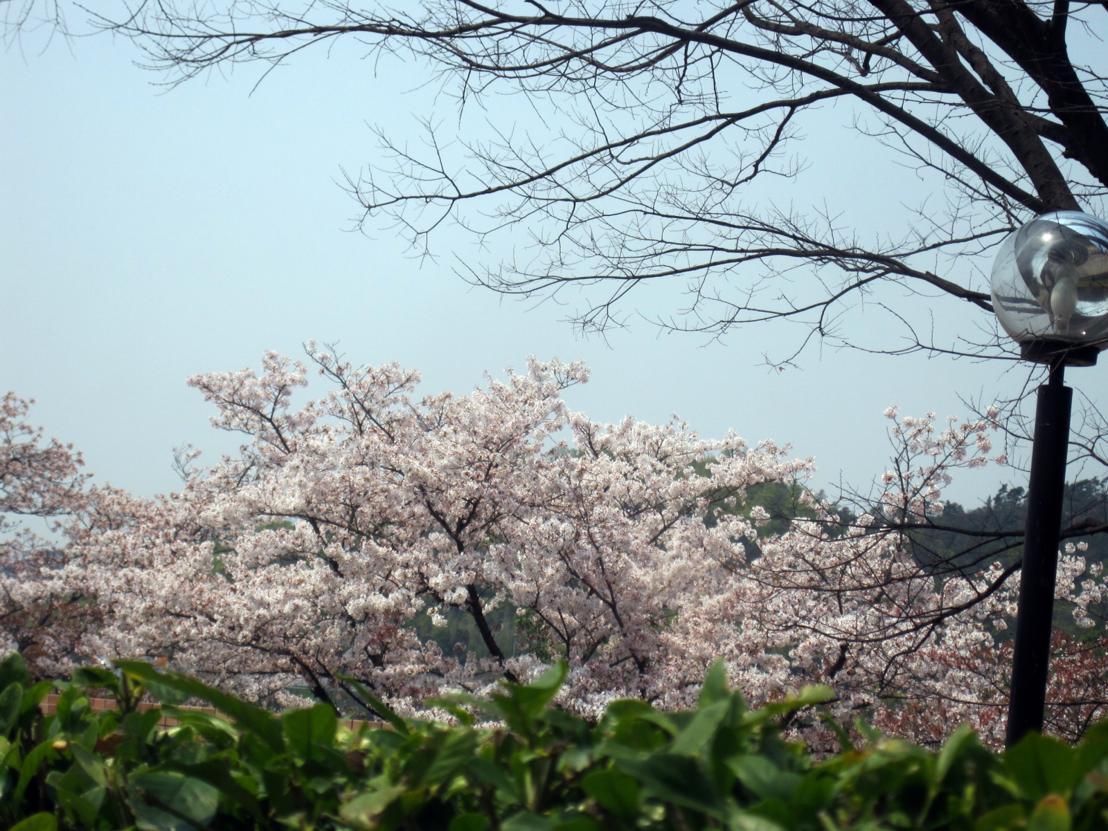 春霞の中,まだまだ残っている桜も新学期の雰囲気ですね!
