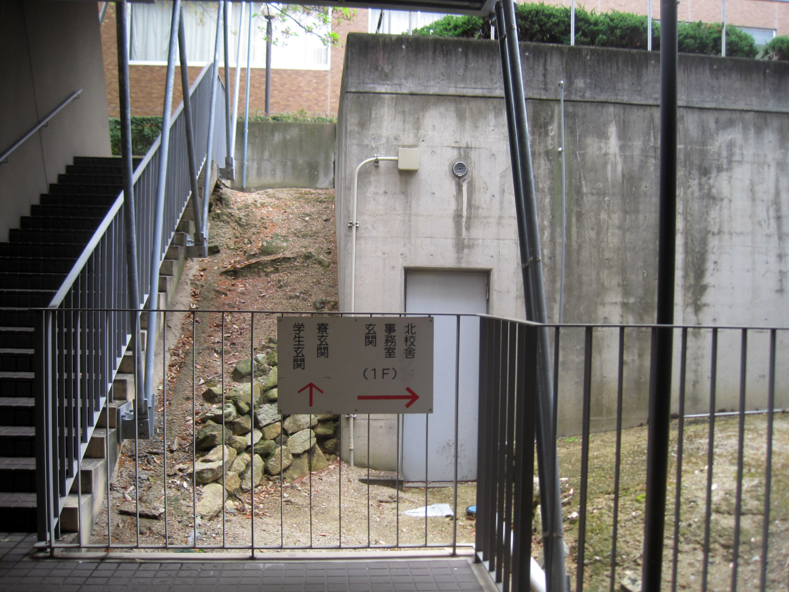 正面玄関・寮の玄関と職員玄関!