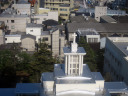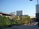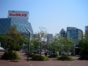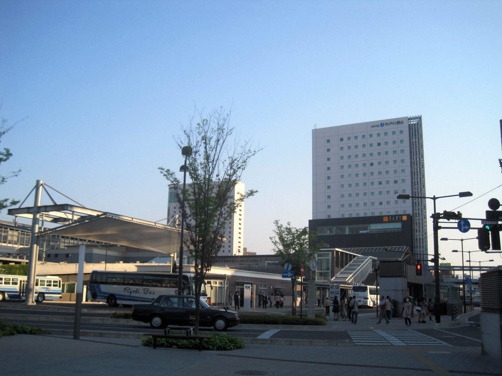 春の青空の下の岡山駅東口広場から,徒歩で少し・・・。