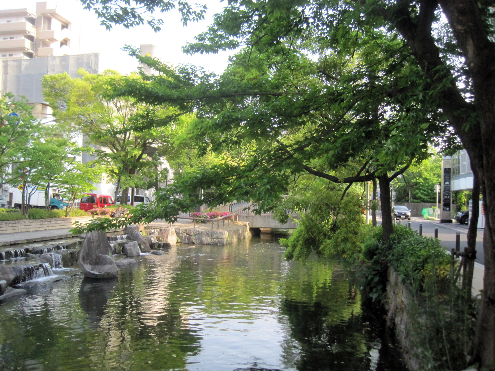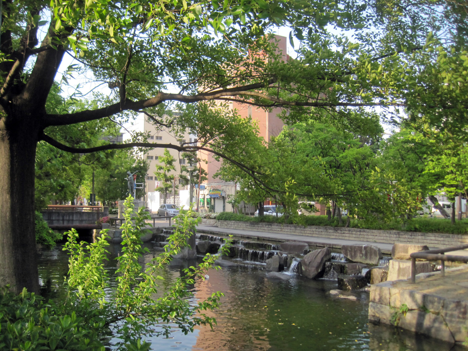 イトヨに車を停めて・・・山陽新聞社ビルを眺めながら・・西川緑道公園を「ちょっと寄り道/ブラ@タケミ」