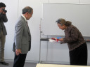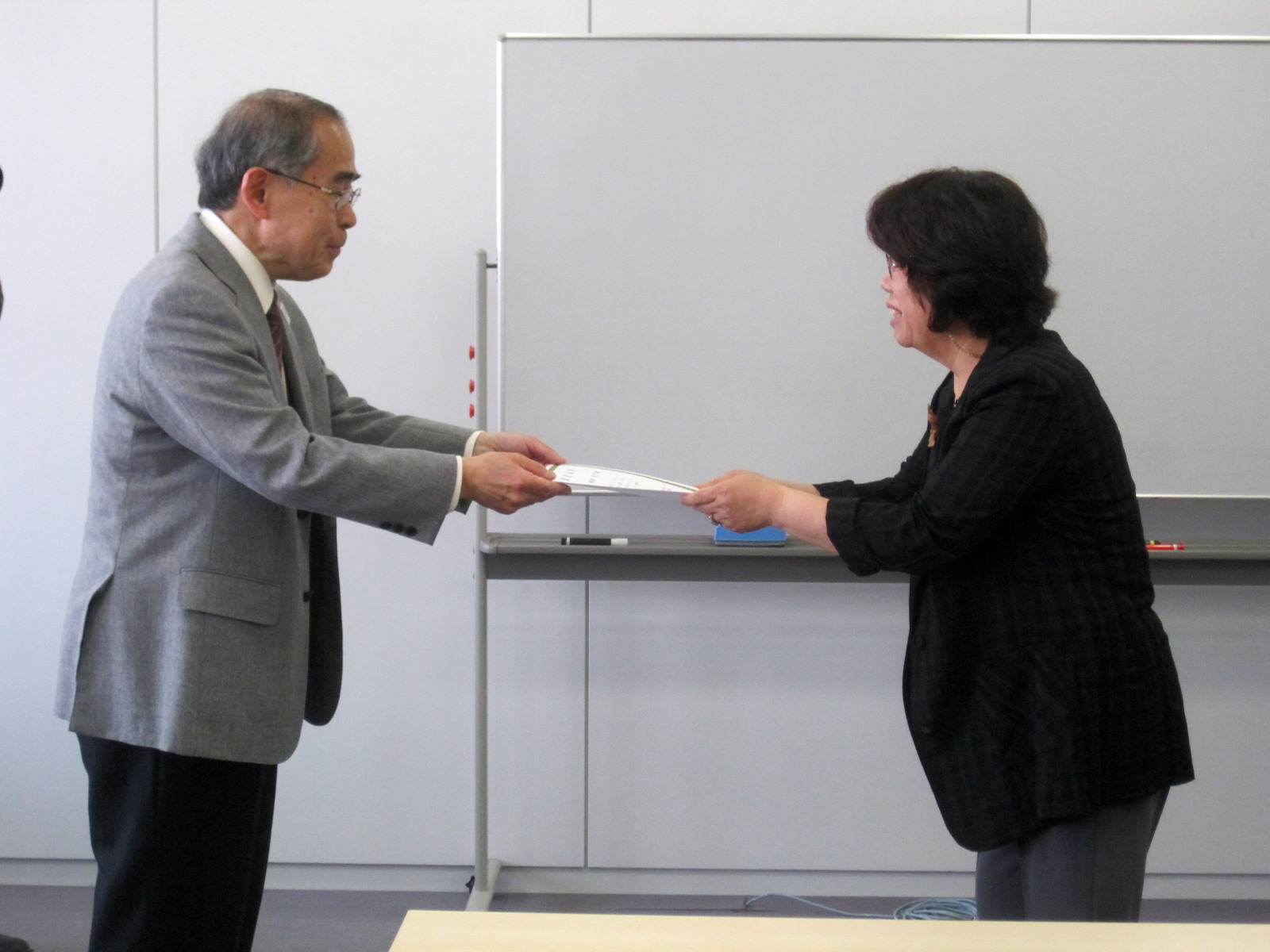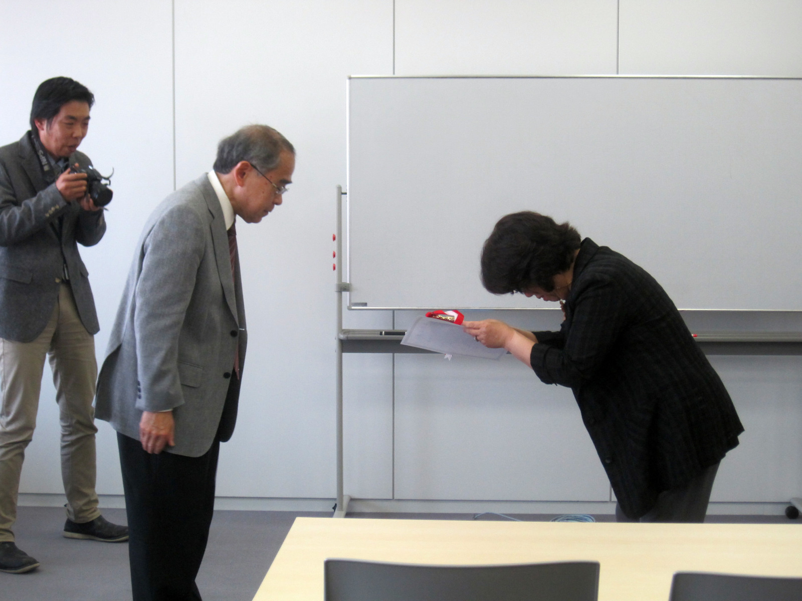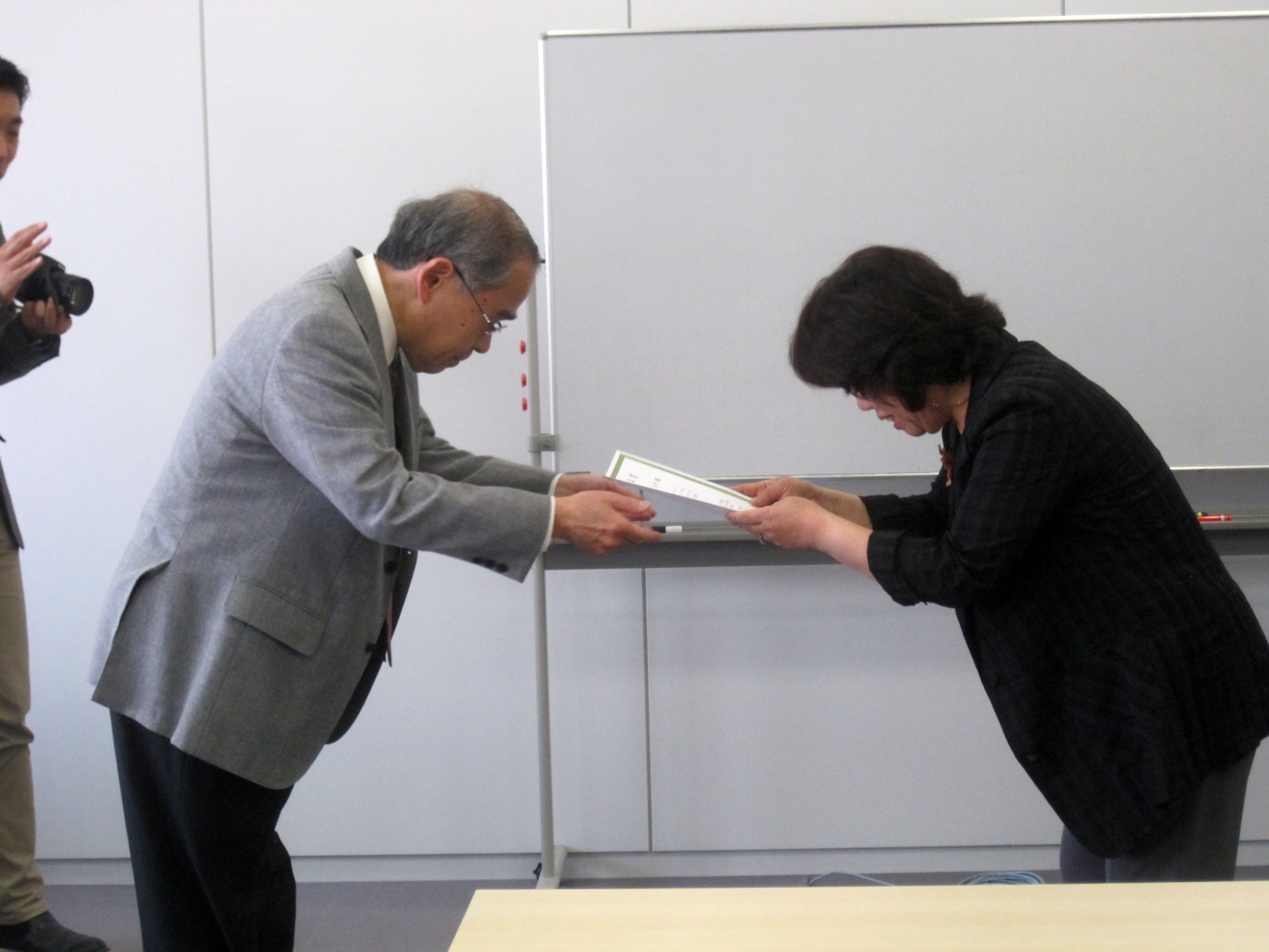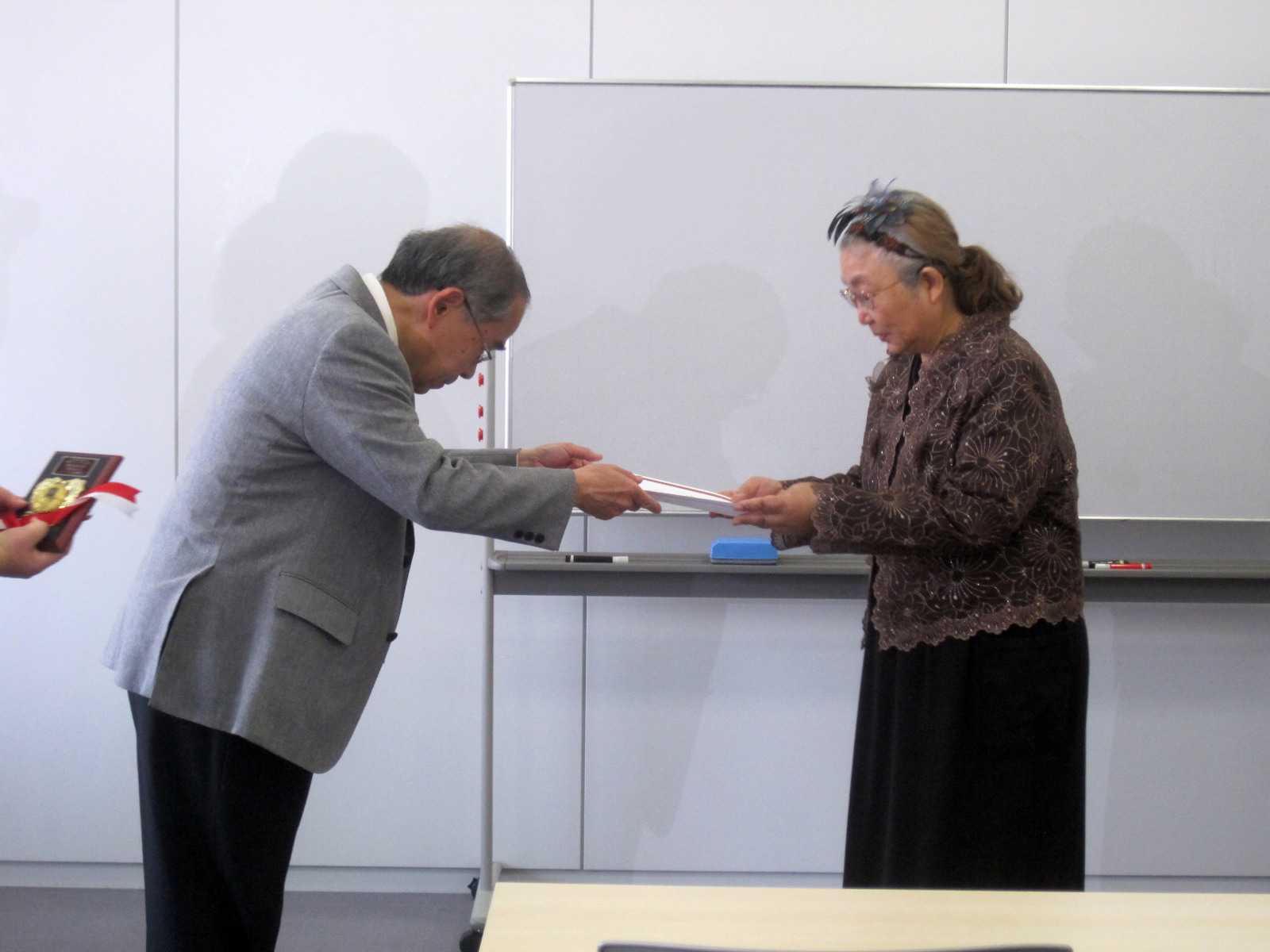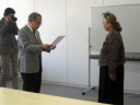 大槻は司会で・・・授与は,大学コンソーシアム岡山運営委員長の加藤先生