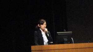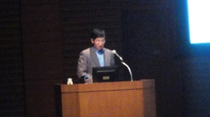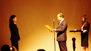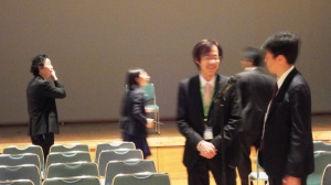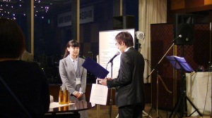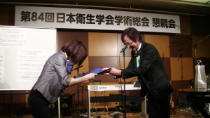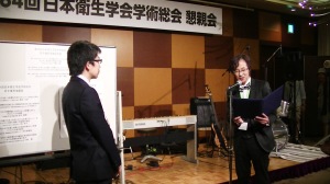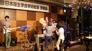 | バンドメンバーが入ってきましたが・・ここで,若手優秀発表賞の授賞式です。 おめでとうございました。 |