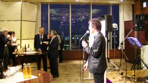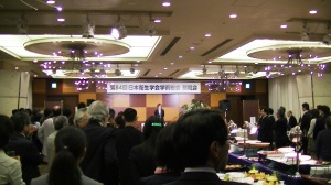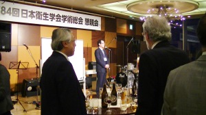 | そして懇親会! 会長として大槻よりご挨拶,遠山理事長にご挨拶を頂戴し,来賓を代表していただいて川崎医科大学衛生学(前)教授でいらっしゃる植木絢子先生にお話をいただきました。そして,今回「予防医学week in OKAYAMA」として5/25まで第87回日本産業衛生学会の会長をお務めでした,荻野先生に乾杯のご発声をしていただきました。 |