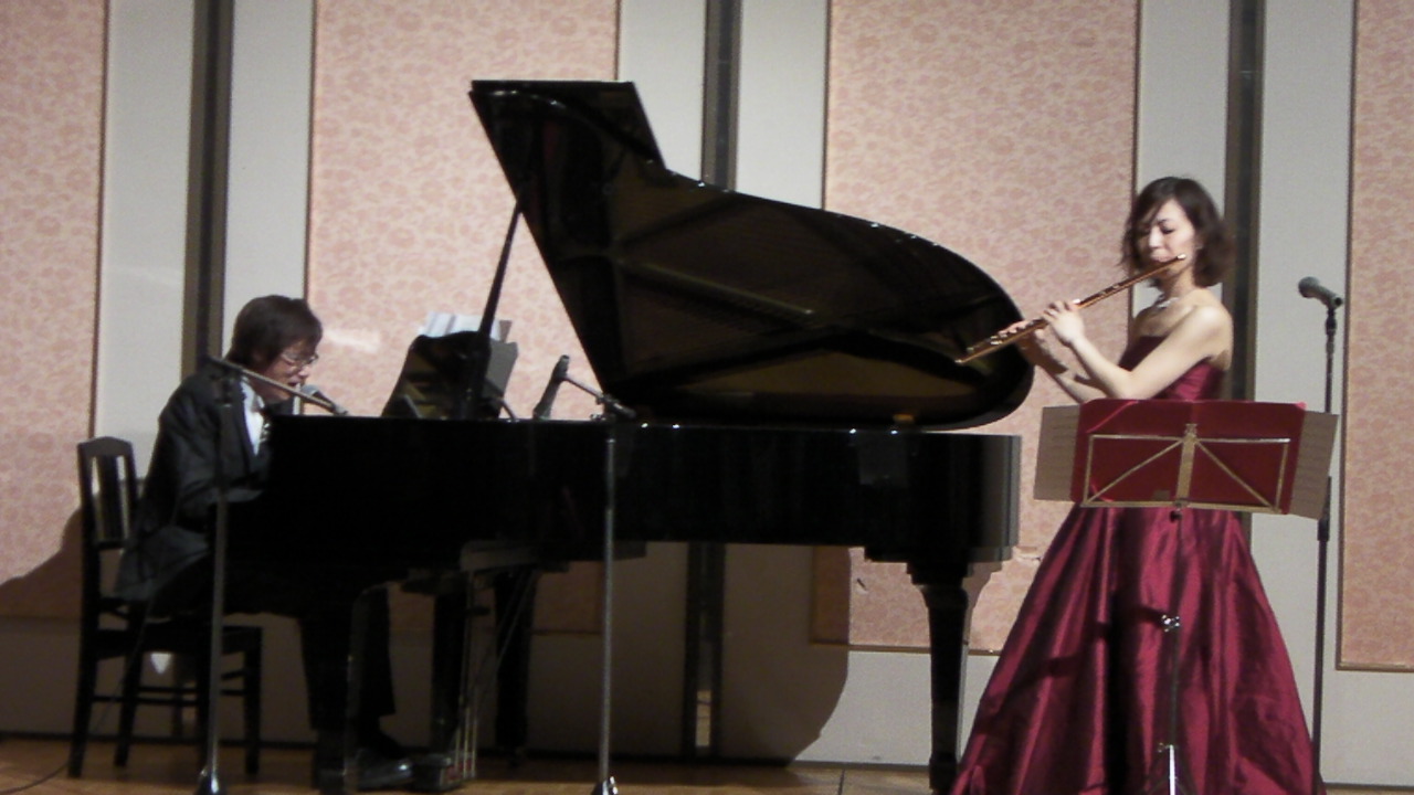 交流会では,「ミニ演奏会」フルートの小池かほる先生とDUOをしました。演奏中の様子です。