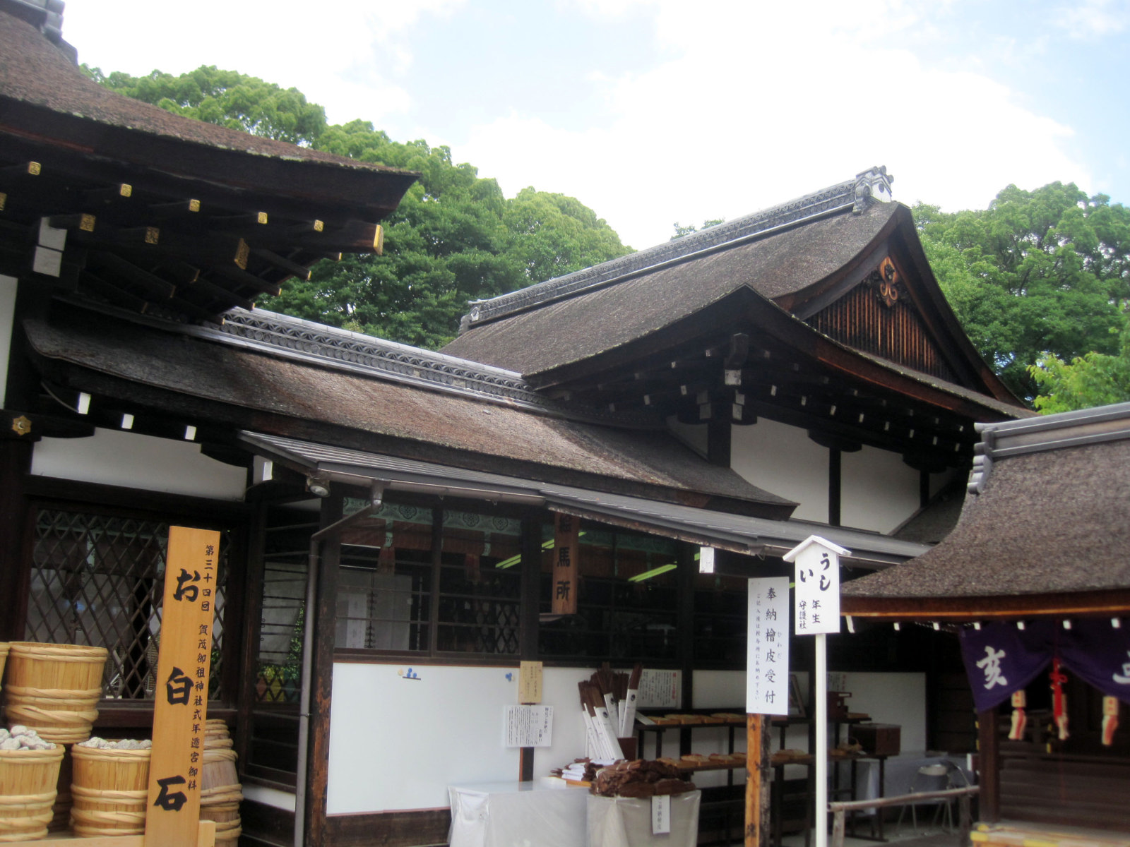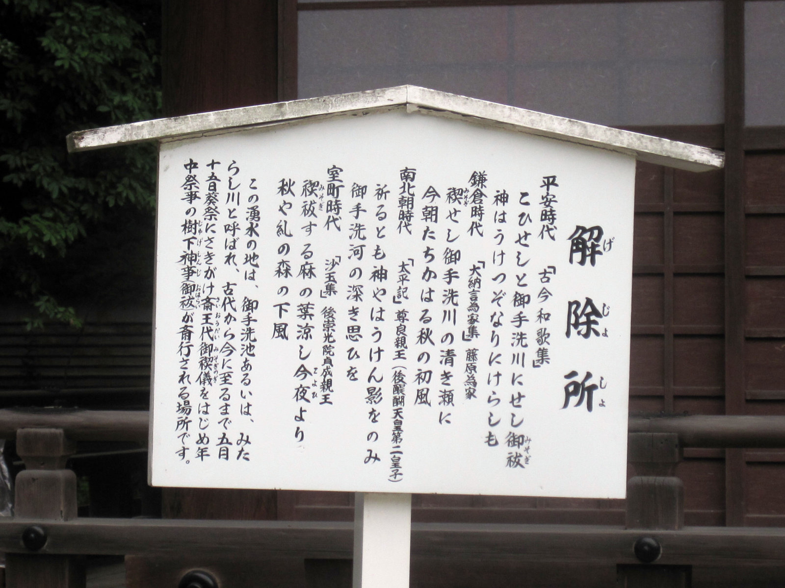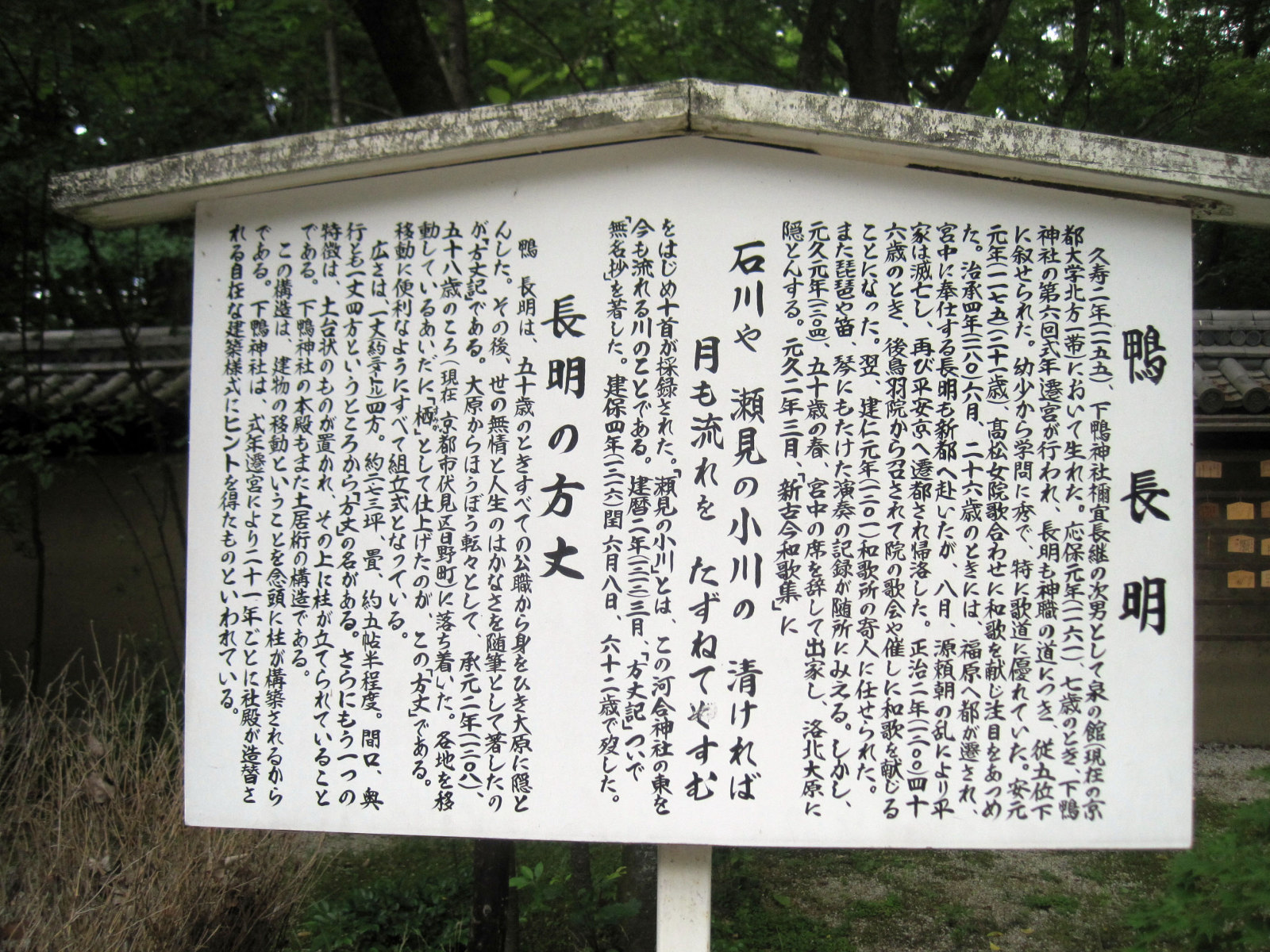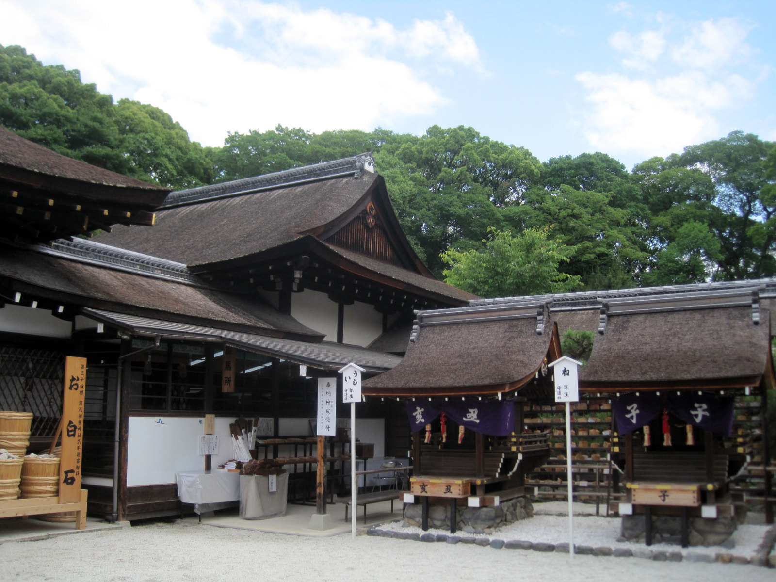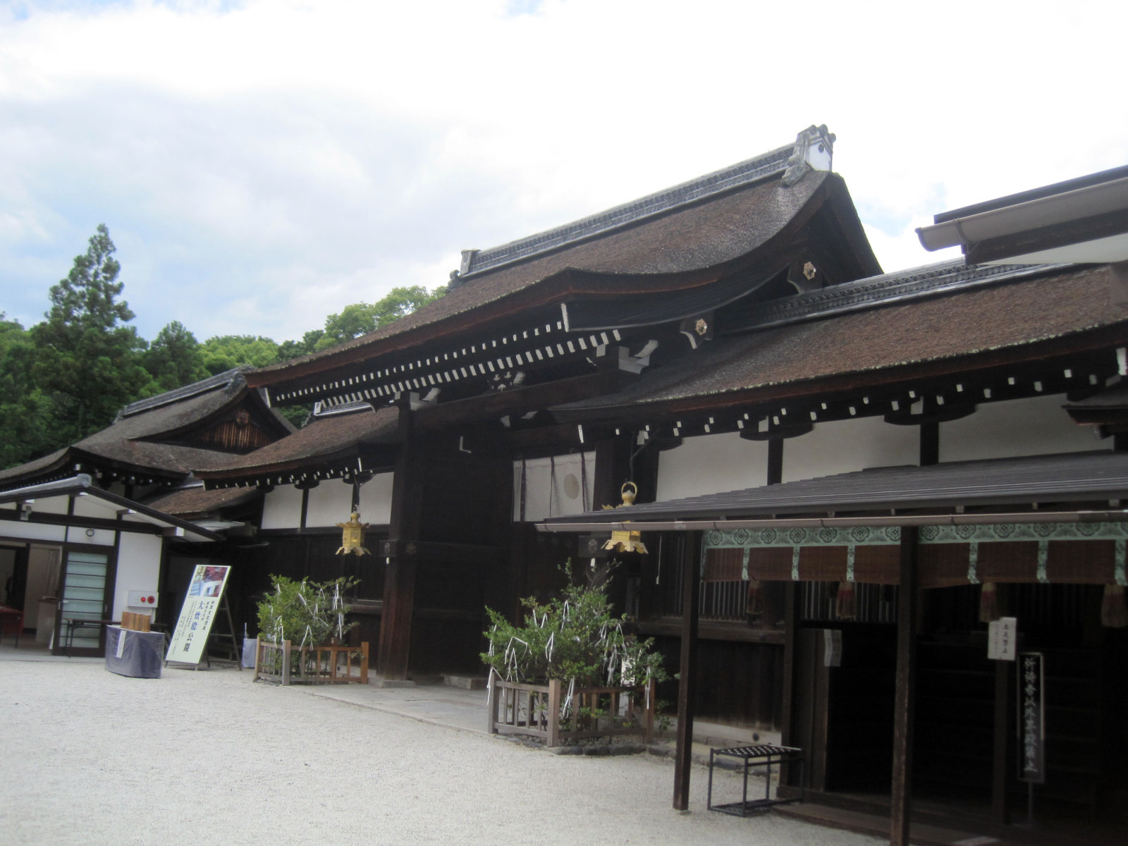 【平安期以前の創祀で京最古の社の一つで山城国一の宮と崇められ、国事を祈願し、国民の平安を祈る神社として「賀茂斎院の制」「式年遷宮の制」等が定められた。祭神は賀茂建角身命と玉依媛命。国史跡「糺の森」の広大な境内には本殿(国宝)2棟や53棟の重要文化財社殿が並び、1994年(平成6)12月「古都京都の文化財」として、「世界遺産条約」に基づく世界文化遺産に登録された。5月15日の葵祭は優雅な王朝絵巻を再現する。】