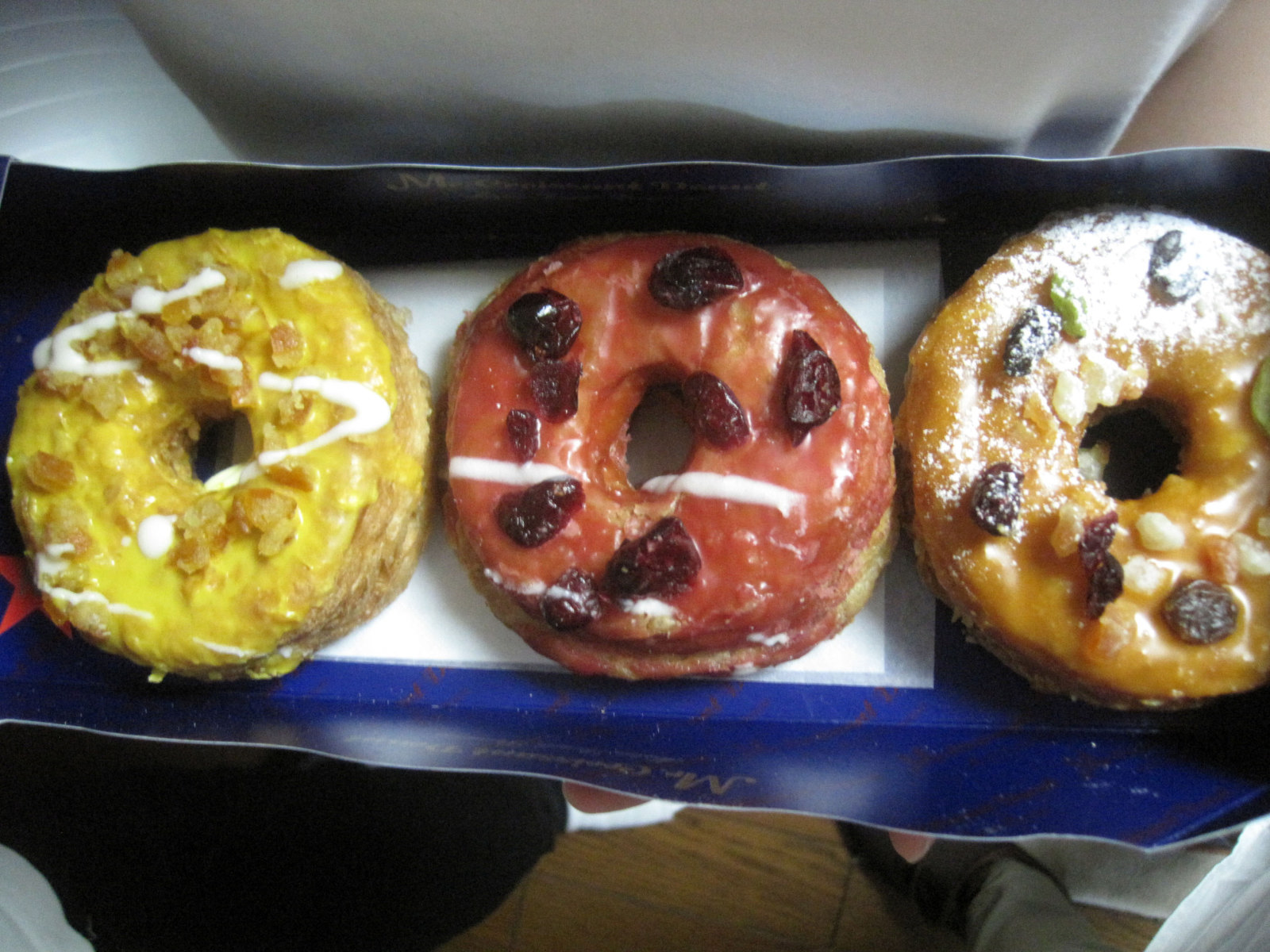 日帰りだったので,大学近辺に着いてから,夕食弁当を買ったついでに,ミスド!6/11発売のMr. クロワッサンドーナツ・フルーツ上陸ってのを,3個パックで!