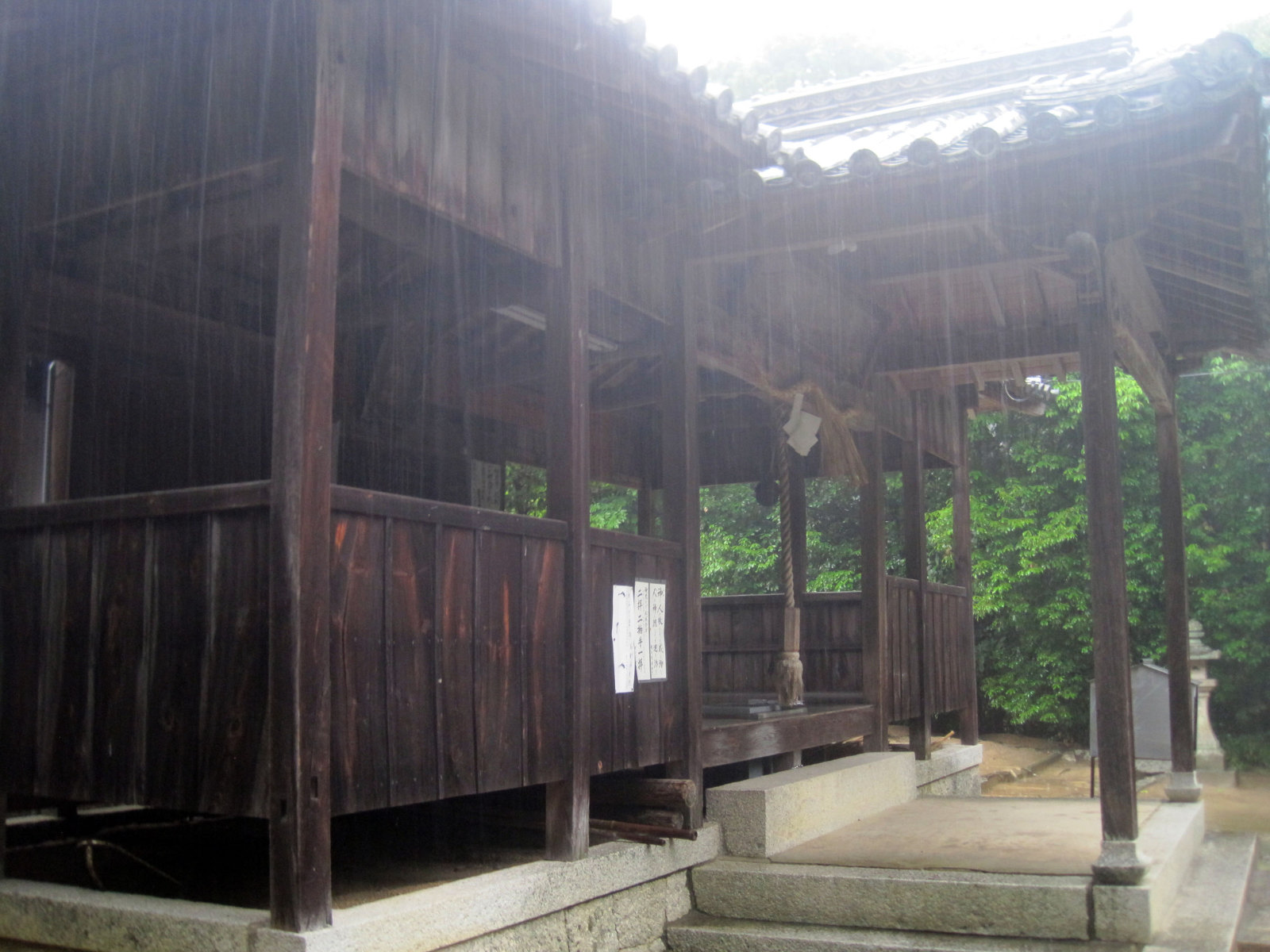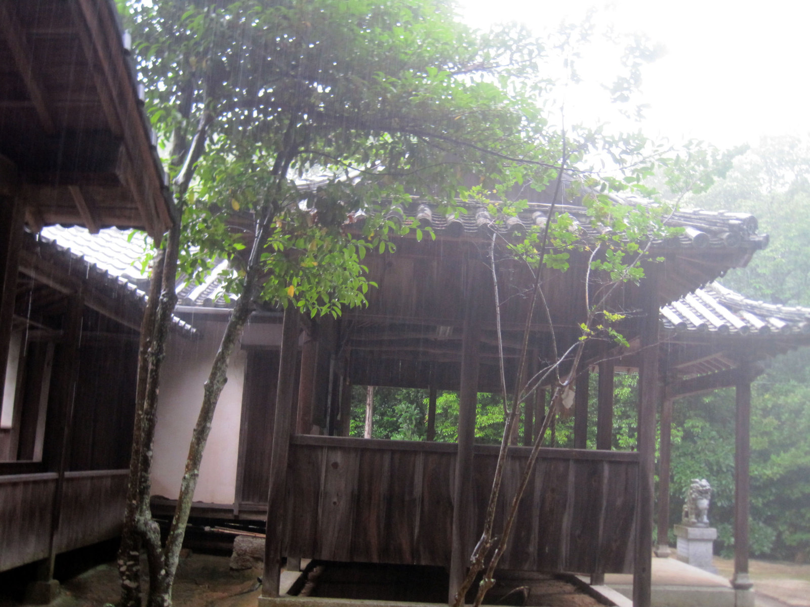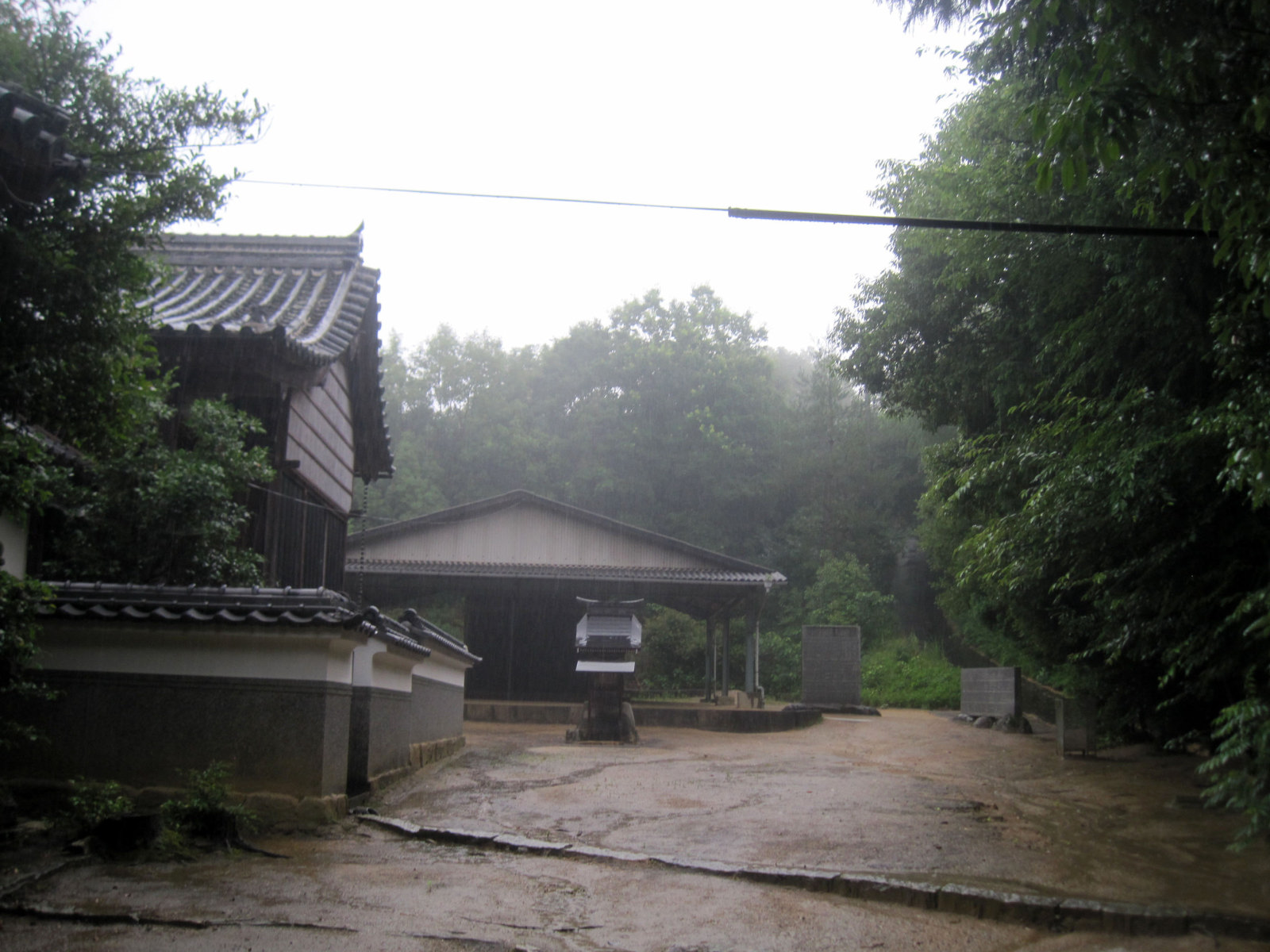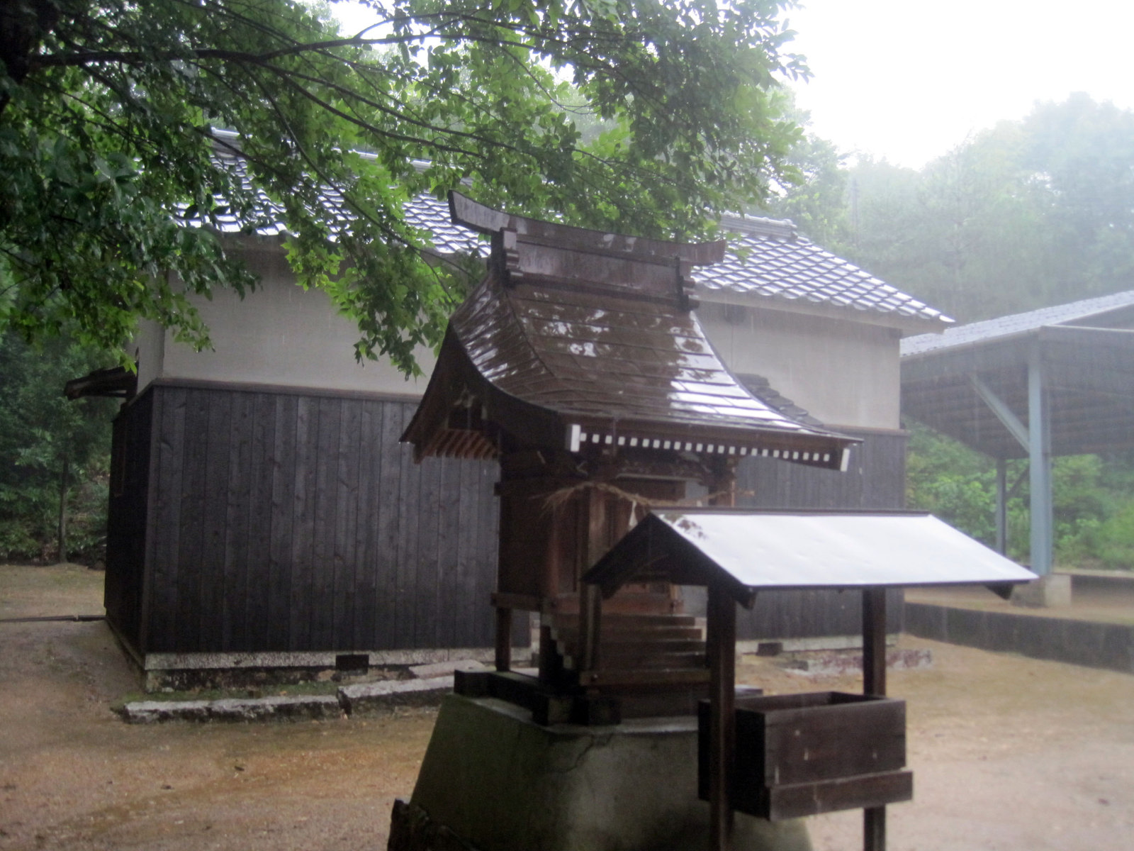 岡田分館に到着して,ちょっと早めだったので,近くの「東園神社」へ。雨に佇む中,しっかりとした拝殿の神社でした。