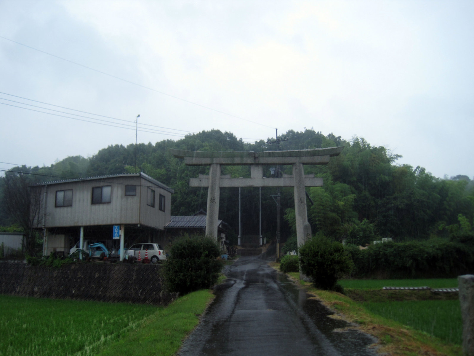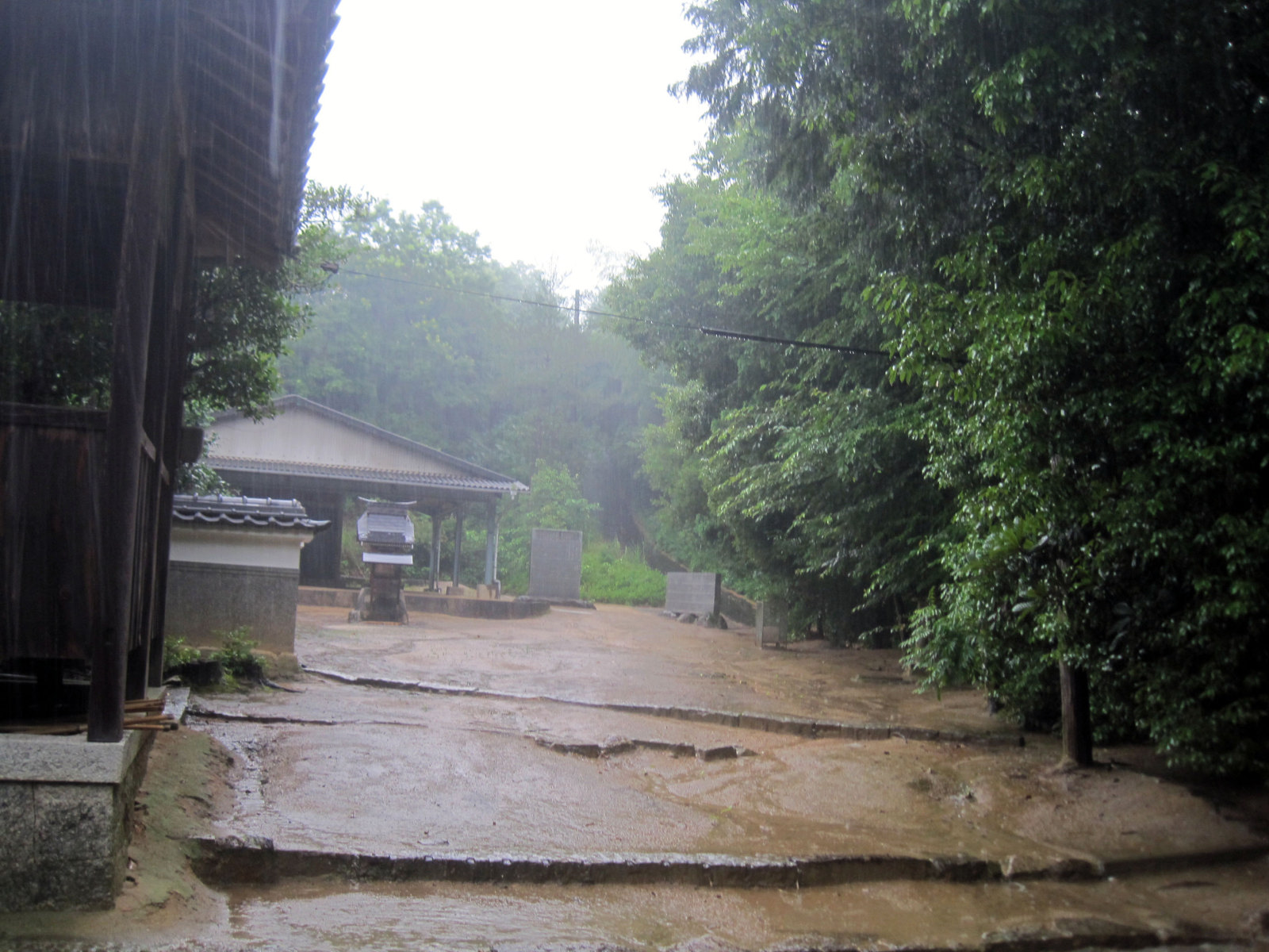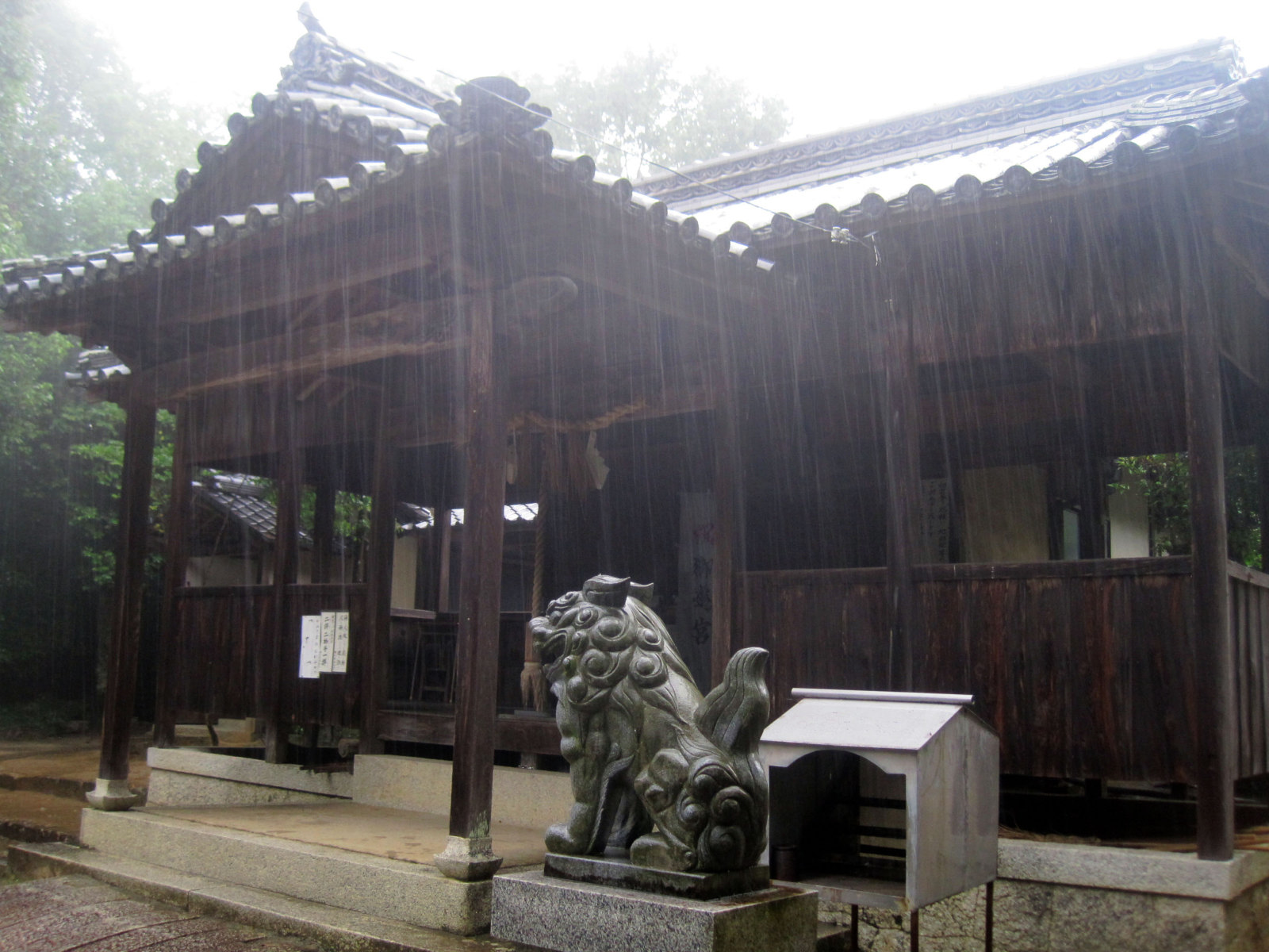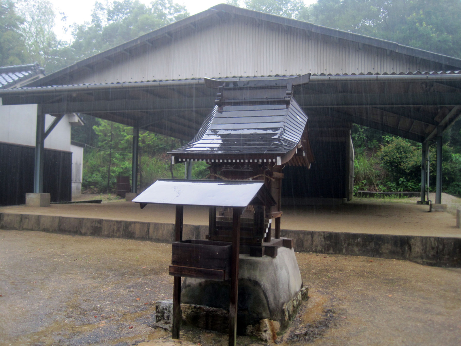 岡田分館に到着して,ちょっと早めだったので,近くの「東園神社」へ。雨に佇む中,しっかりとした拝殿の神社でした。