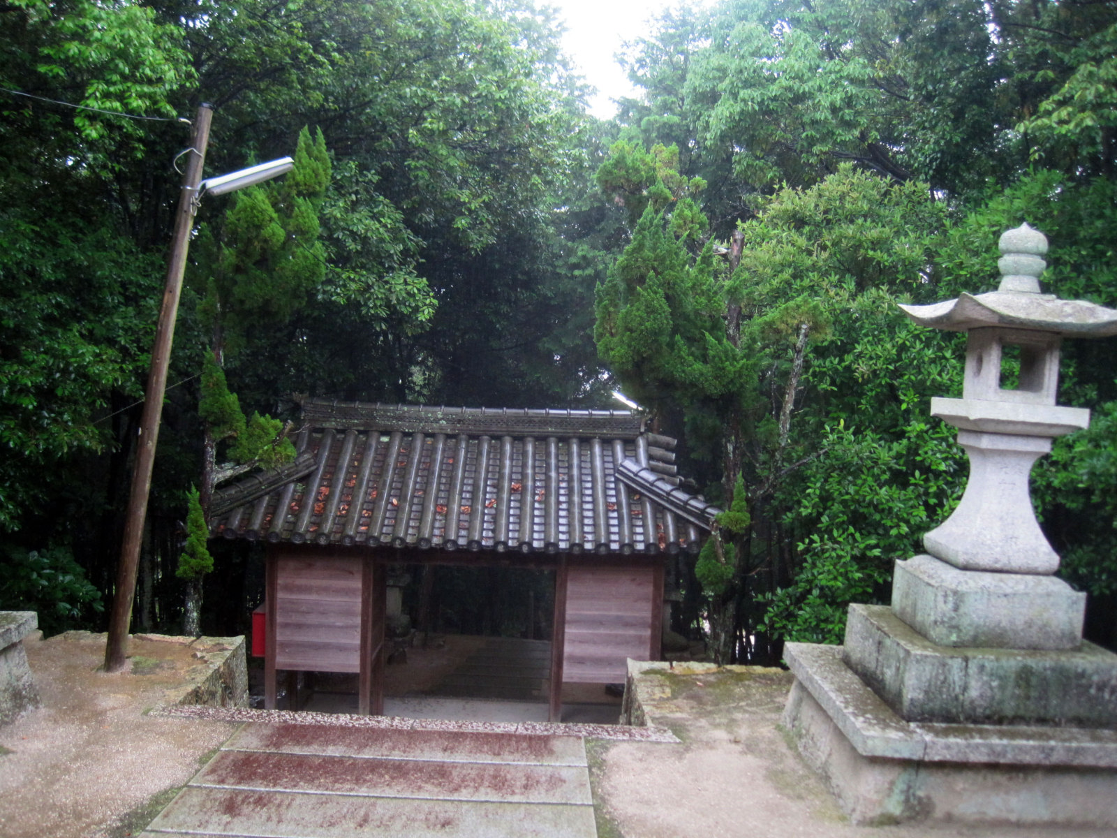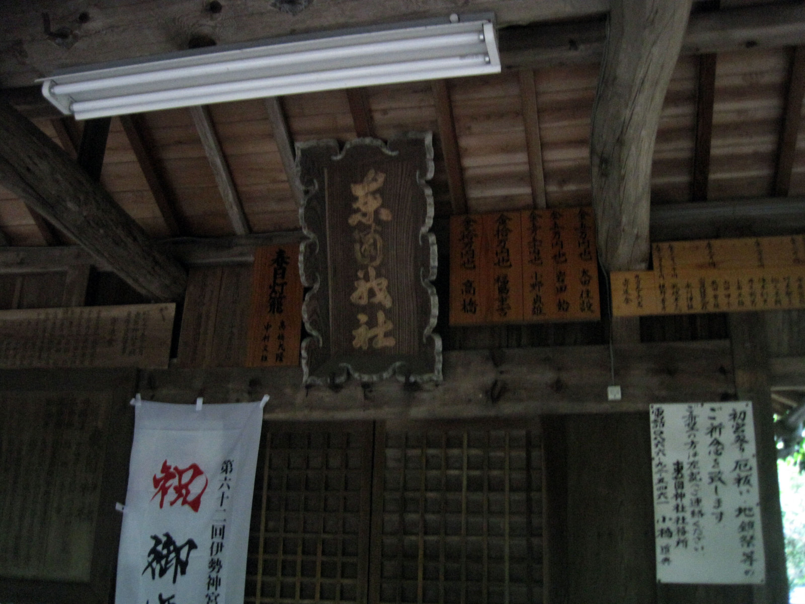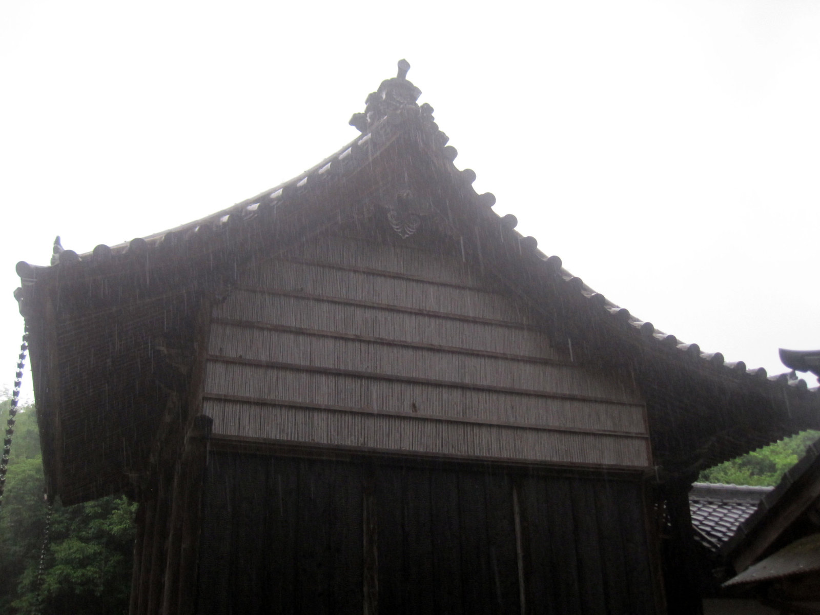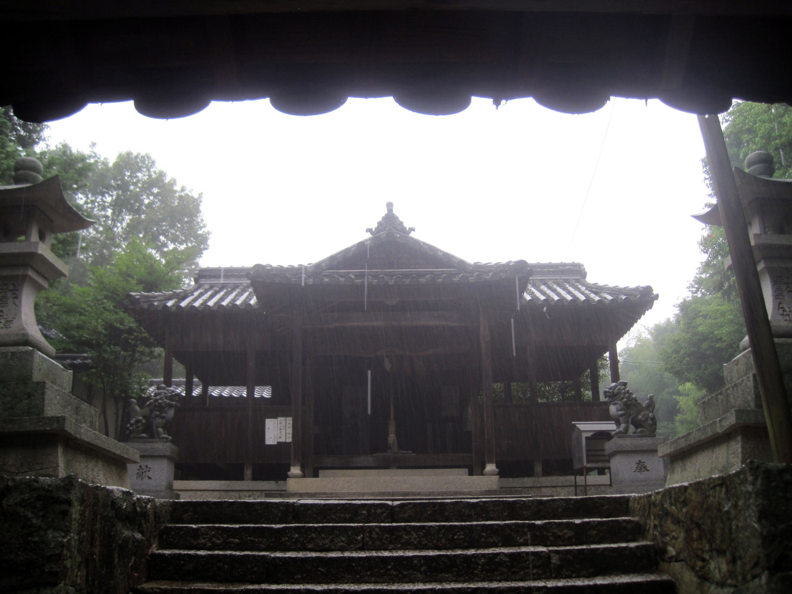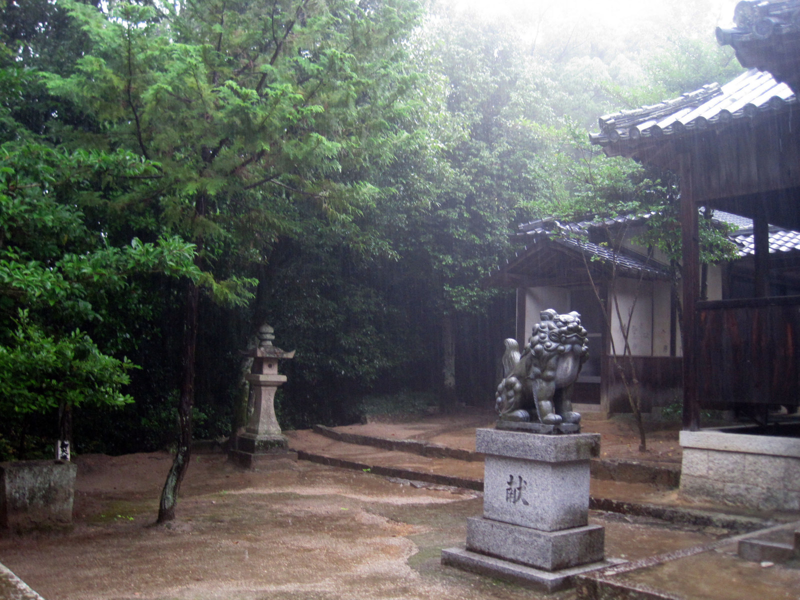 岡田分館に到着して,ちょっと早めだったので,近くの「東園神社」へ。雨に佇む中,しっかりとした拝殿の神社でした。