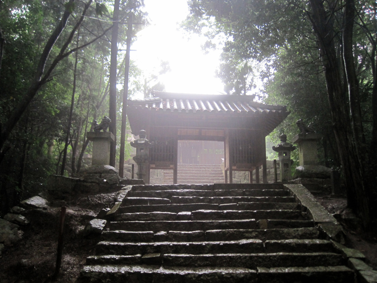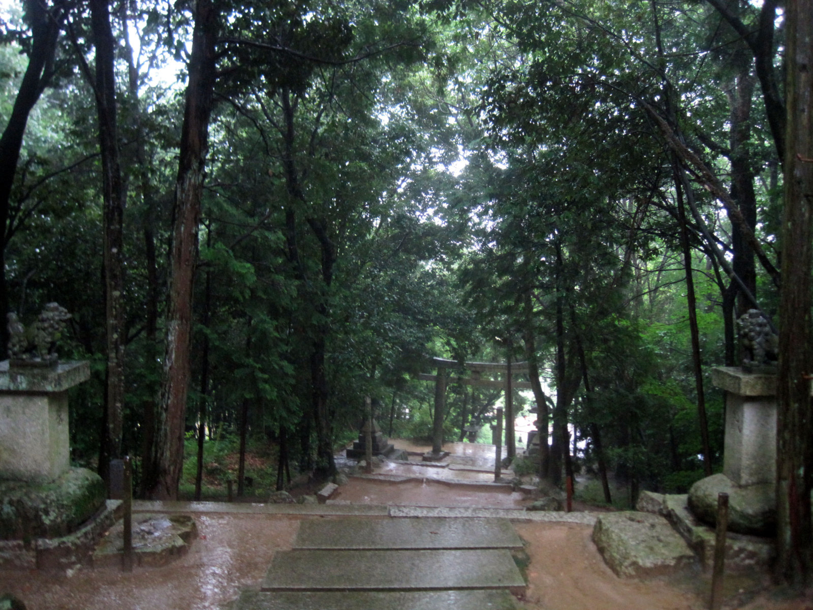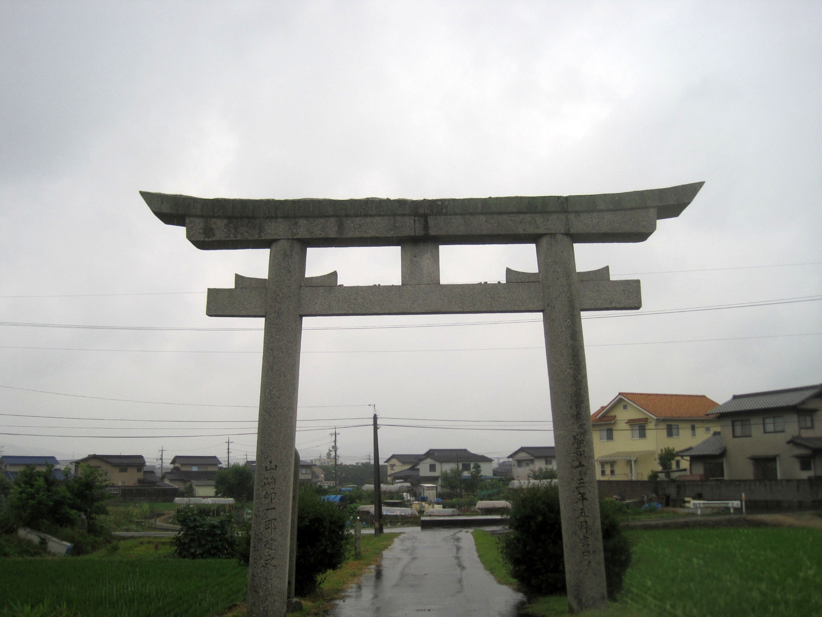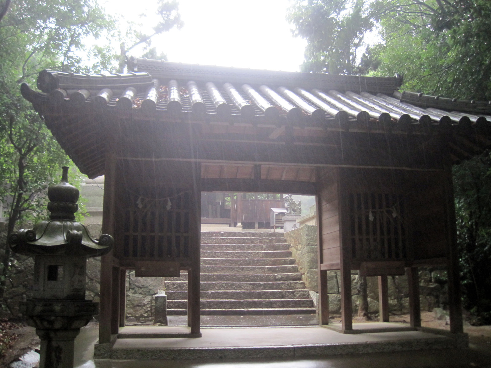 岡田分館に到着して,ちょっと早めだったので,近くの「東園神社」へ。雨に佇む中,しっかりとした拝殿の神社でした。