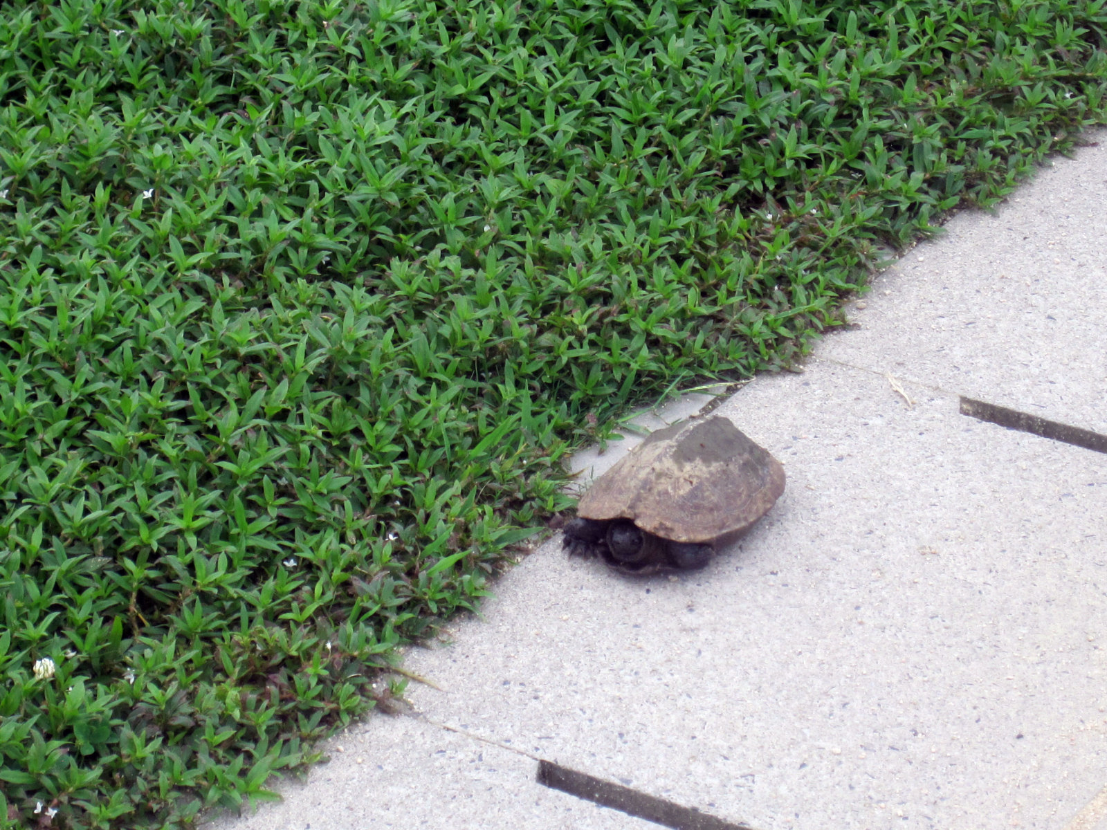 いつも体育館よりに行くので,今日はテニスコートなどの西よりを・・・
