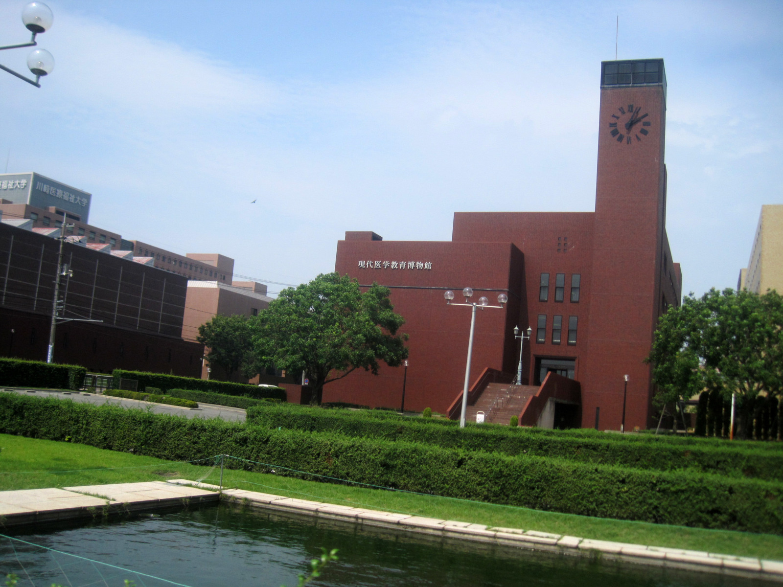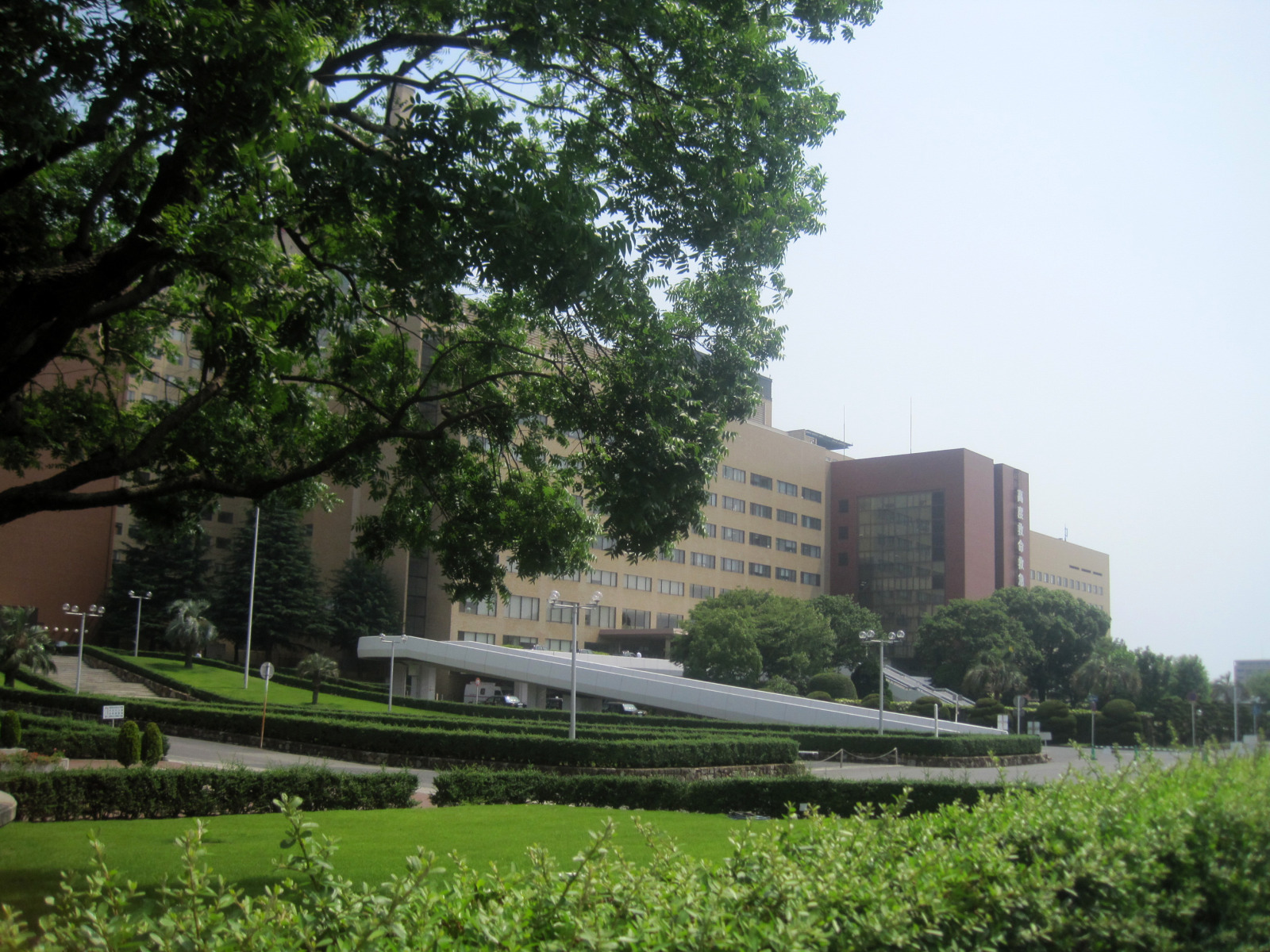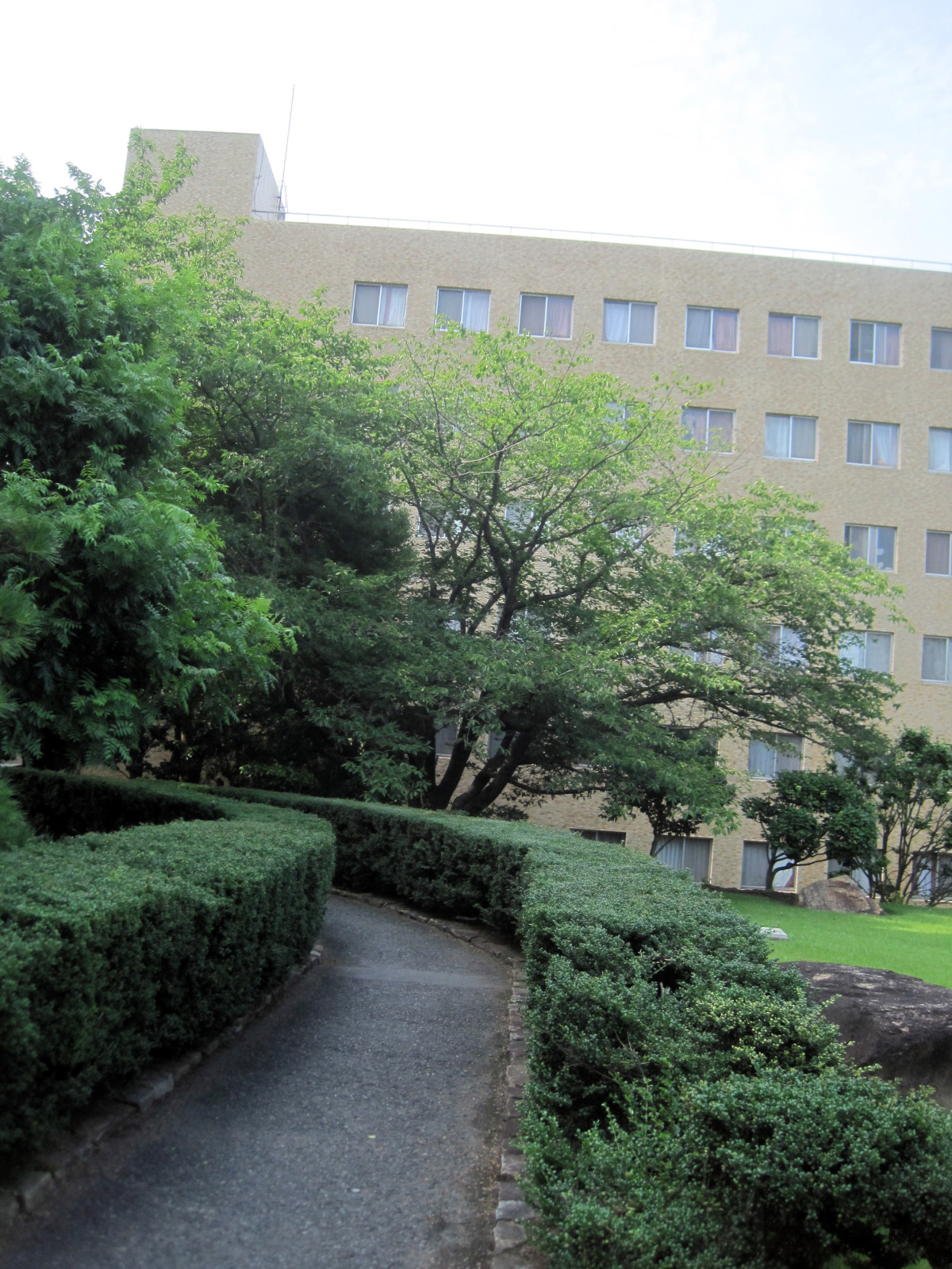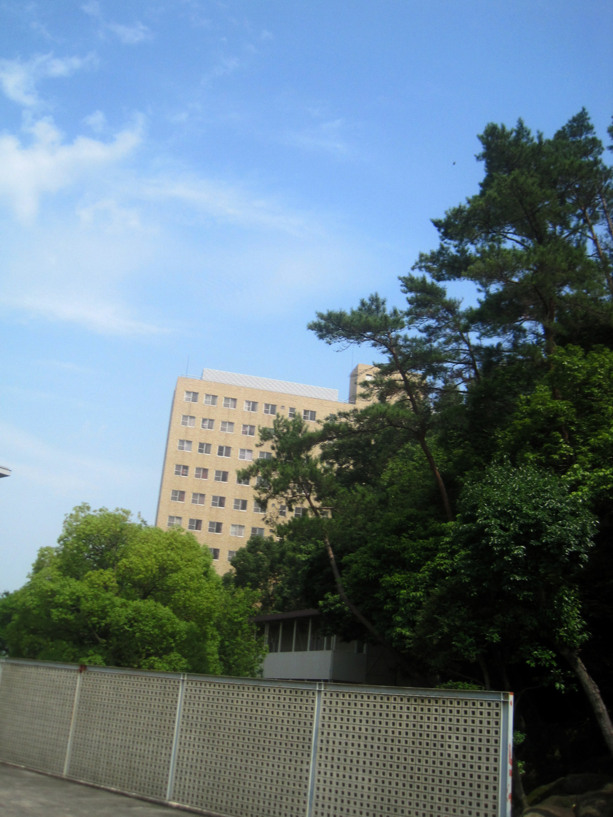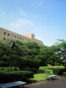 岡山地方は,今日は蒸し暑く晴れていました。今日の午後は短大の授業で,医大の前庭を抜けて・・。