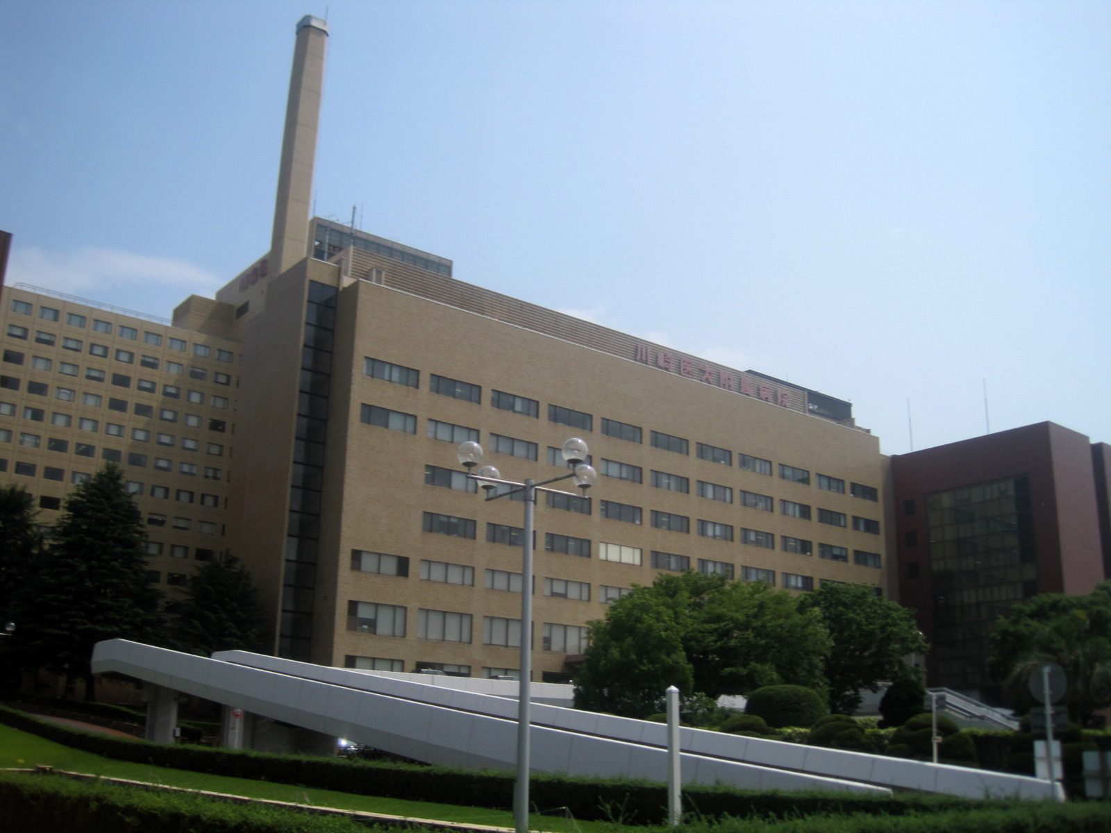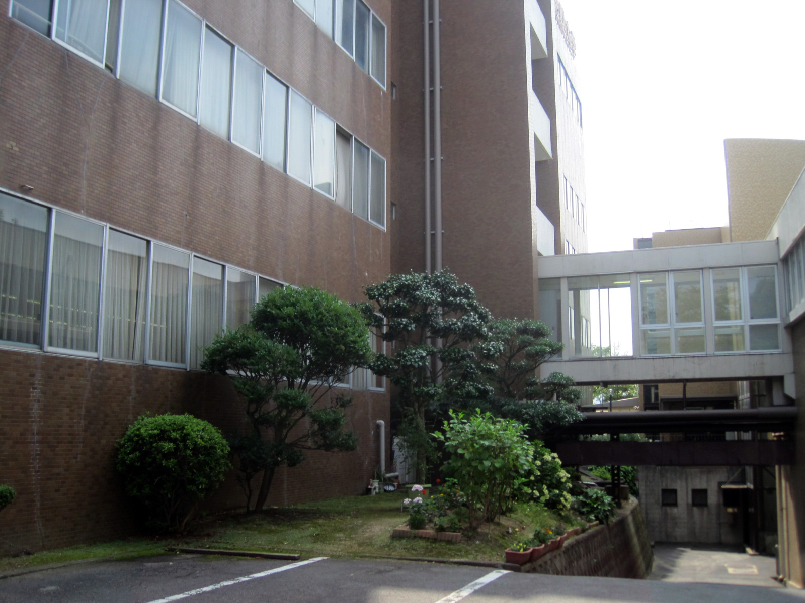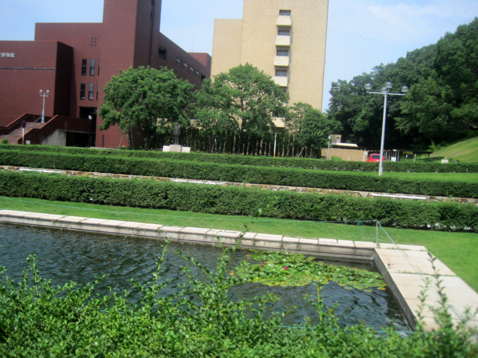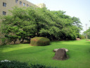 岡山地方は,今日は蒸し暑く晴れていました。今日の午後は短大の授業で,医大の前庭を抜けて・・。