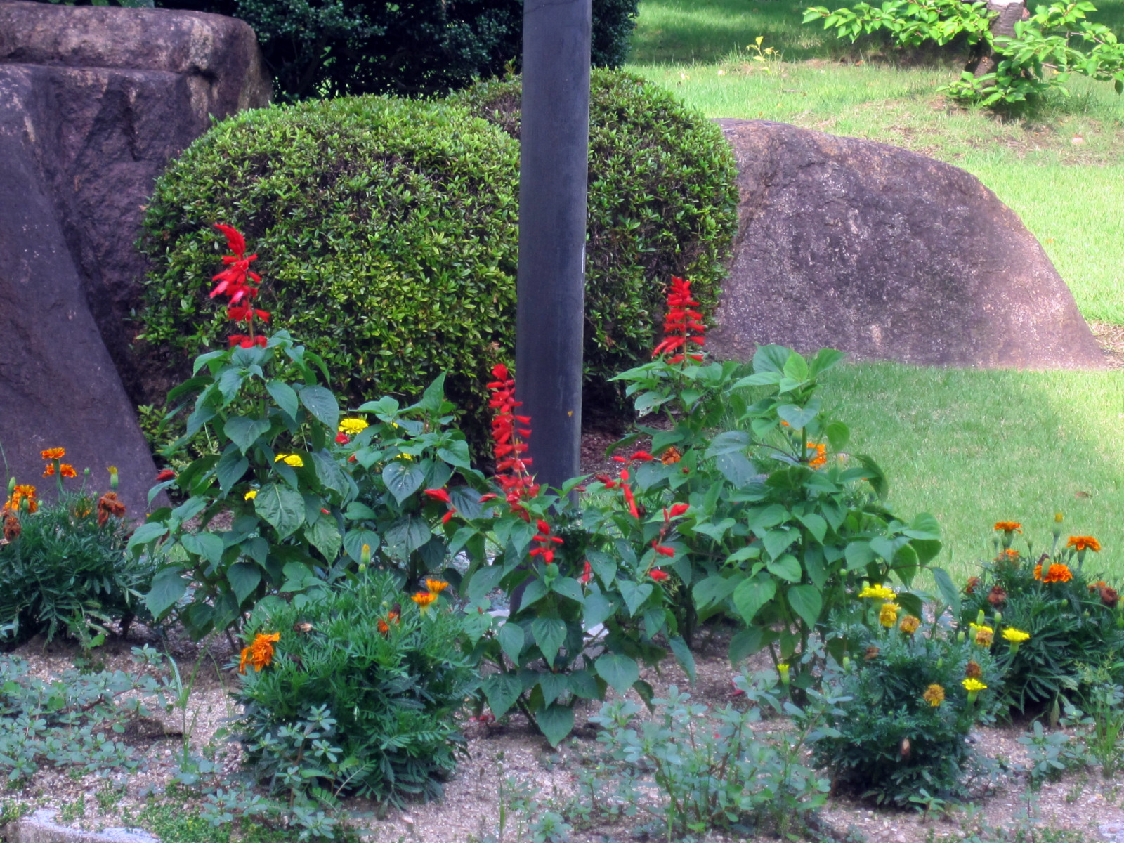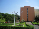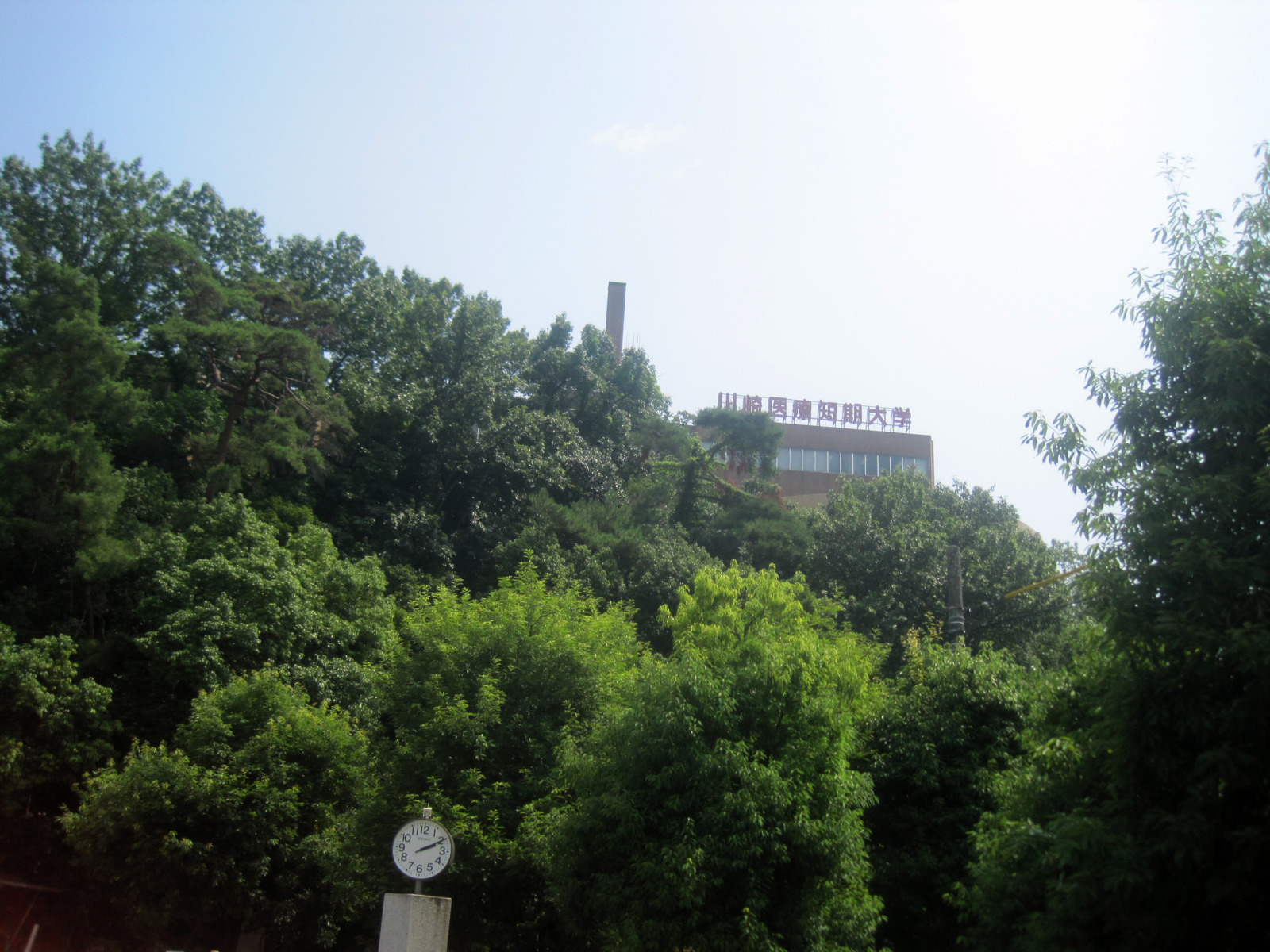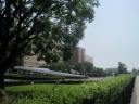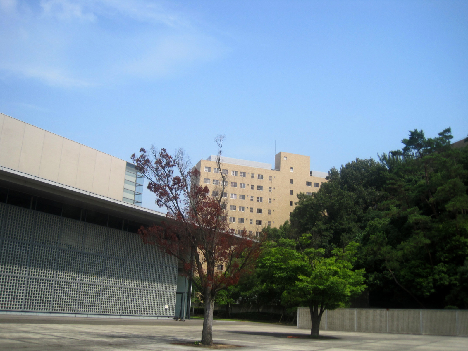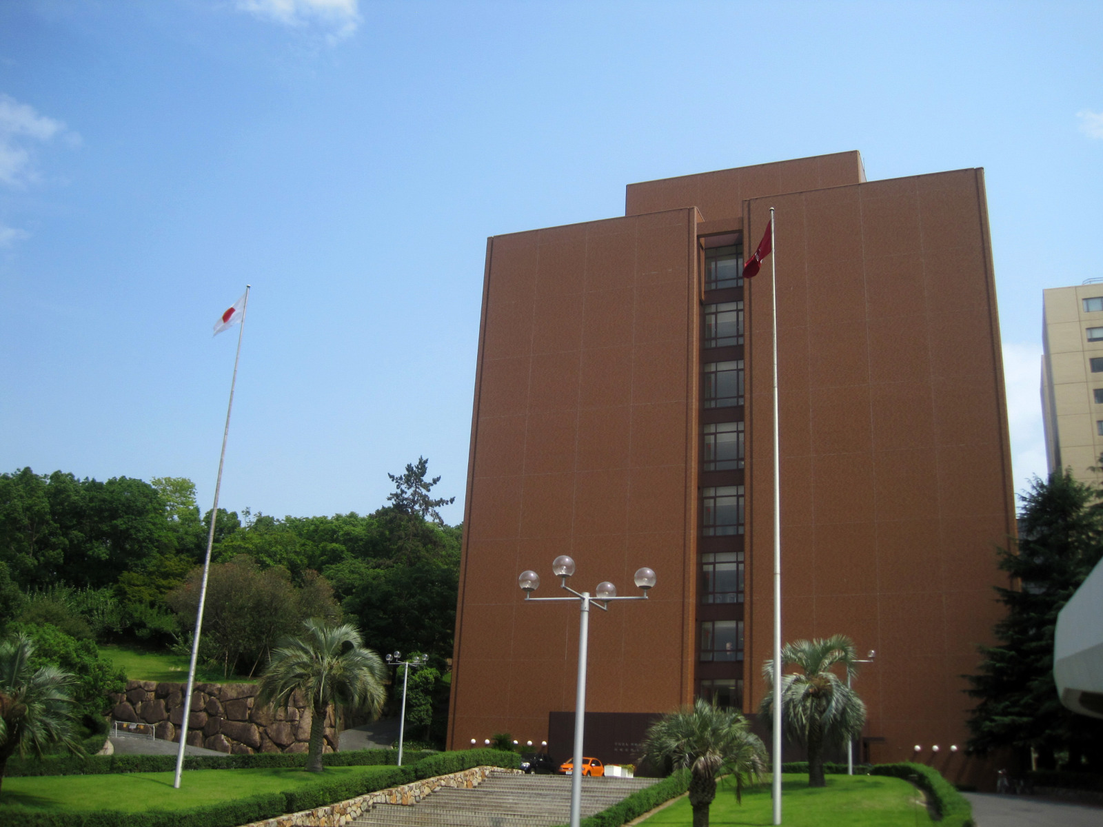 岡山地方は,今日は蒸し暑く晴れていました。今日の午後は短大の授業で,医大の前庭を抜けて・・。