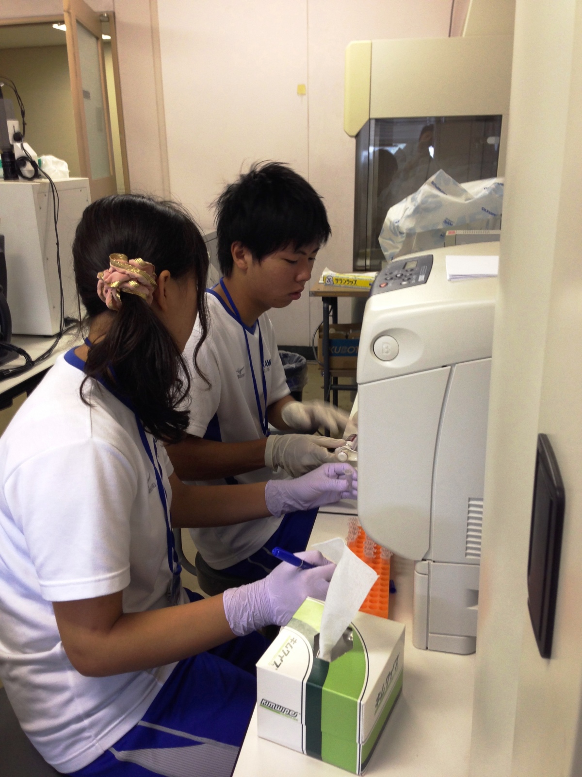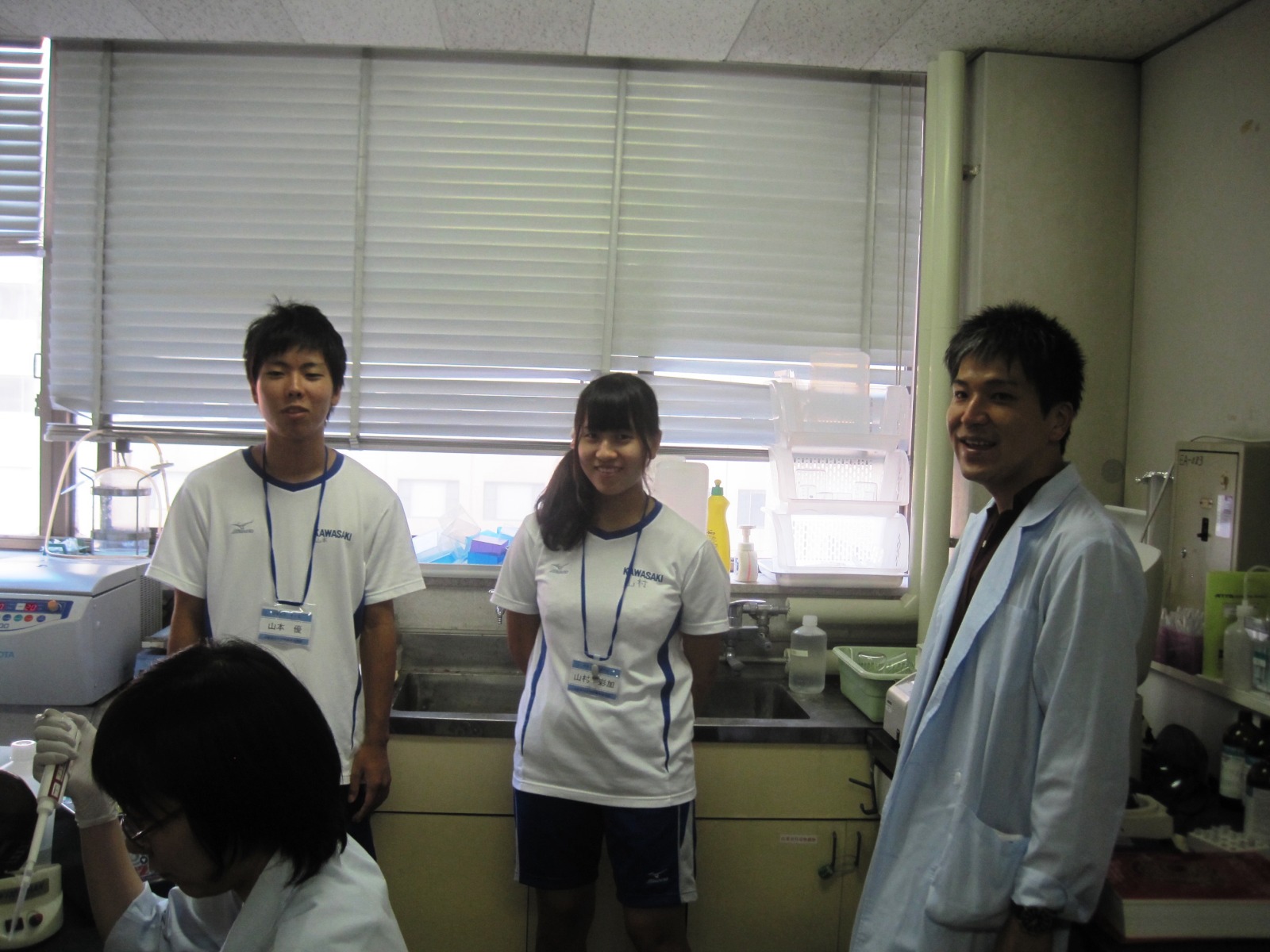 例年ですが,川崎医科大学附属高校生が,大学の基礎医学系に体験実習に来てくれました。山本君と山村さん!大槻が卒業生でもあり,衛生学でも毎年,メンバー全員で講話をしたり実験の体験をしたりしてもらっています。今年も元気な二人! 僕らも若さをもらえたかんら?? 早く大学においで!!!