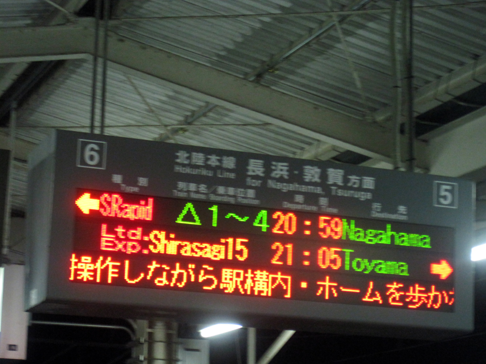 本当は直江津まで行きたかったのですが,当初,最終便で予約していたので米原乗換の路線で,金沢泊の予定でした・・で,少し早まったけど,でも,結局,金沢まで。