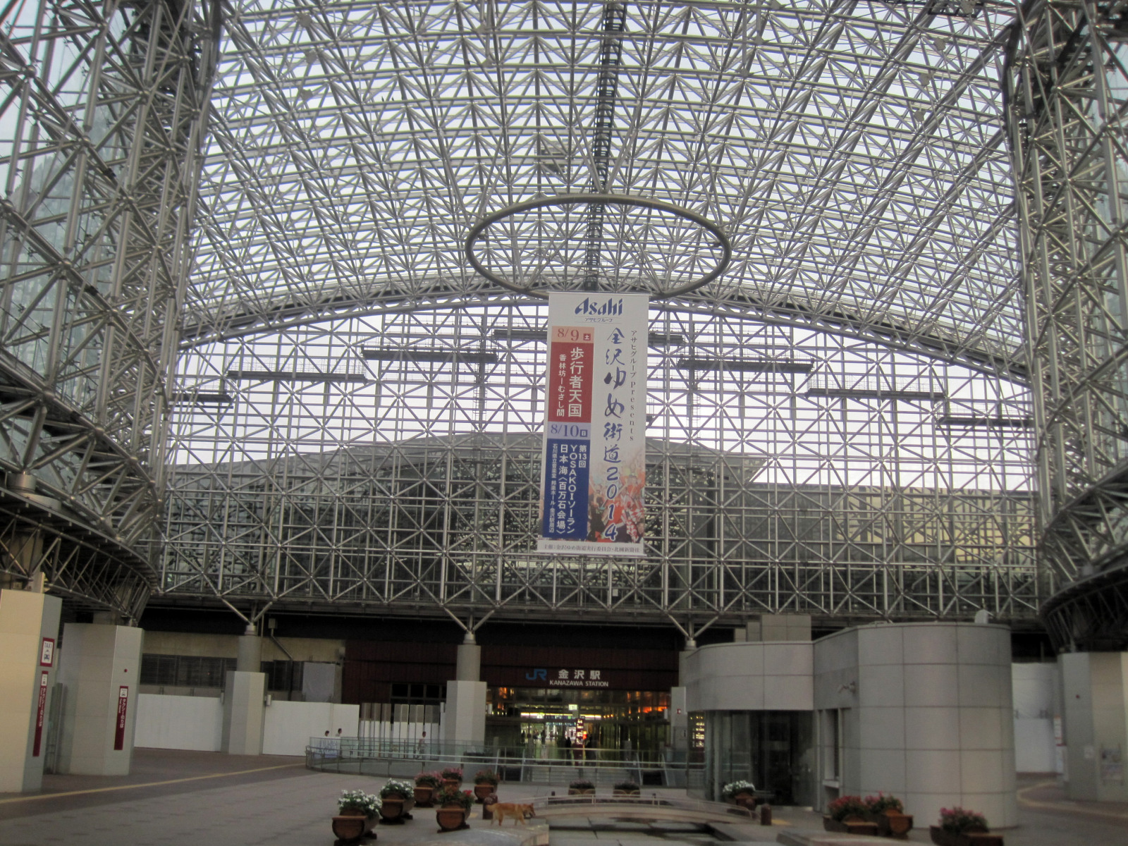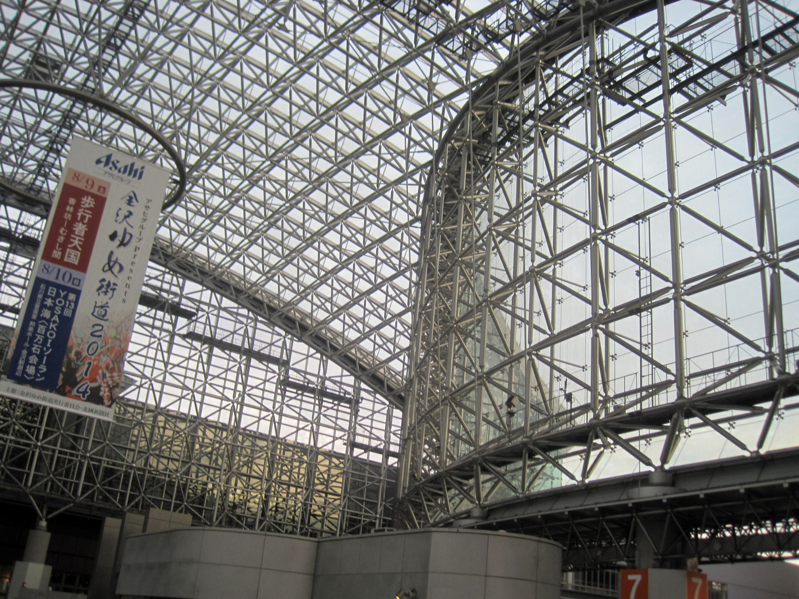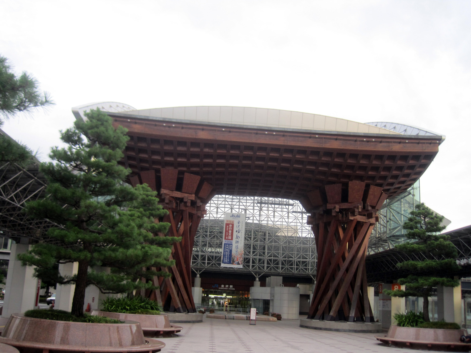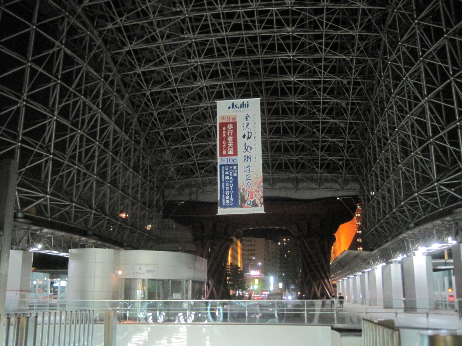 本当に廉価のビジネスホテル泊でしたが・・おもてなし,あり!!〜金沢駅のこの木のアーチは岡山の技術だそうです。