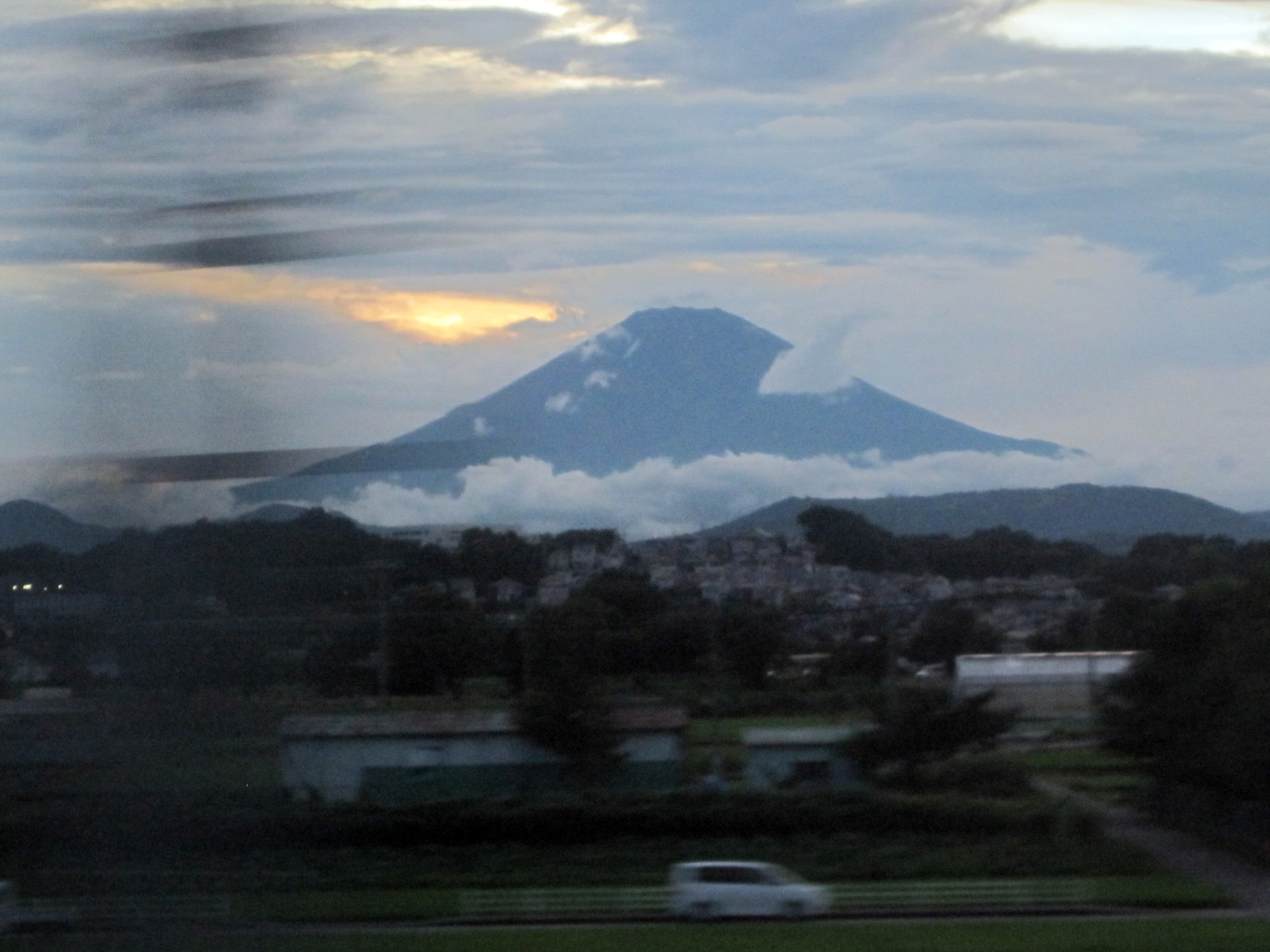 この方向(下りののぞみから)の富士は滅多にみません(普段はもう真っ暗だし)。
