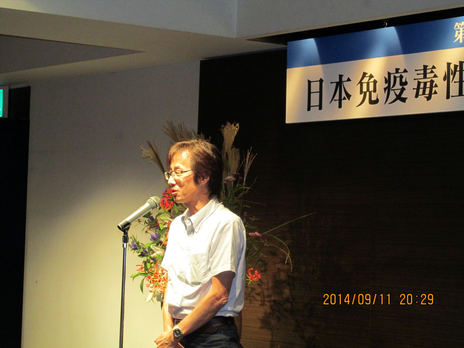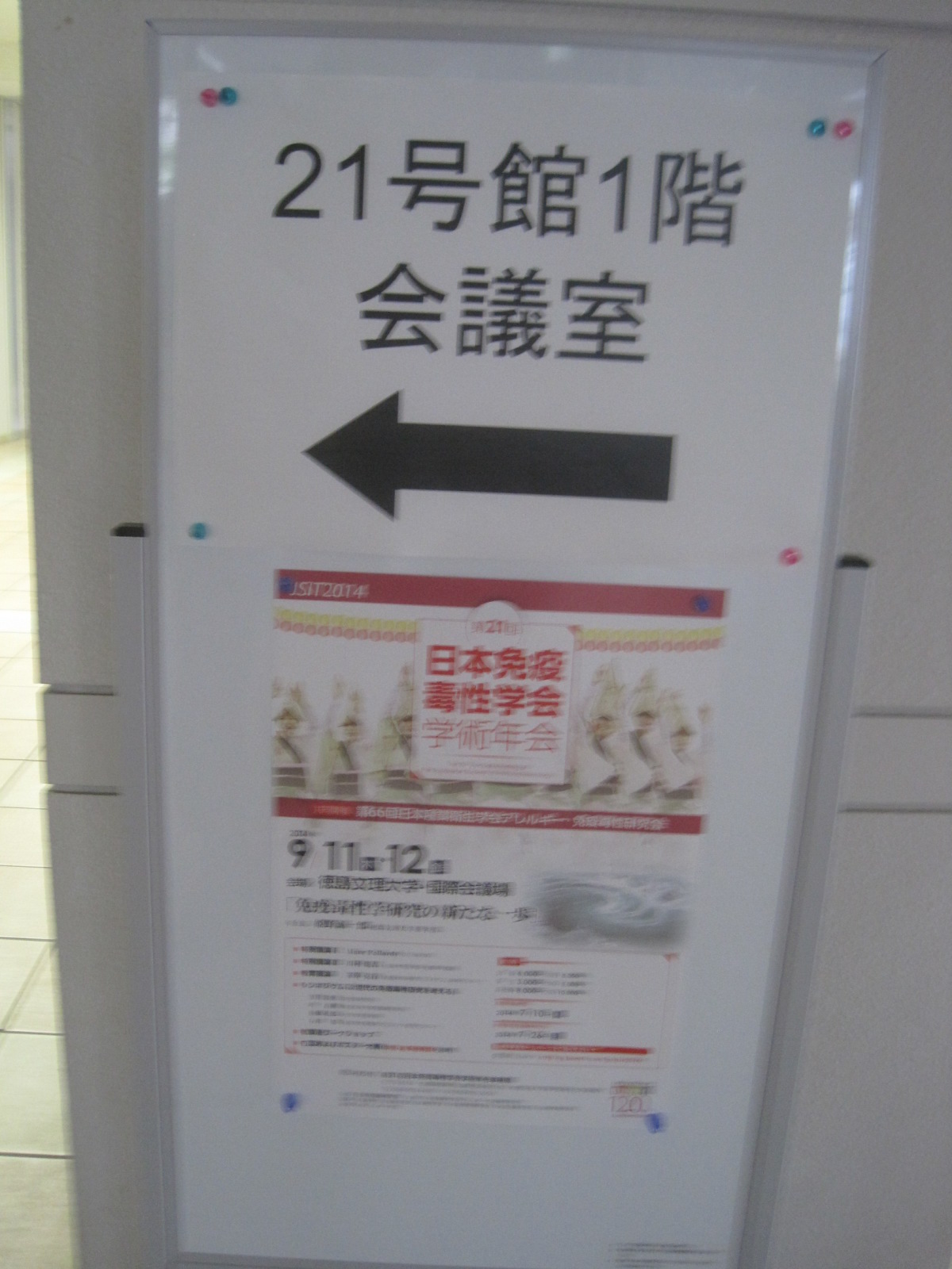 | 2014.9/11-12 第21回日本免疫毒性学会学術年会@徳島文理大学・国際会議場でした。 徳島文理大学キャンパスの様子はこちら 日本免疫毒性学会事務局として撮った写真はこちら 年会長は,姫野先生,とっても素晴らしい・・日本免疫毒性学会の未来を感じさせてもらった年会でした。感謝!! 西村先生は口演発表でした。 大槻・松ア・李はポスター発表でした・・・武井先生も,日参で来られたのですが・・あらら,写真がなかった(´>∀<`)ゝ 幡山さんと山本さんも・・・事務局で参加! 大槻はSOT (Society of Toxicology)/ITSS (Immunotoxicology Specialty Section)との国際交流事業の特別講演の座長と。。。事務局として総会! 大槻自作の日本免疫毒性学会ポスターも掲示しました。また学内にも今回のポスター掲示 質問者としての西村先生 李先生は産業医大の佐藤先生と検討会! ちなみに学会賞は大沢せんせい〜今回の年会賞には小池先生が選出されました。 懇親会では「若手・優秀発表賞」は懇親会の場で! 阪大・平井先生と千葉大・小沼先生でした。 次期会長の高野先生(京大)がご所用でご不在でしたので,大槻が事務局として中締め! 学会最後・・・文理大のスタッフの皆様です。 大槻は9/10の理事会から参加でした。 さて,会長招宴・・・・大学のすぐそばに・・由緒正しい料理屋さん「渭水苑」さんです。 とっても美味しかったですよ!!マジ 久しぶりに和食で美味しいって感じでした。