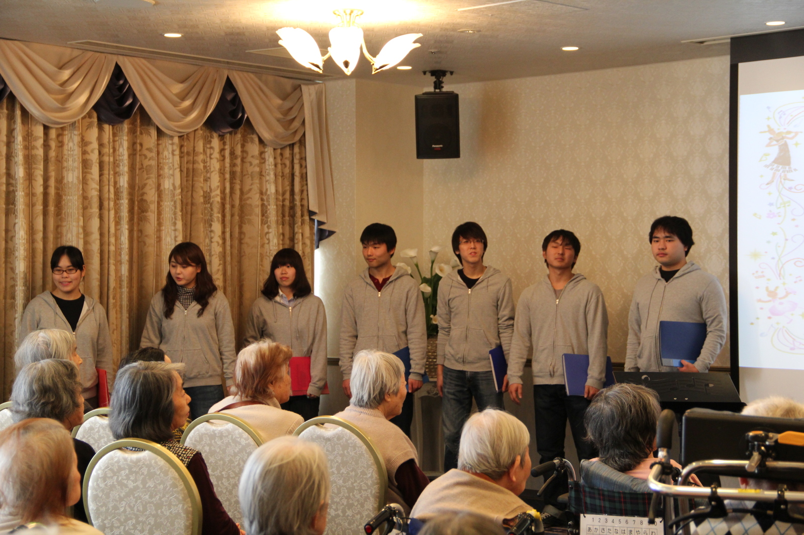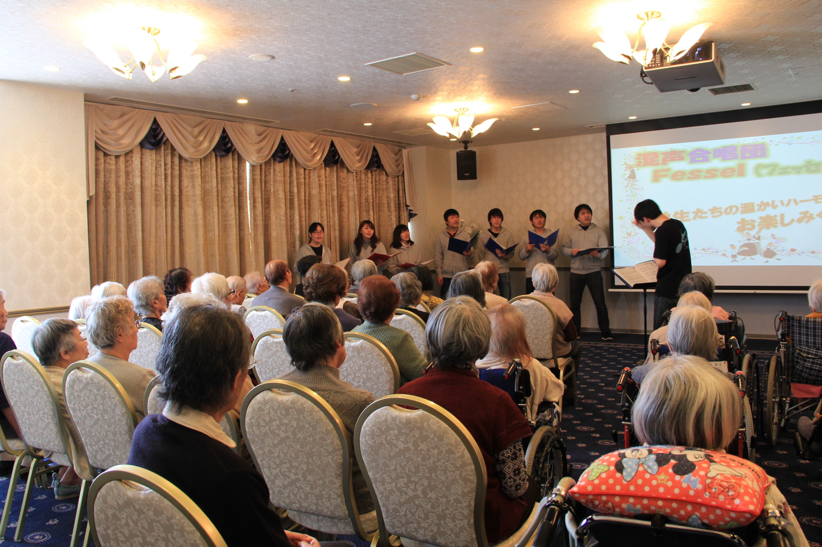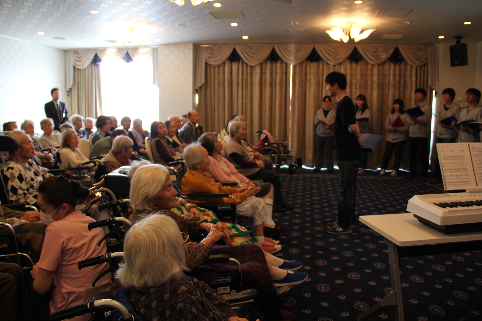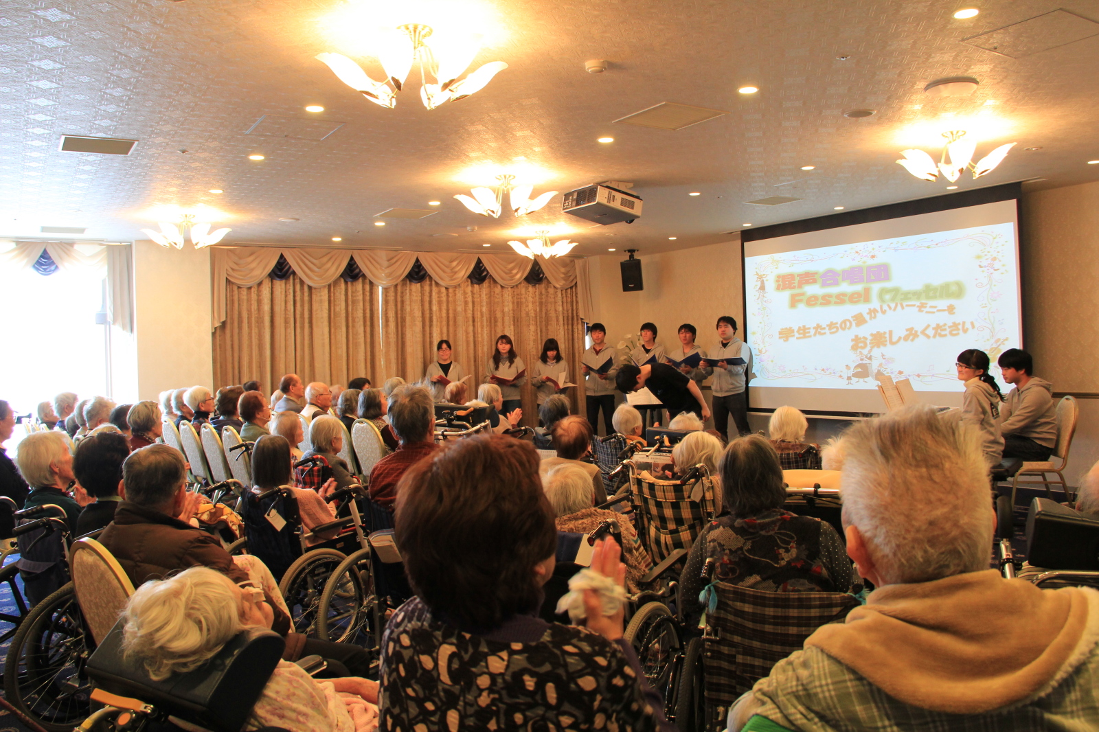 本年度も「地域に飛び出す学生支援」事業で,合唱部 Fessel が助成を受け,大学近くの「心温まる想いやりあふれるコミュニティタウン。倉敷の高齢者住宅、医療と介護は倉敷スイートタウン」にてコンサートを開催しました。