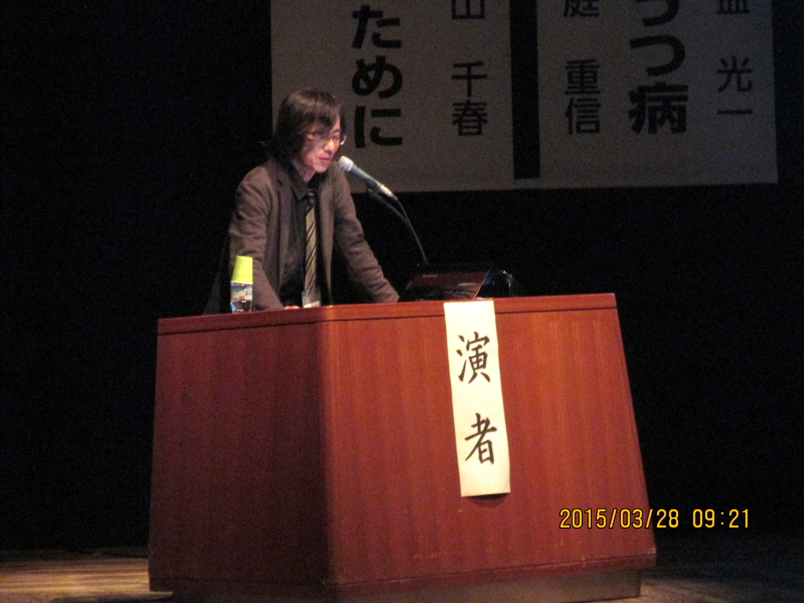 はい・・1時間講演の最初15分くらいは日本衛生学会での活動や担当している編集委員長からのアナウンス,それから35分は,教室の仕事の紹介で,繊維状・粒子状物質の免疫影響と,健康増進住居構築の話題・・・でも,最後10分にようやく本業の・・音楽の話題! 制作したばっかりのPVを放映しました。