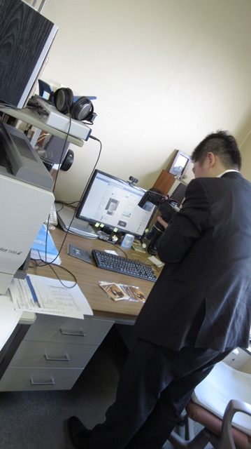 2015.5/22 山陽新聞の倉敷本社の安部記者さん・・・午後を費やして取材して下さいました・・・・ でも,写真を撮っているのは,教授室の机の上の,iTunes配信のアルバムCD・・。 ムムム,そうなんです,学術研究っていうより,音楽で。 人生を楽しんでいる人特集コラムらしく,多分5/25(月)の夕刊に・・掲載されるのかも??
