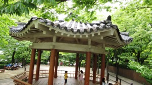 入口の山門は【<真如門(チニョムン)>寺の入り口にあたる建物で、名称は真理を求めることを意味。左右に持国、増長、広目、多聞の四天王の木彫仏像が安置されています。いずれの像も李氏朝鮮後期の四天王像の中では温和な表情をして微笑んでいるのが特徴で、ソウル市地方文化財に指定されています。】だそうです。