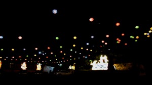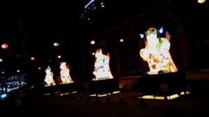 さて,三々五々に解散になるのですが,会場を(僕らが来た方と反対側の北口っていうか,正面っていうか,そこから出ると向かいに「ねぷた」の様な灯りが沢山!