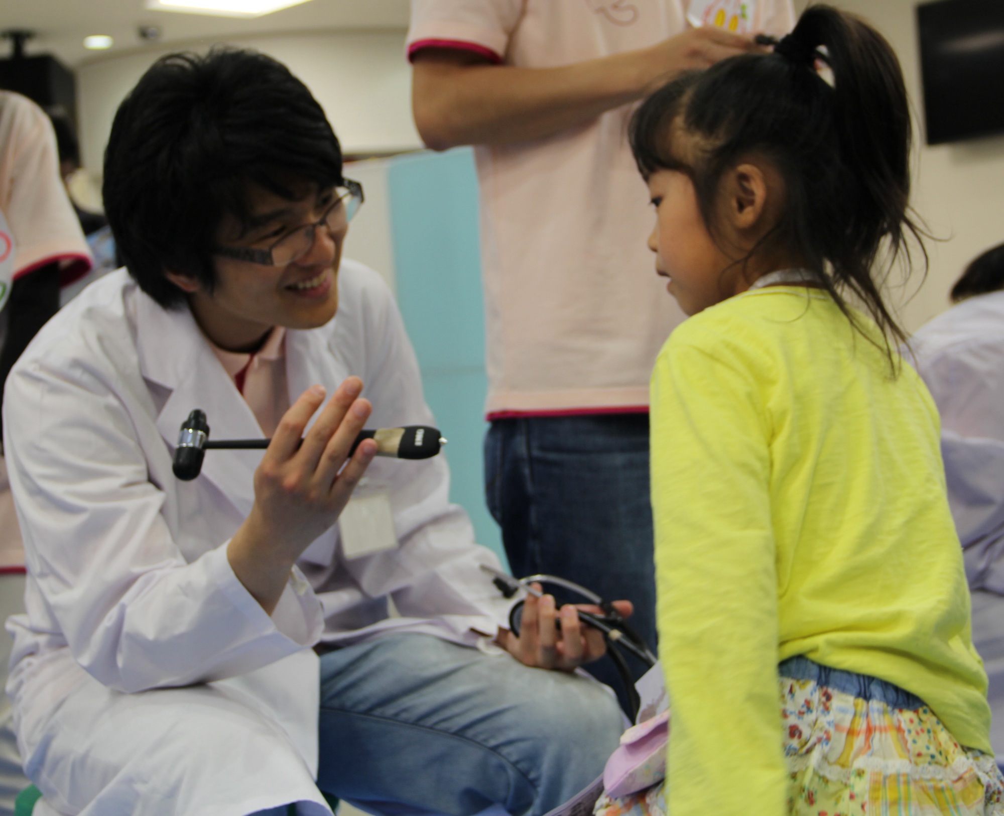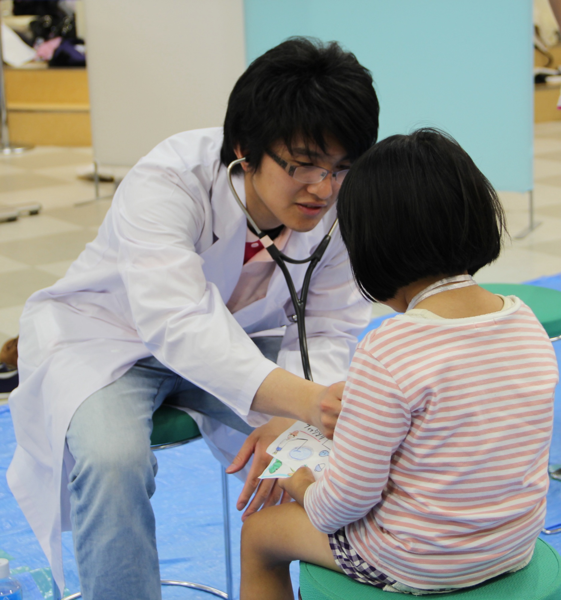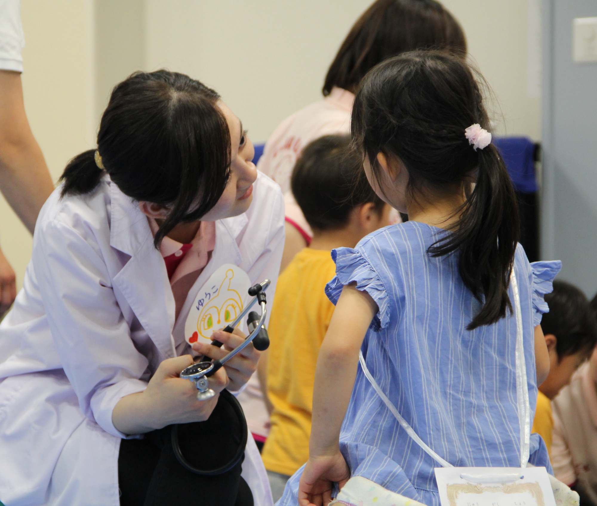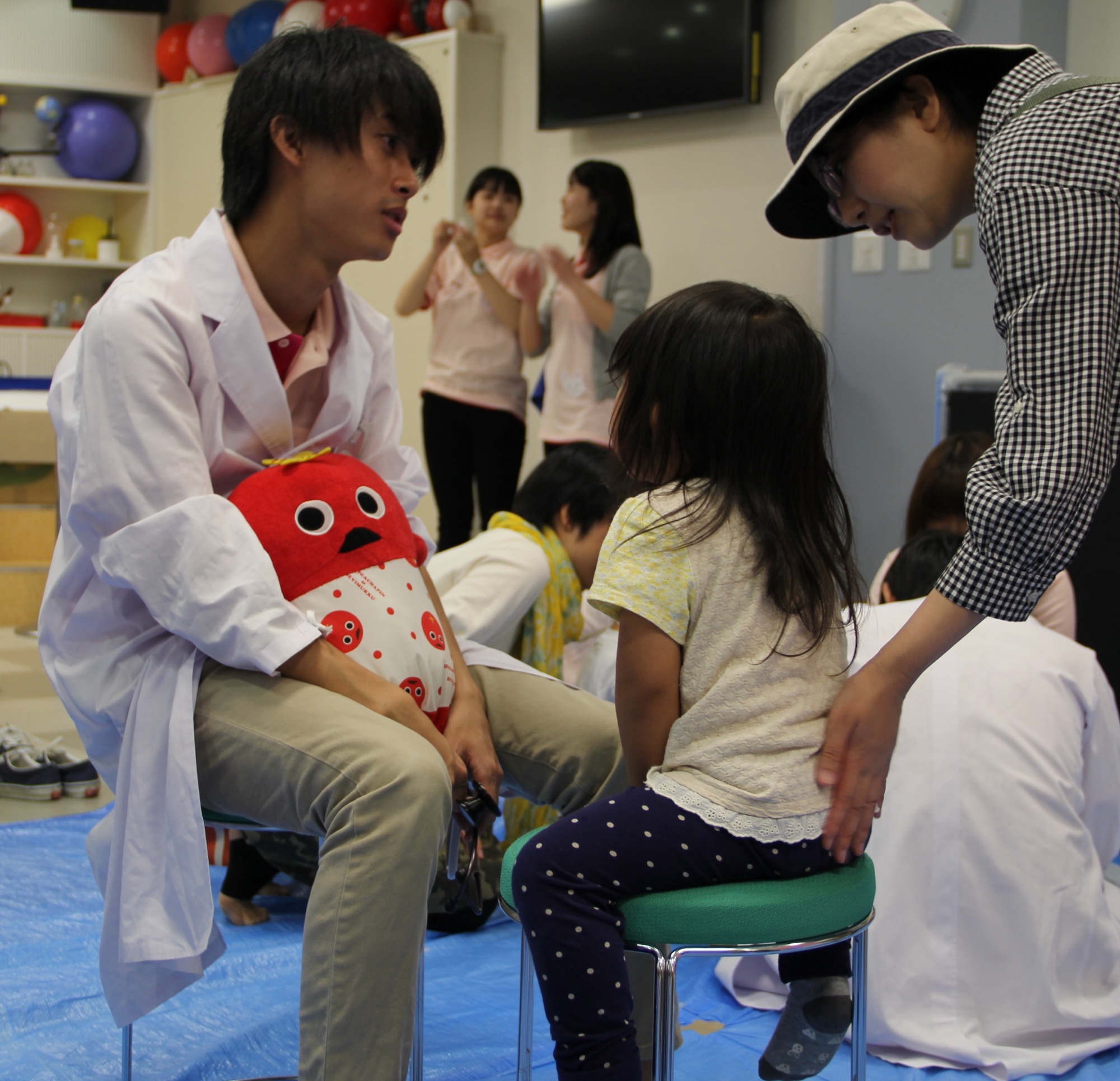 川崎医科大学は,恒例の「ぬいぐるみ病院」・・・学生さんたちも慣れたものです!!