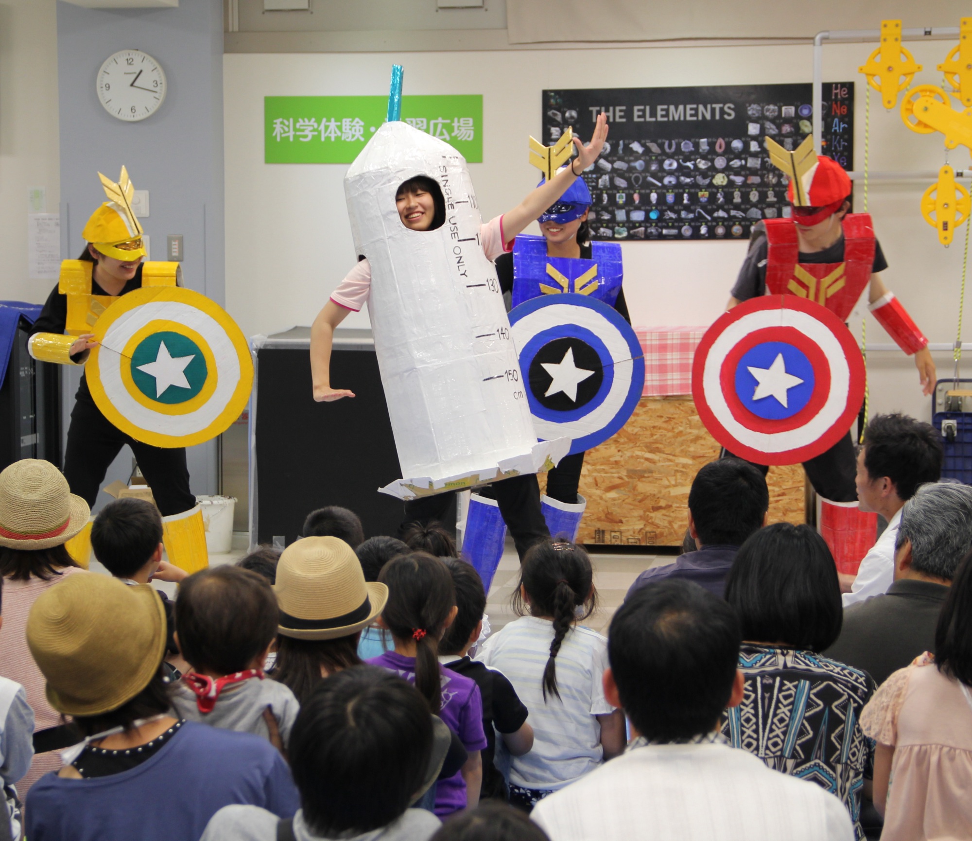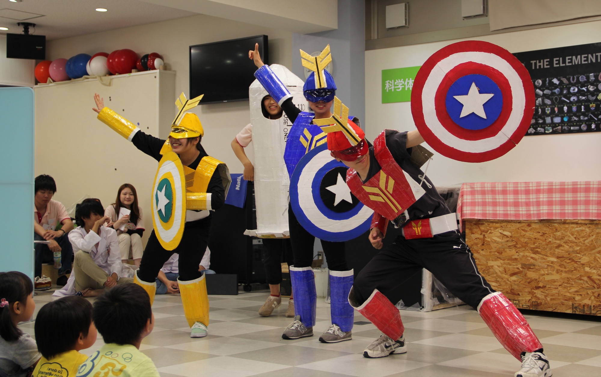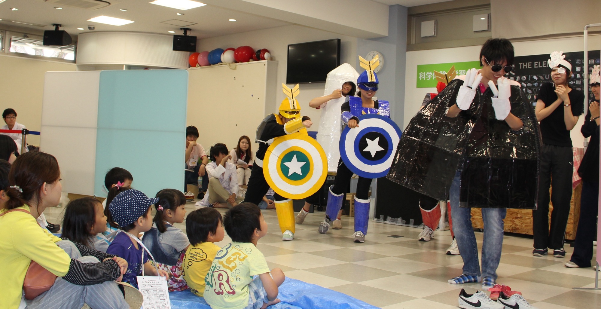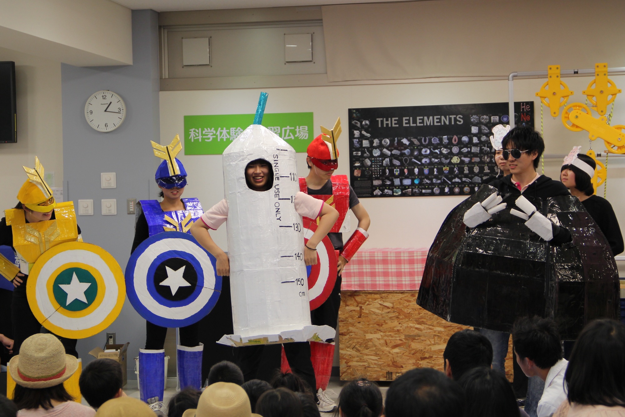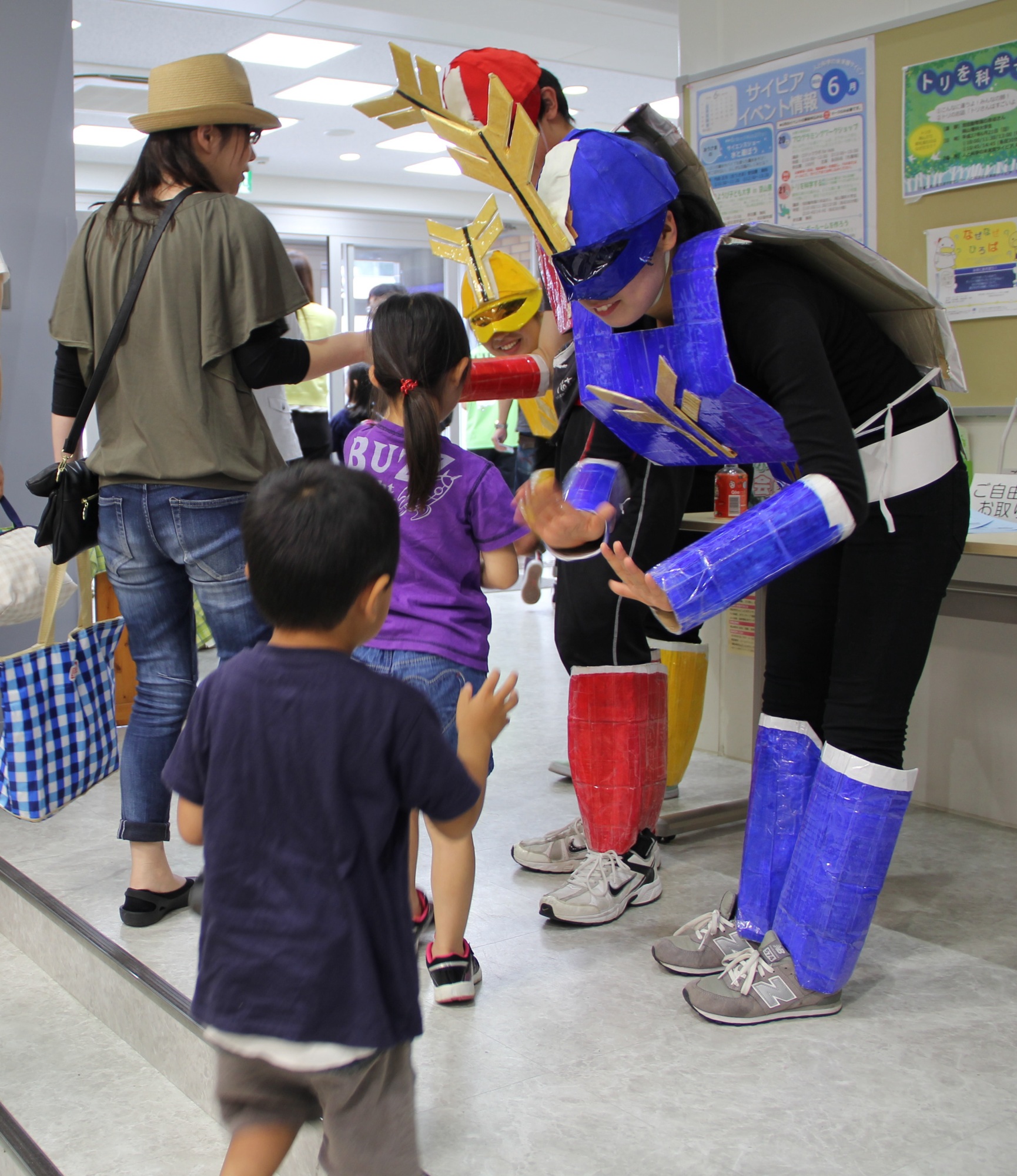 今回も大好評〜免疫戦隊は・・公演前に会場内をPRに歩いていました!!!