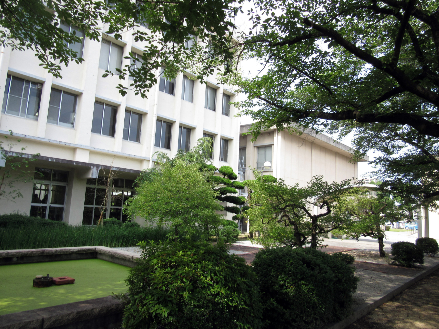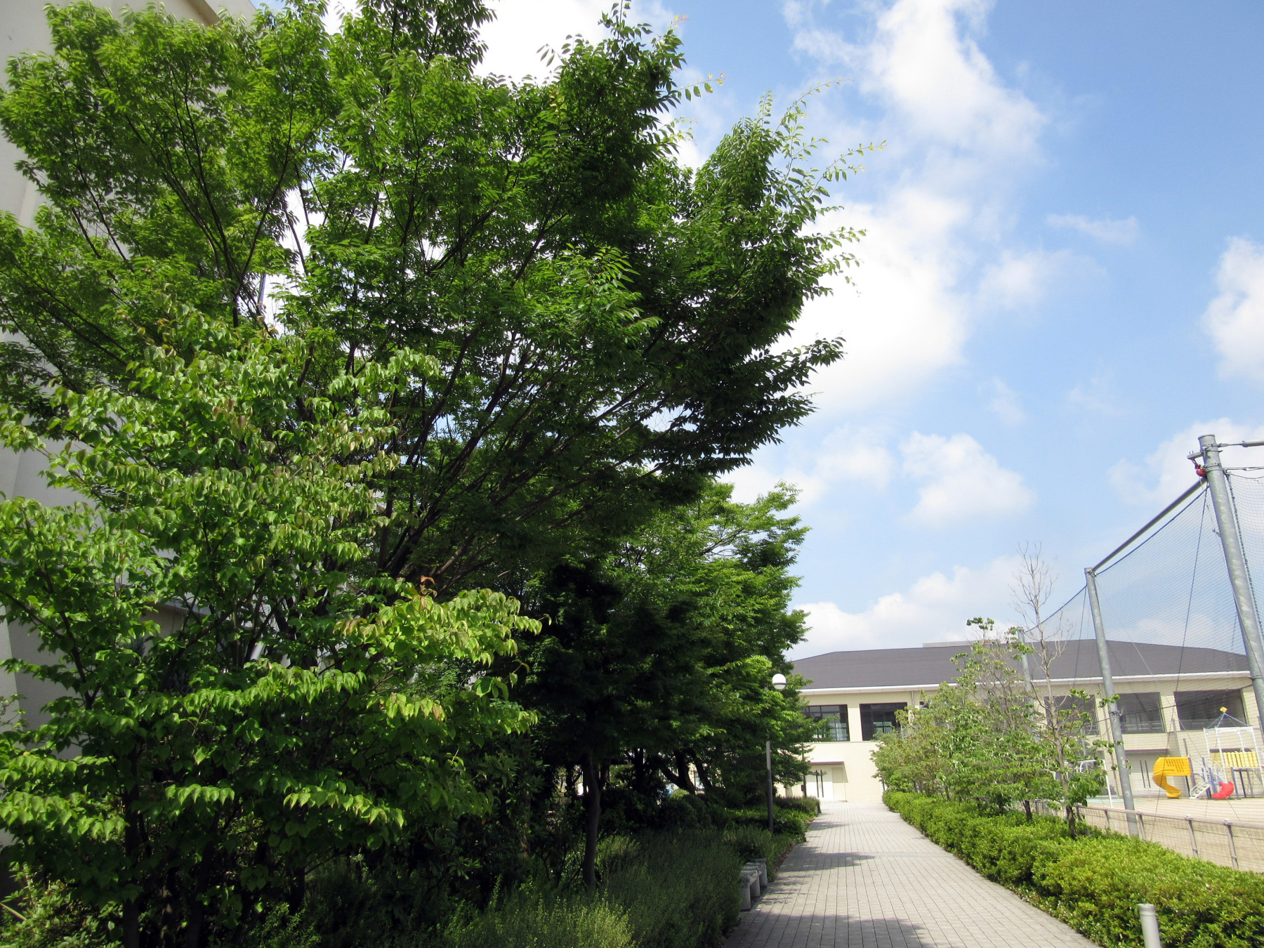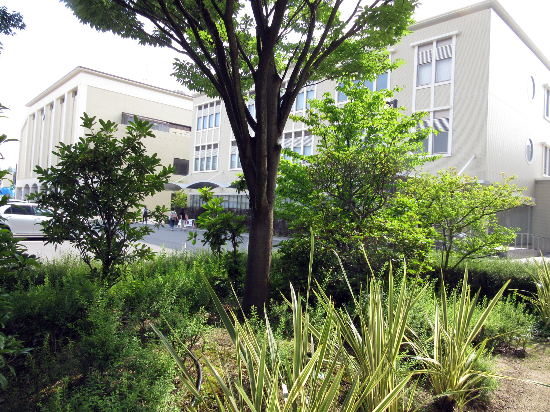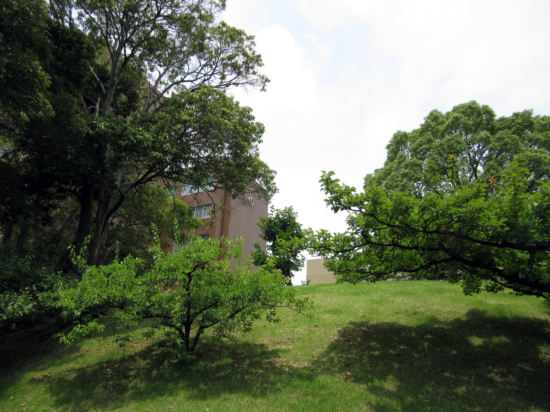 授業の最初に7/05のエコナイトと 大槻の iTunes配信アルバムのPRをしてから,授業を開始しましたが・・緑あふれる前庭です!