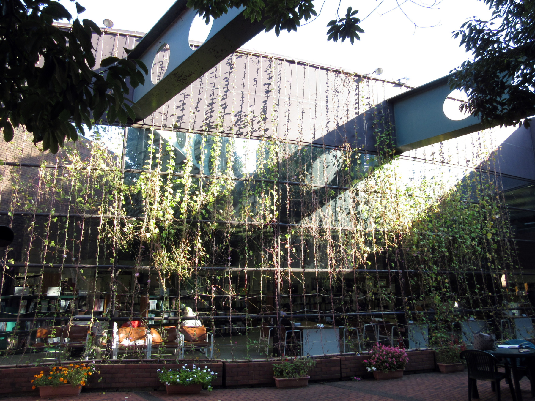 心地よい風が流れる図書館の中庭です。