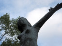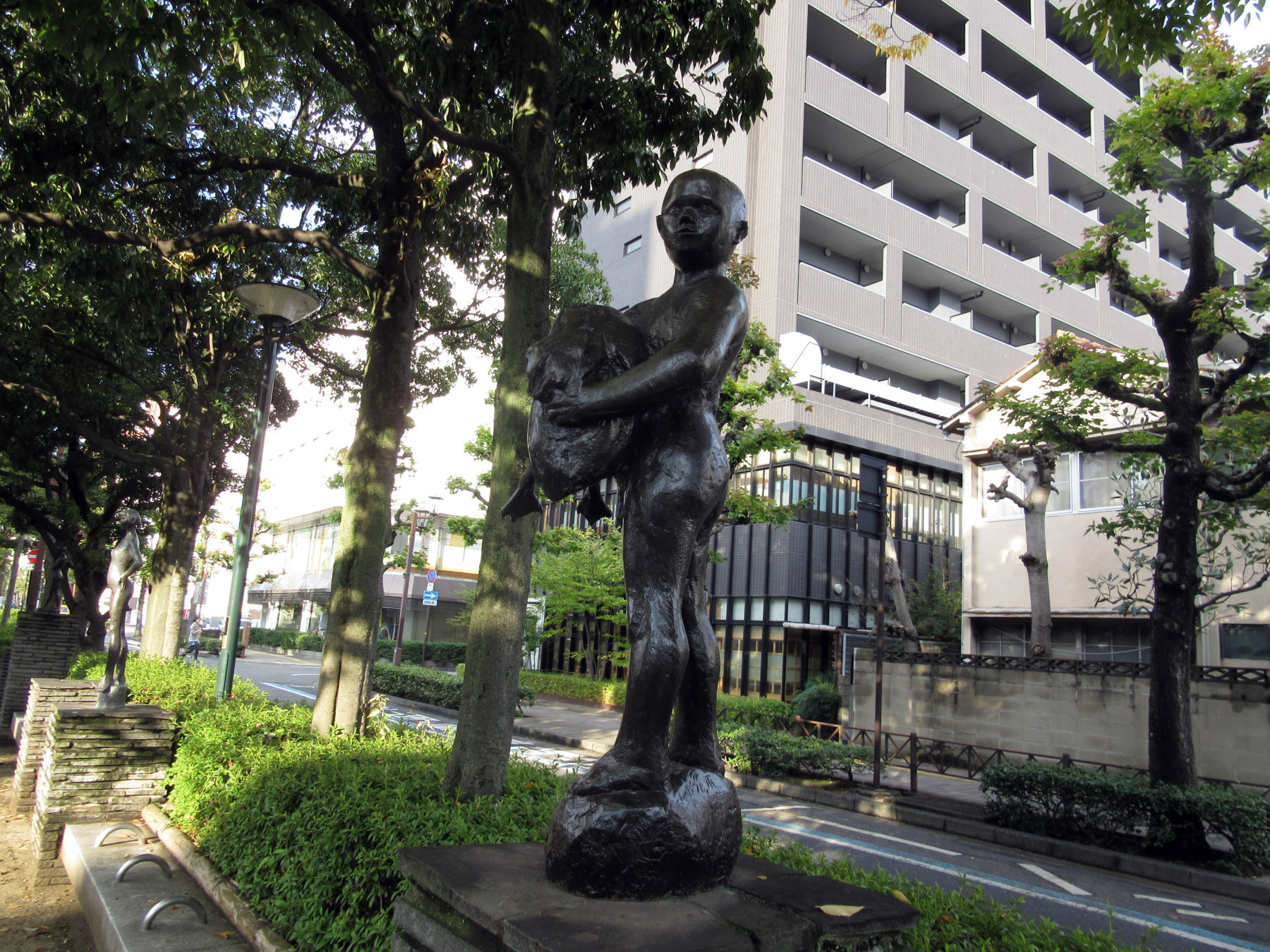 【下石井公園は、隣接する「西川緑道公園」、「里丘」と呼ばれる都市型の庭園、市立図書館のある「西川アイプラザ」と一体になって、都心のオアシスを形成しています。園内には明治時代の実業家、杉山岩三郎の胸像や、実際に使用されていたD51型蒸気機関車も展示されています。】だそうえです。