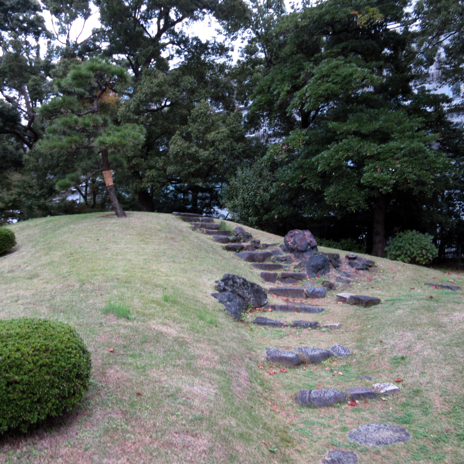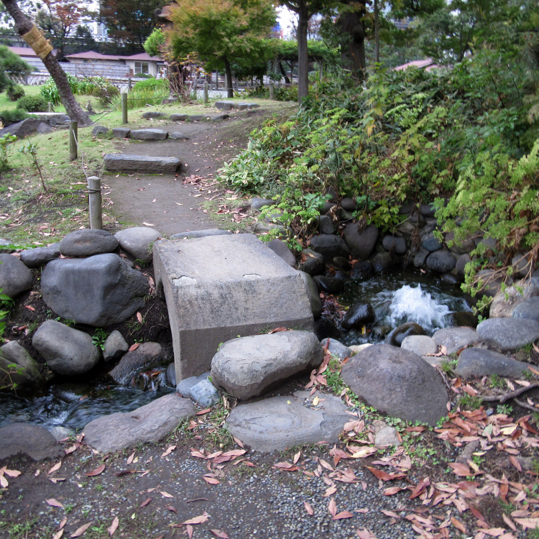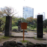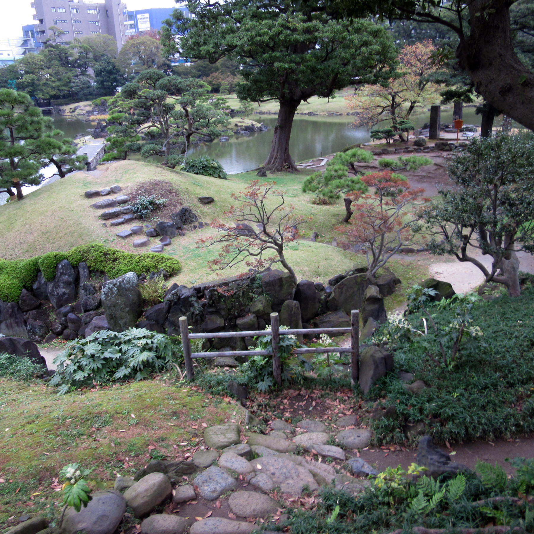【旧芝離宮恩賜庭園は江戸幕府の老中・大久保忠朝の上屋敷内に作庭した大名庭園楽寿園を起源とする回遊式庭園である。作庭当時は海岸に面しており、浜離宮恩賜庭園同様汐入の庭であった。現在では周囲の埋め立てとビル群により海の眺望は失われた。一部が鉄道の増設用地に提供され面積が狭くなった。】です。