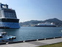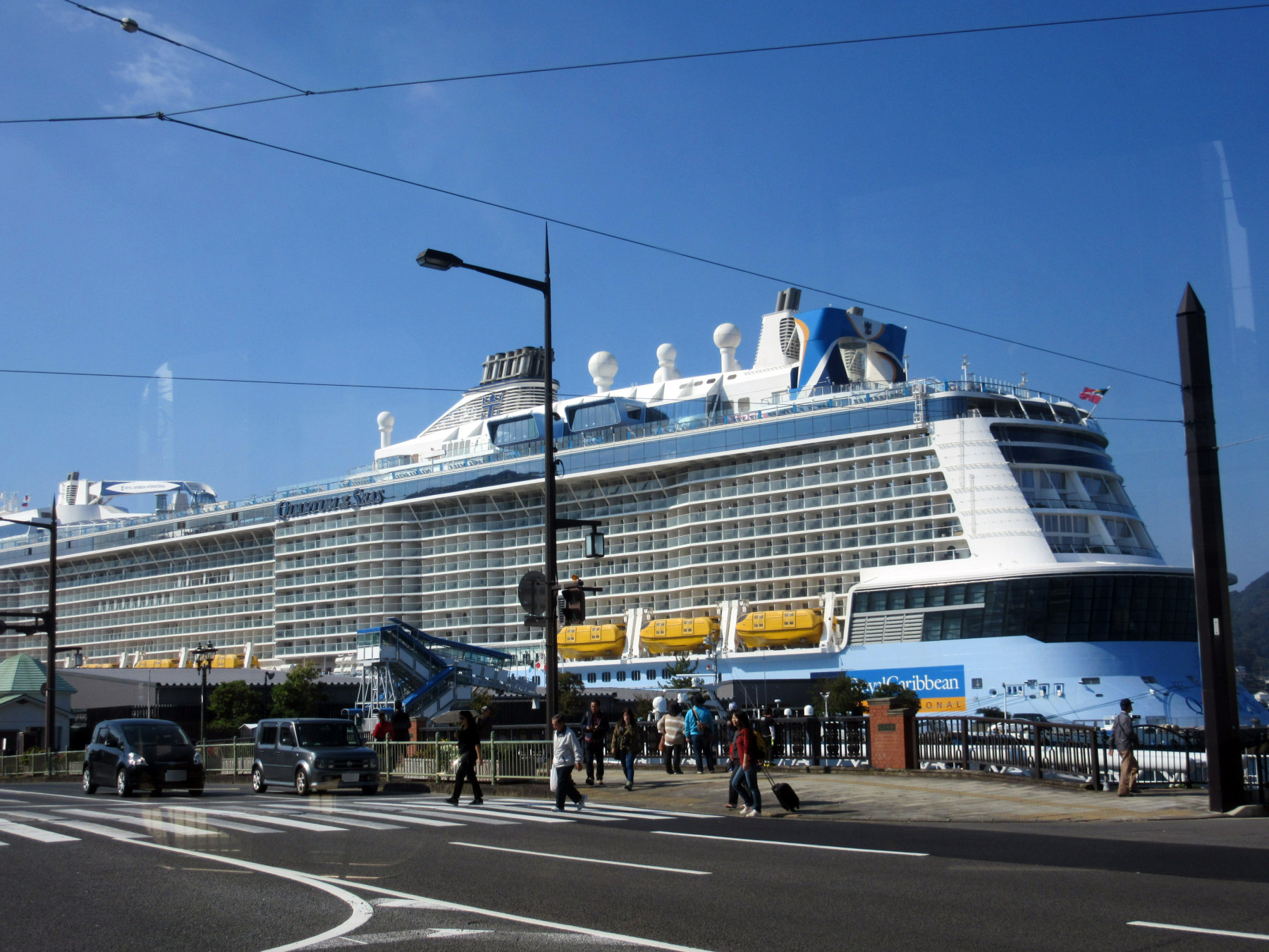 会場が長崎ブリックホールって最寄駅JRは浦上駅・・荷物が多かったので,まずは近くにとっていた宿で,荷物を預かってもらって・・路面電車でグラバー園の方へ。築町で乗り換えです。綺麗な市民病院。松ヶ枝国際ターミナルにはすんごくでっかい客船!