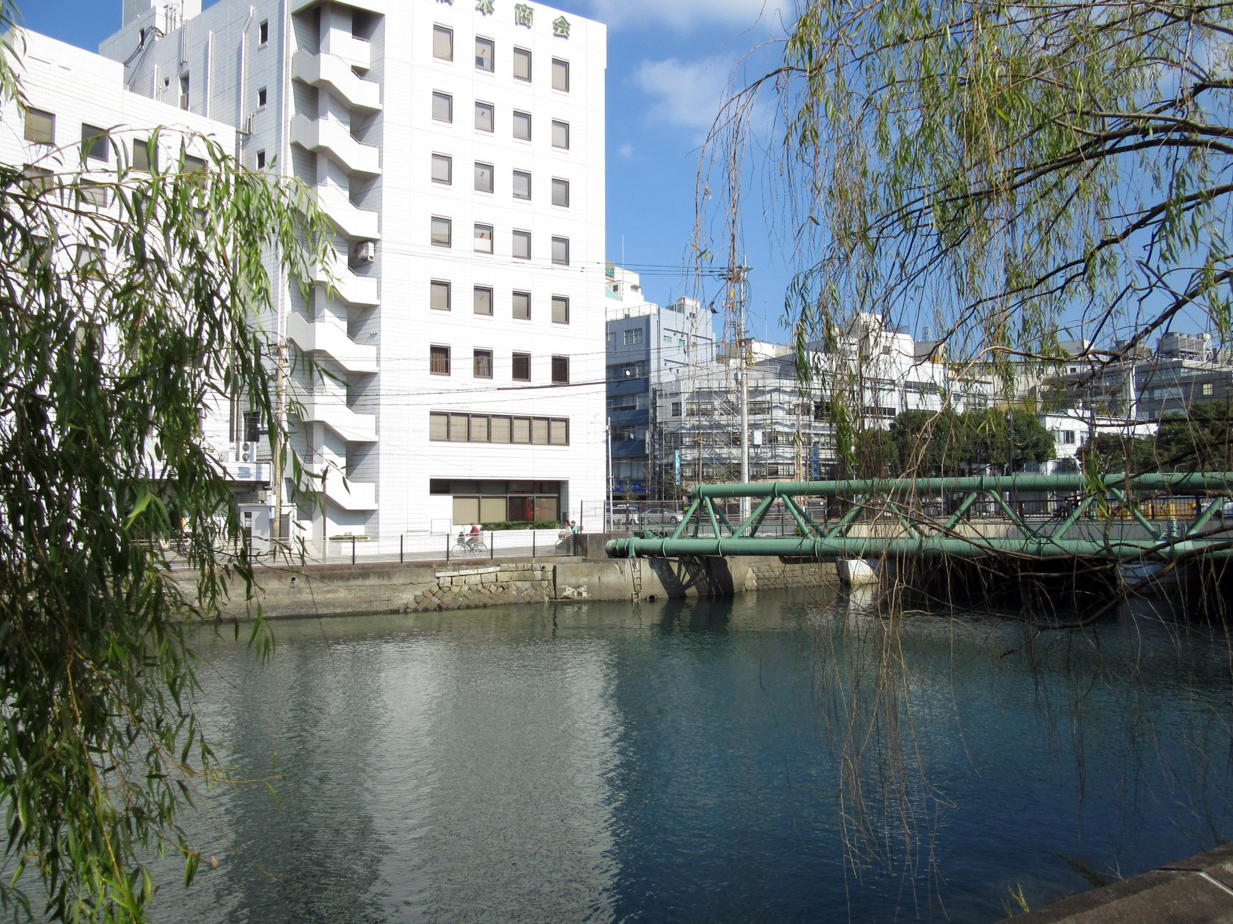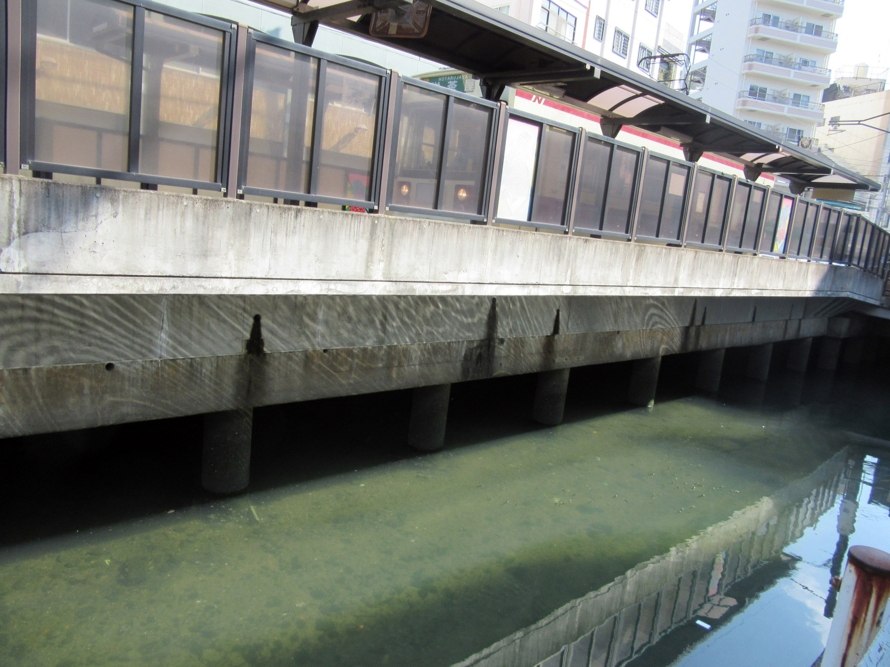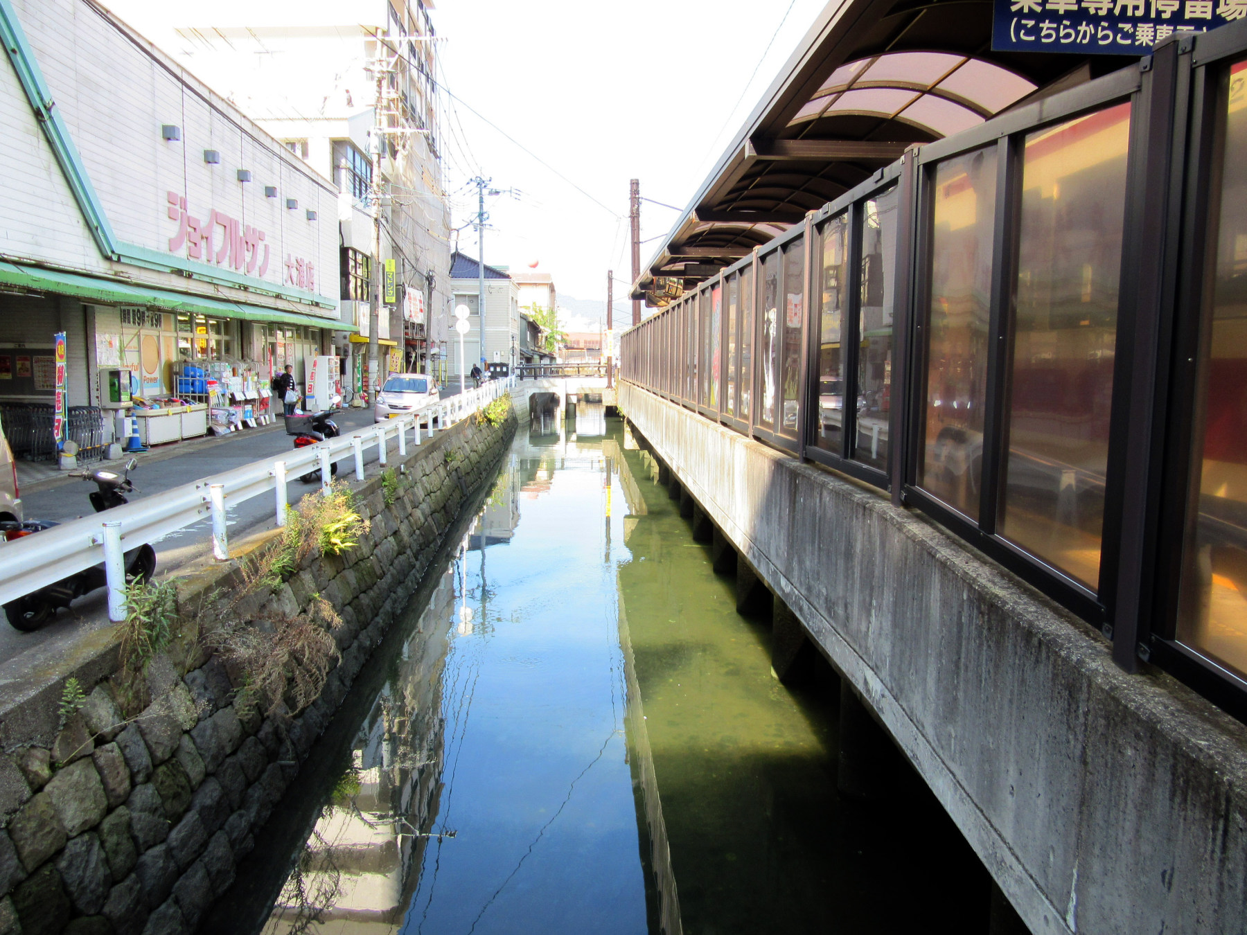 路面電車で終点の「石橋」駅! ここは大浦川の上が駅・・また,前後は暗渠になってしまっています。