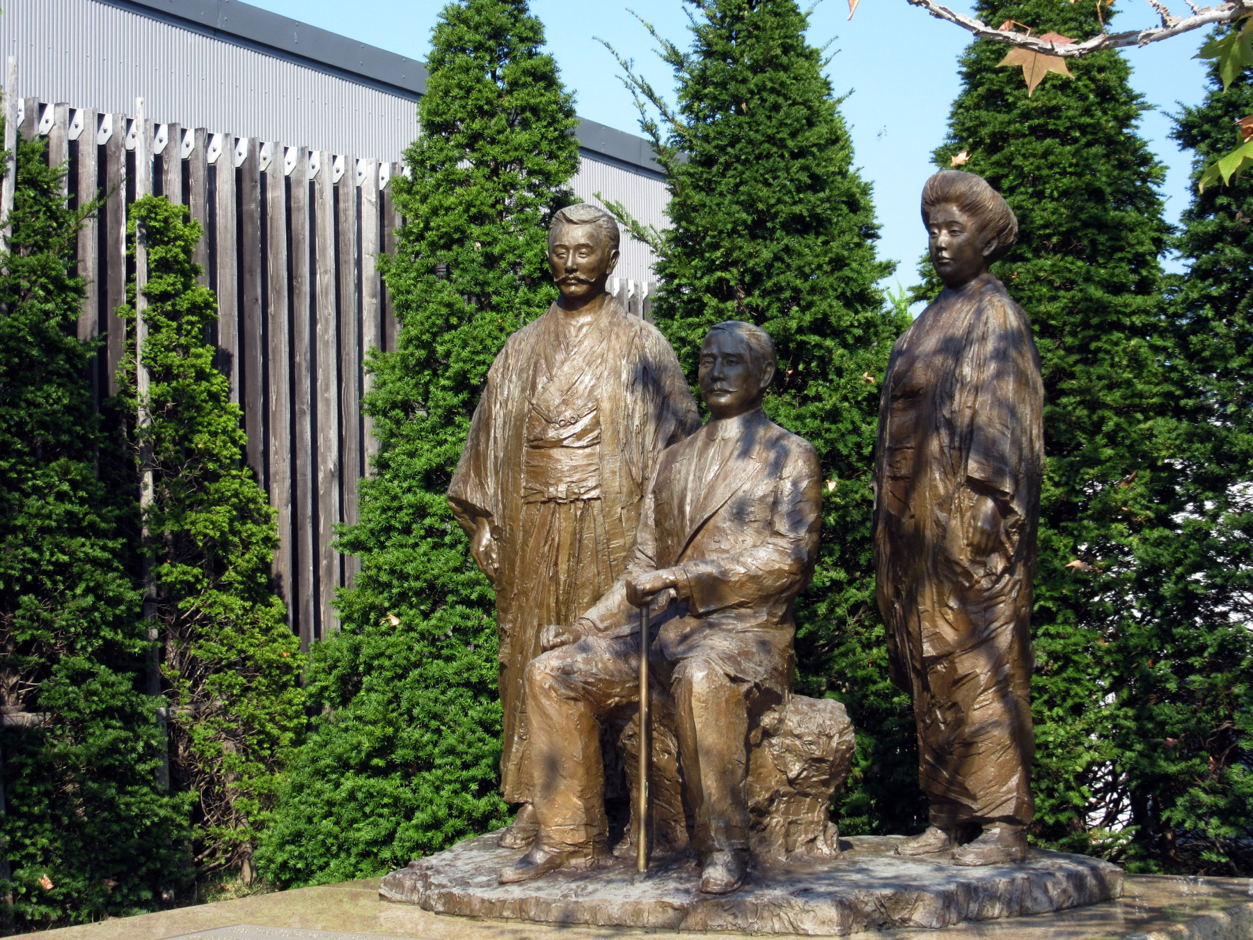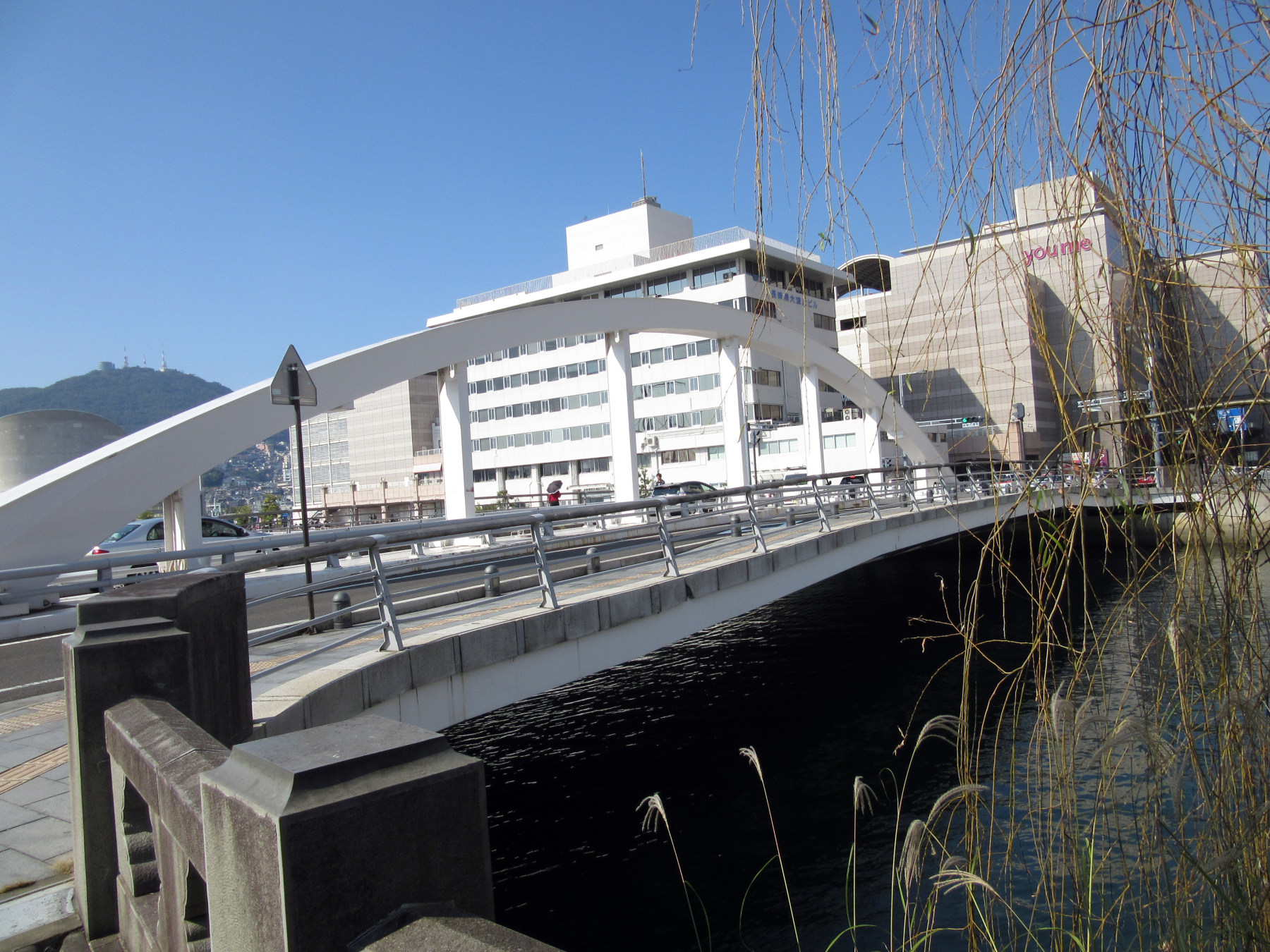 そこから中島川の石橋群の方へ・・途中の街歩きで・・法務合同庁舎にお龍さんの像! シーボルトの日本人妻になって・・・愛の証に紫陽花の学名をオタクサとしたのは,おたきさん・・から取ったのですが,そして二人の娘さんは楠本イネさんで,日本人女性で初めて産科医として西洋医学を学んだことで知られる方です。