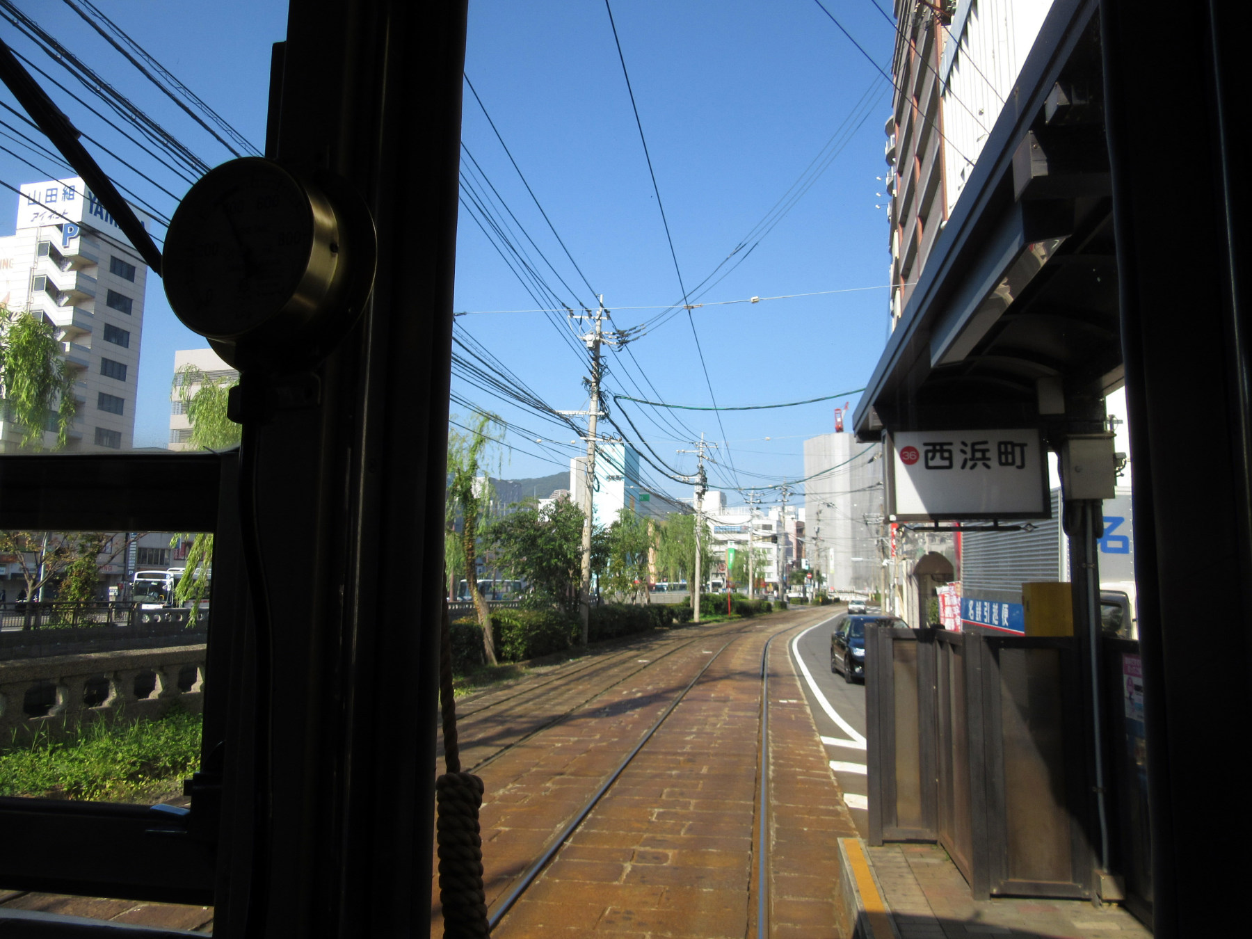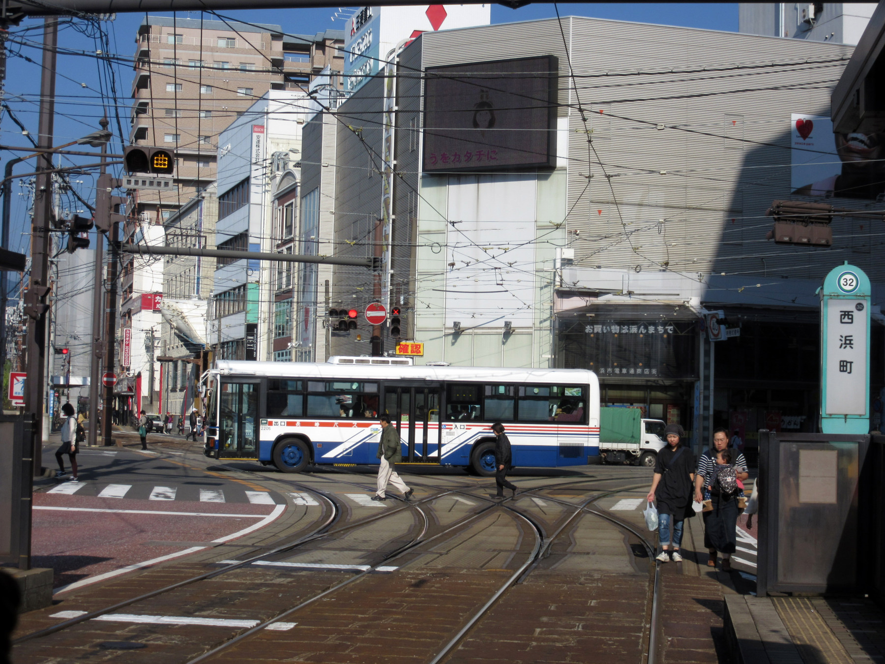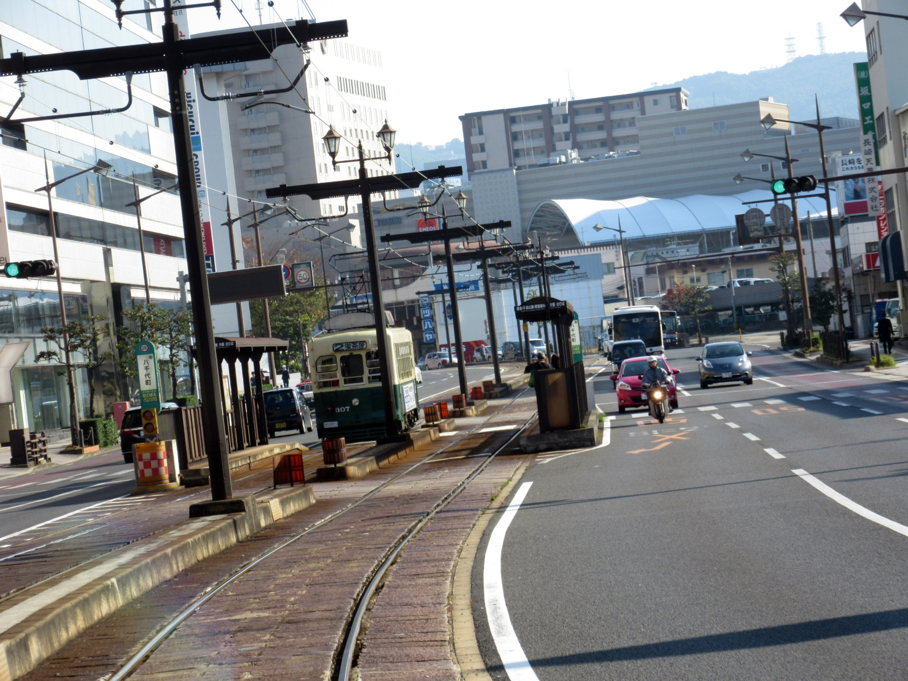教育協議会の時間もあるので・・ここから路面電車で,浦上駅の手前の茂里町駅まで・・・