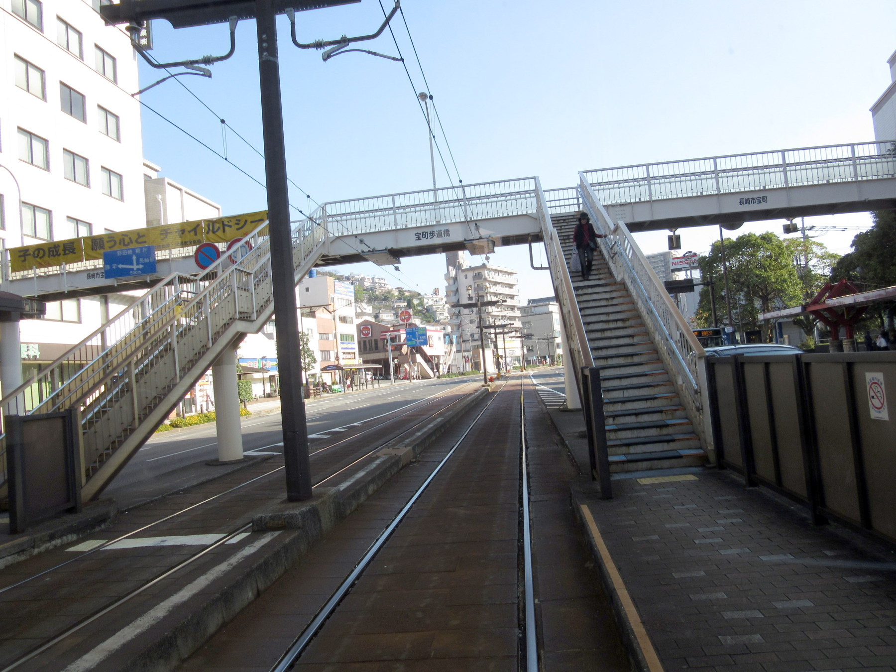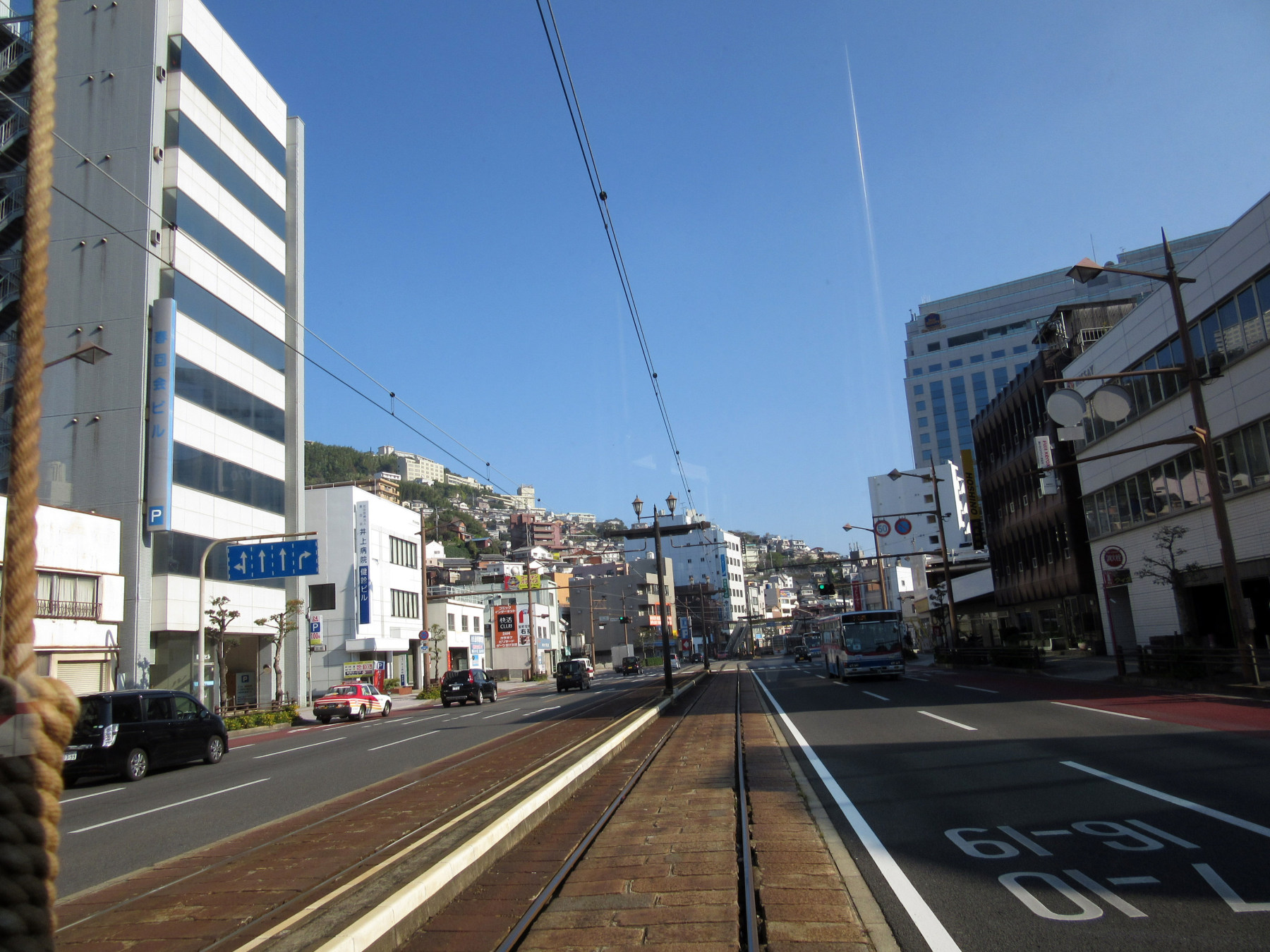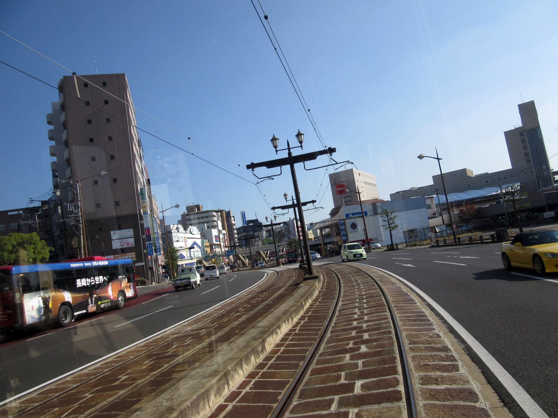 教育協議会の時間もあるので・・ここから路面電車で,浦上駅の手前の茂里町駅まで・・・