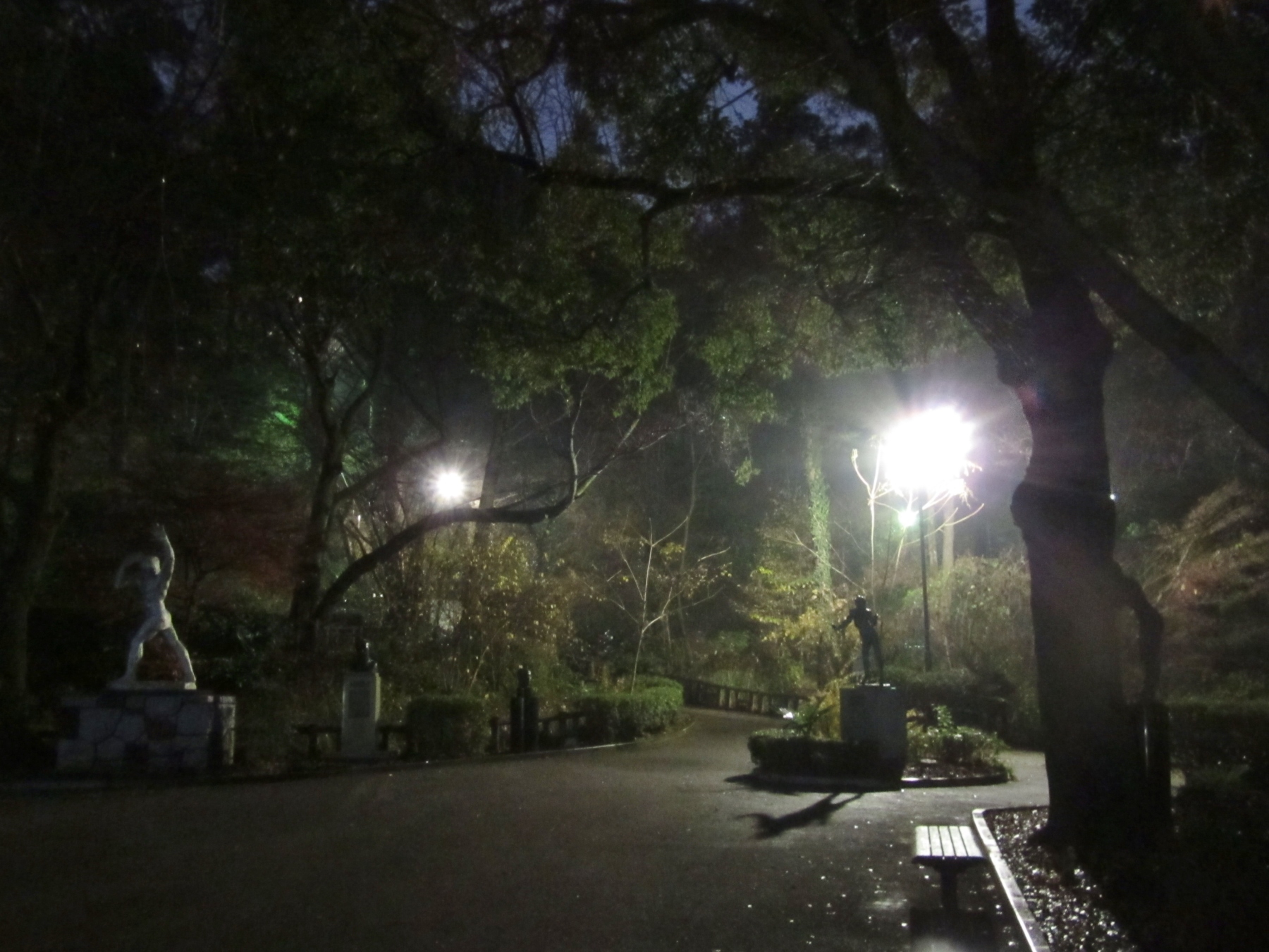 ライトが設えてあるからいいようなものの・・・どんどん黄昏から夜へって感じです。