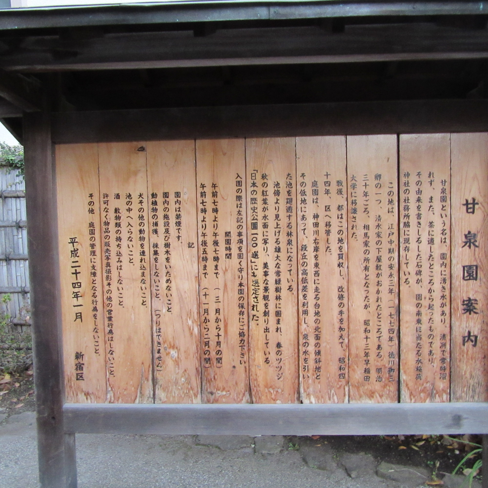 【元々当地は徳川御三卿の一つ・清水家の下屋敷があったところで、当公園は屋敷にあった回遊式の大名庭園であった。当地から湧き出ていた湧き水がお茶に適して評判であったことから、「甘泉園」と呼ばれていた。】だそうです。
