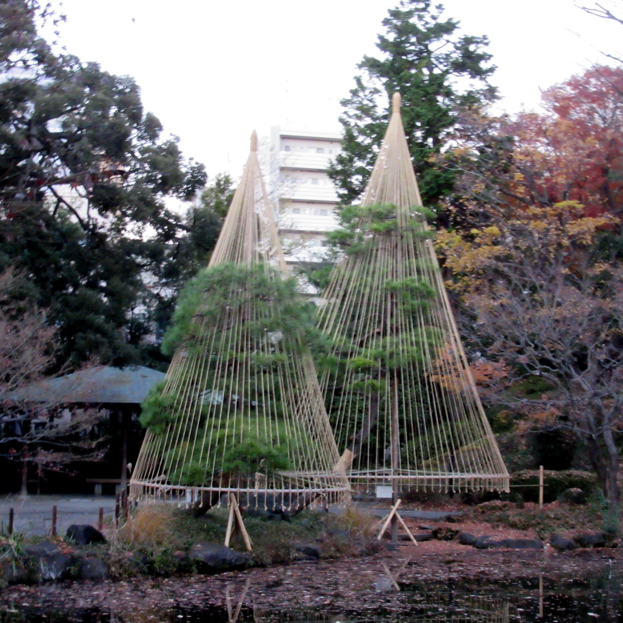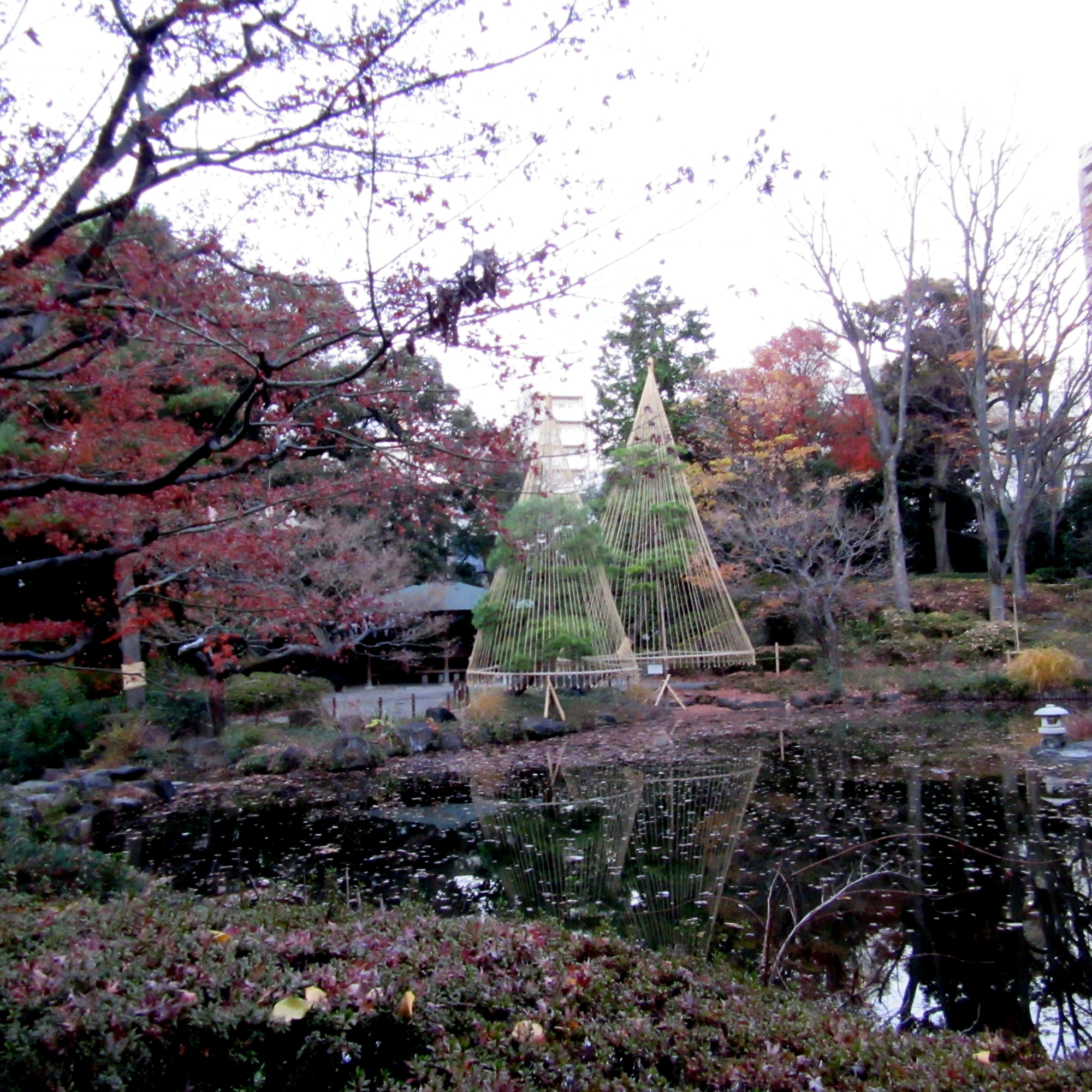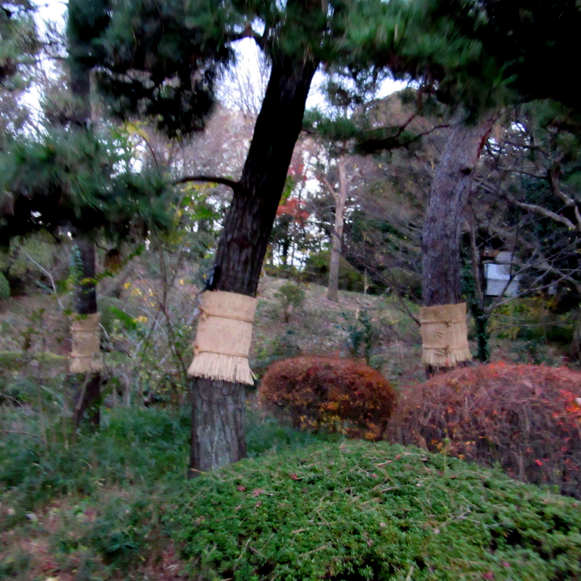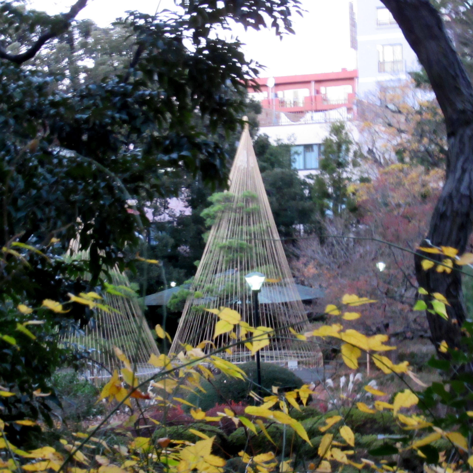 初冬の枯れた感じも落ち着いた佇まいで,雪吊りも風情です。
