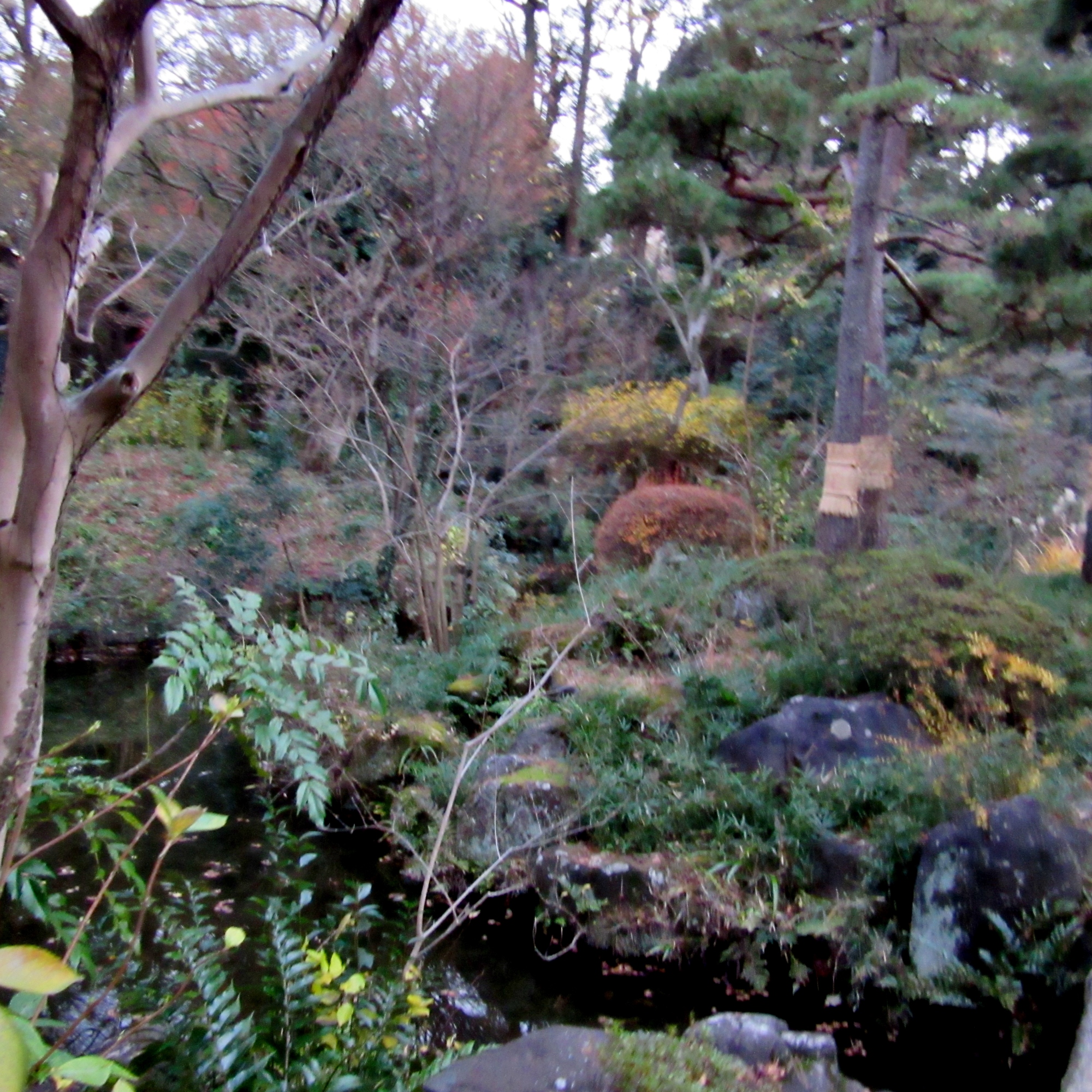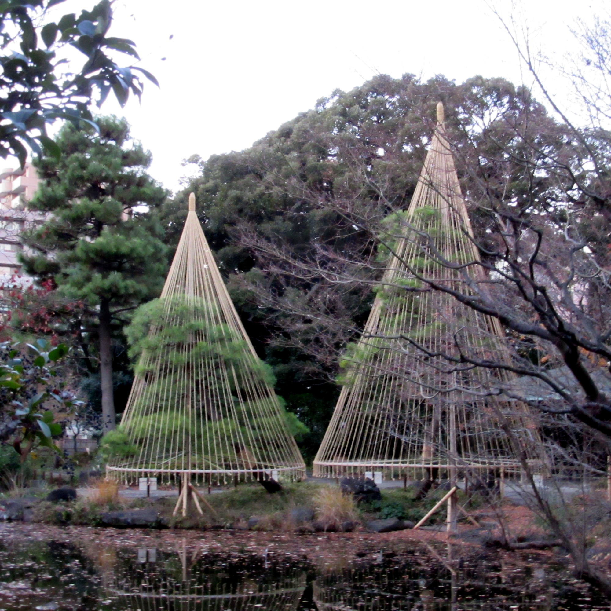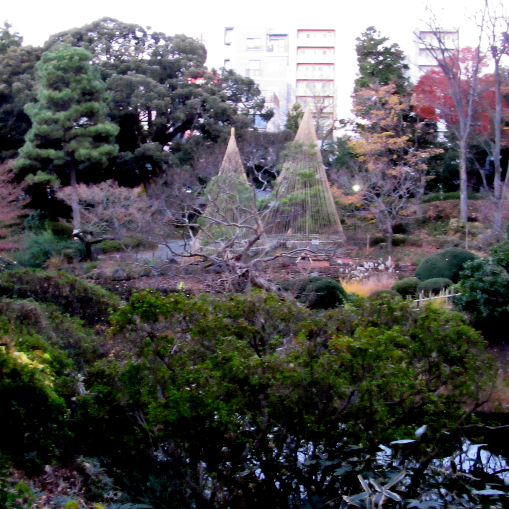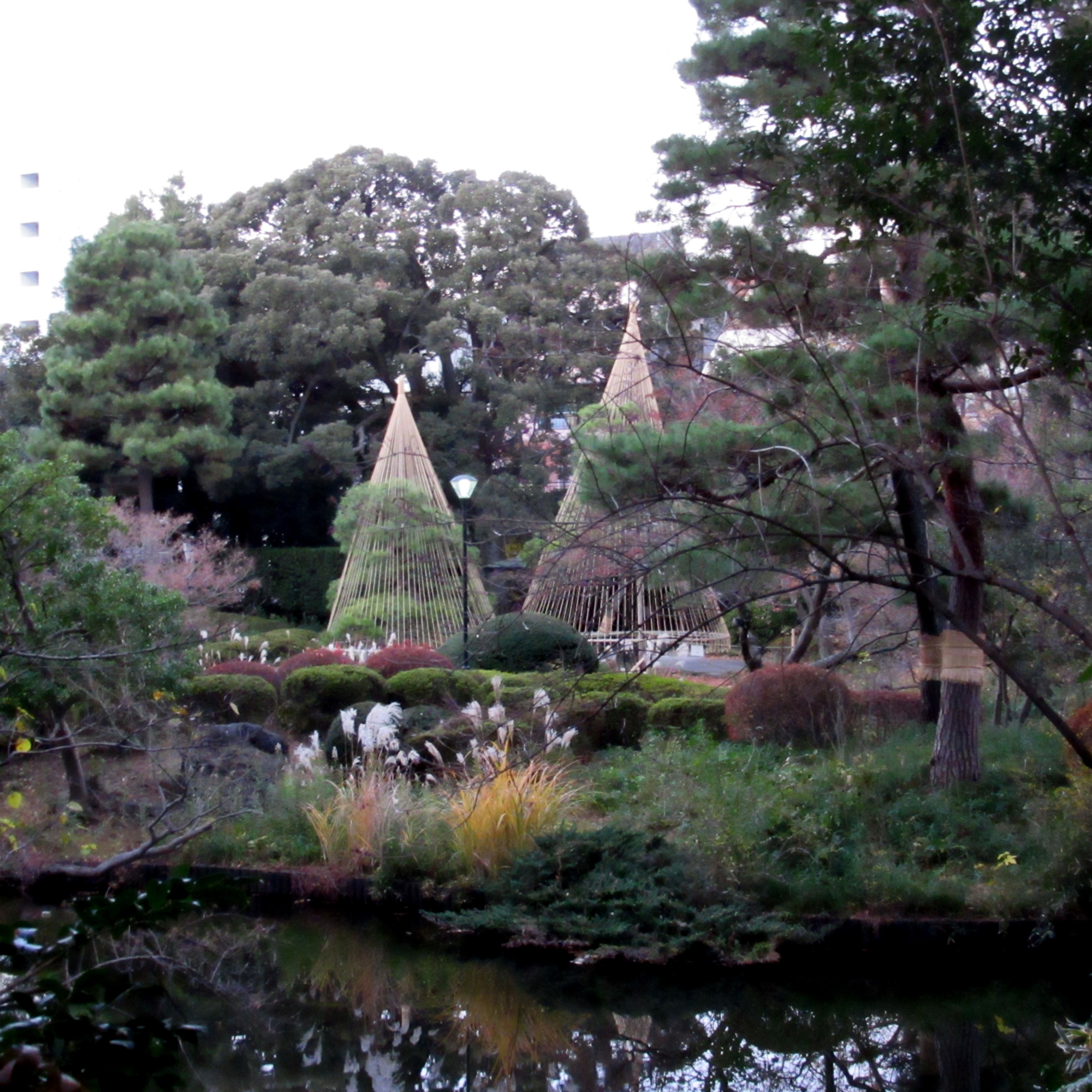初冬の枯れた感じも落ち着いた佇まいで,雪吊りも風情です。