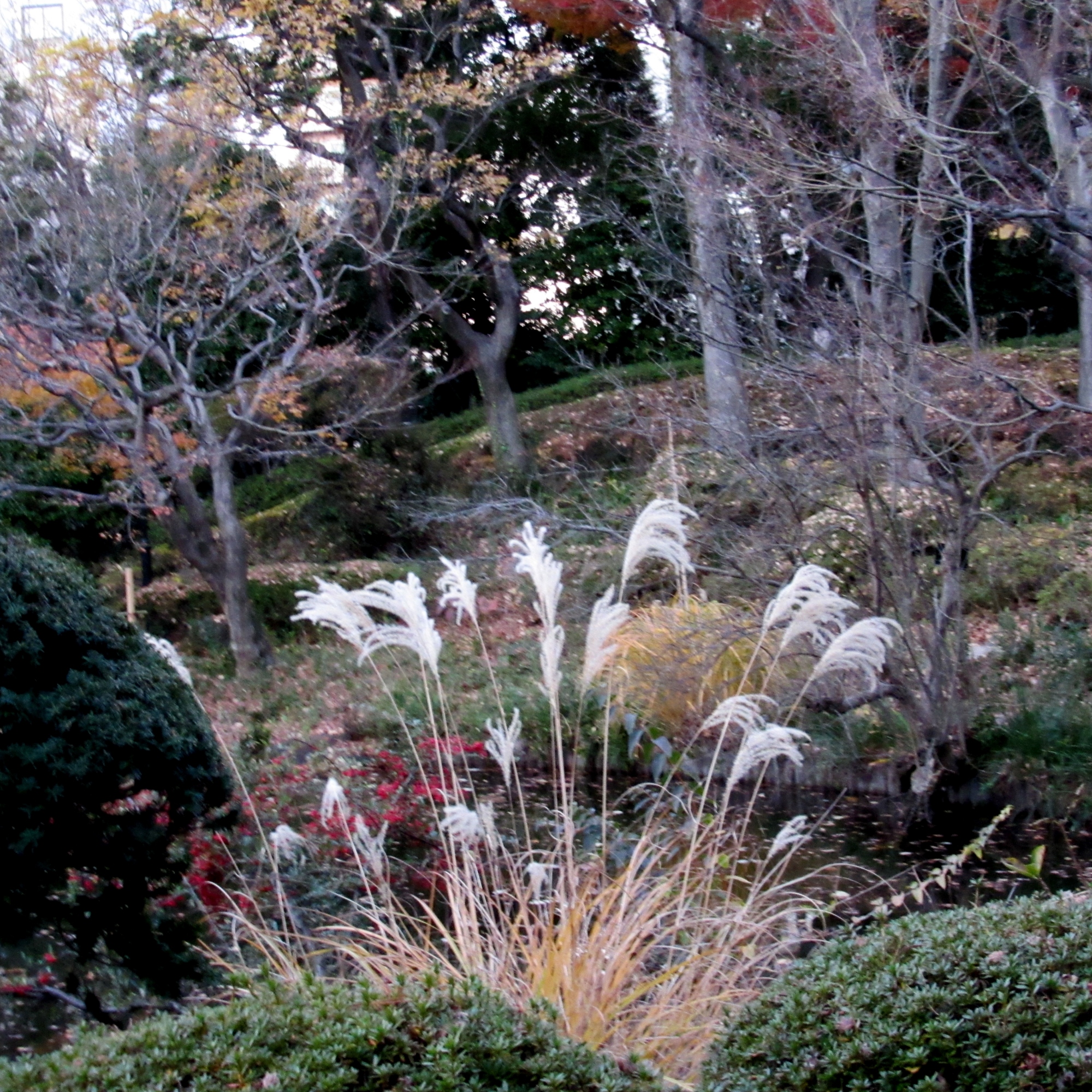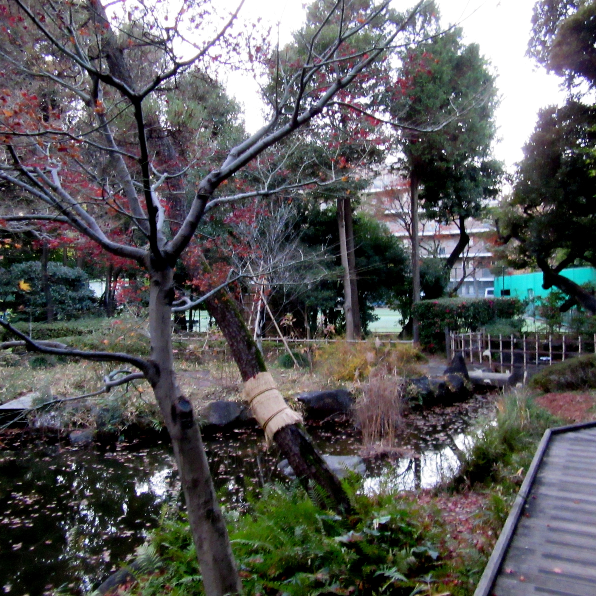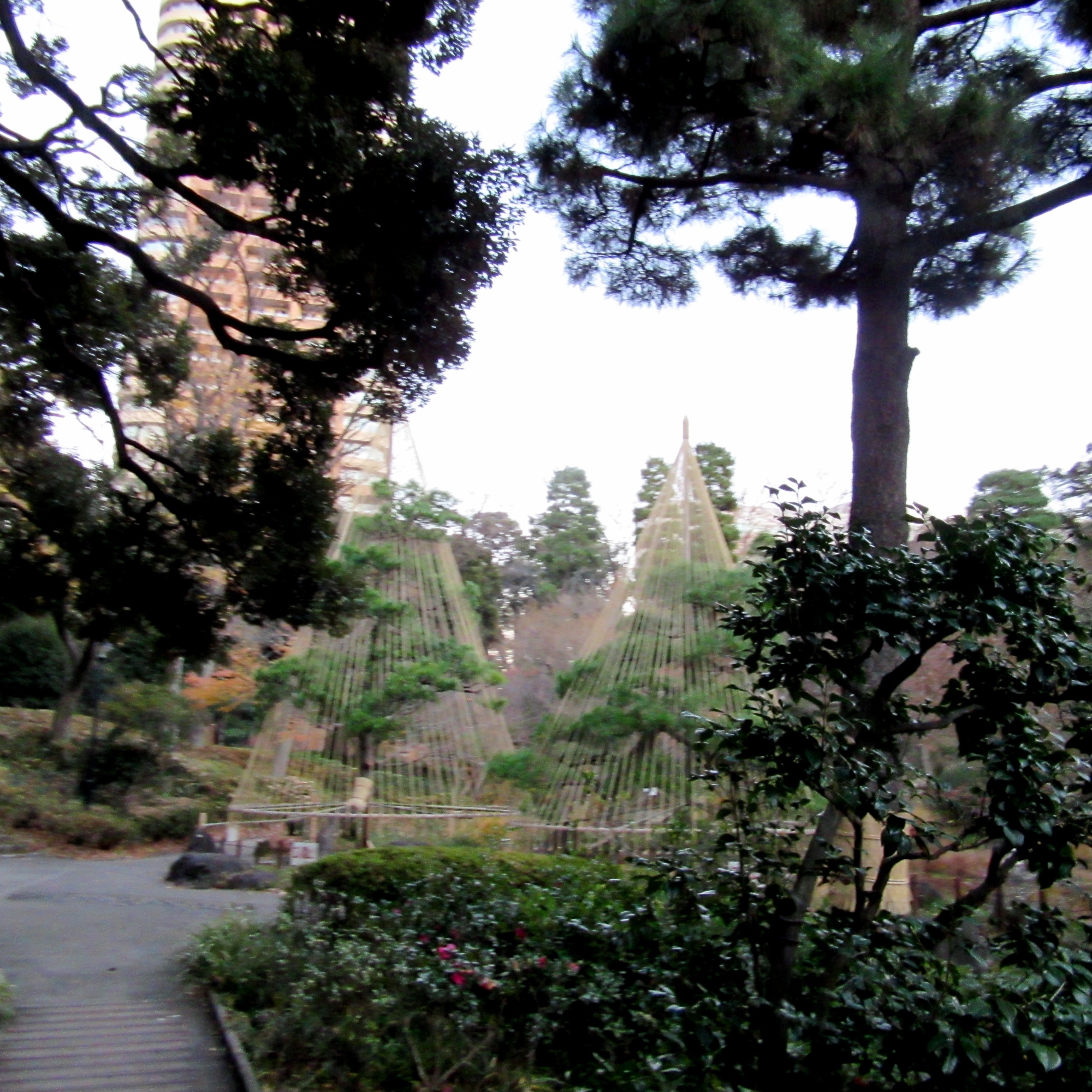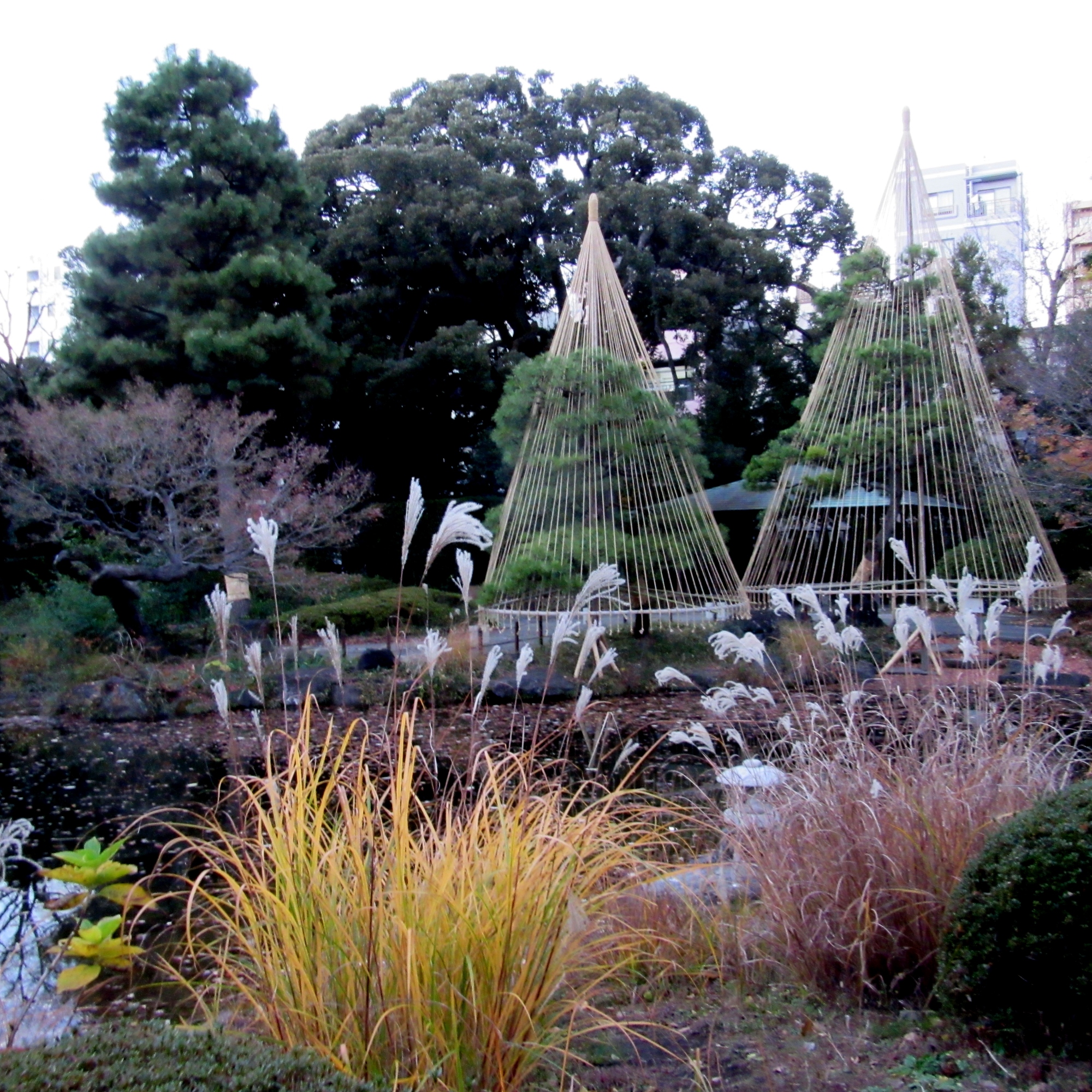 初冬の枯れた感じも落ち着いた佇まいで,雪吊りも風情です。
