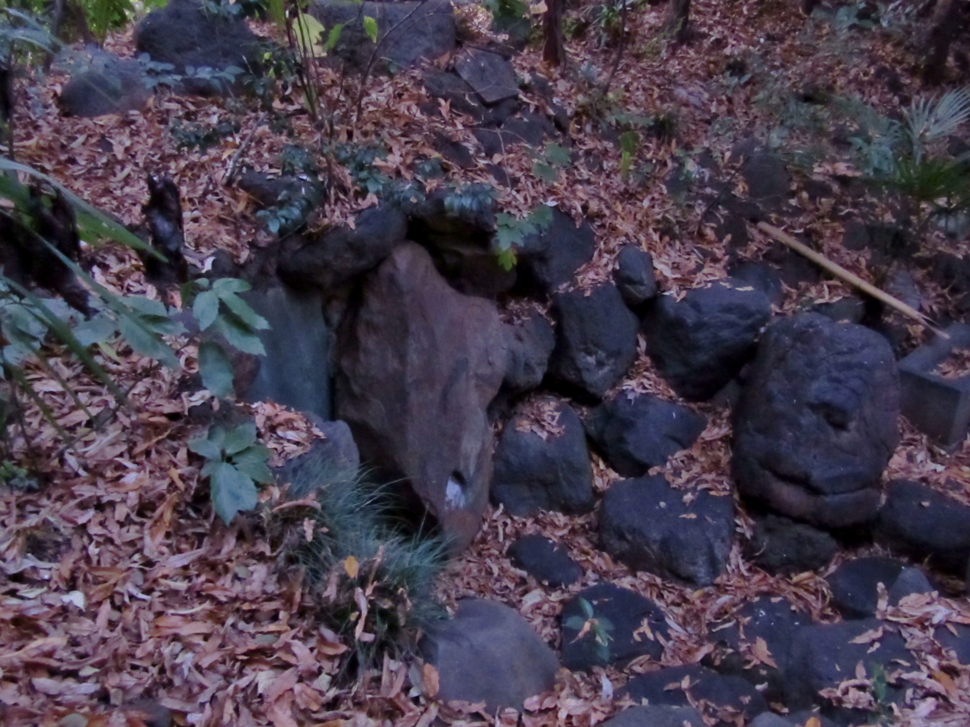【移築物ではあるこれは羨門か玄門だと思われるが、自然石で構成されており、これを見る限り、富塚古墳は6世紀台のものであったと思われる。周囲には元々富士塚に使用されていたと思われる溶岩が配置されている。】どなたかのブログの記載ですが,でも,古墳なんですね!