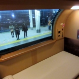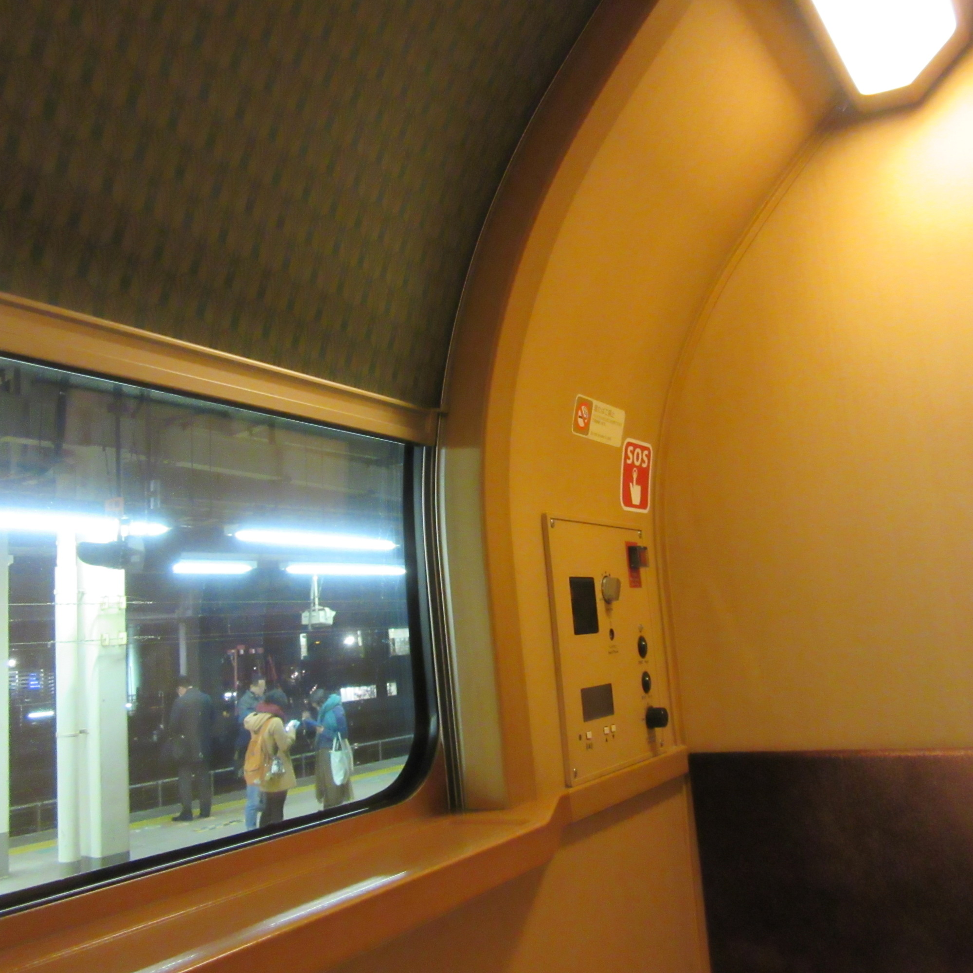 先ほど東京駅を出発!22:00発。岡山には6:27着予定です!!丸の内側のコンパートメントだったので,少しだけ車窓の様子を