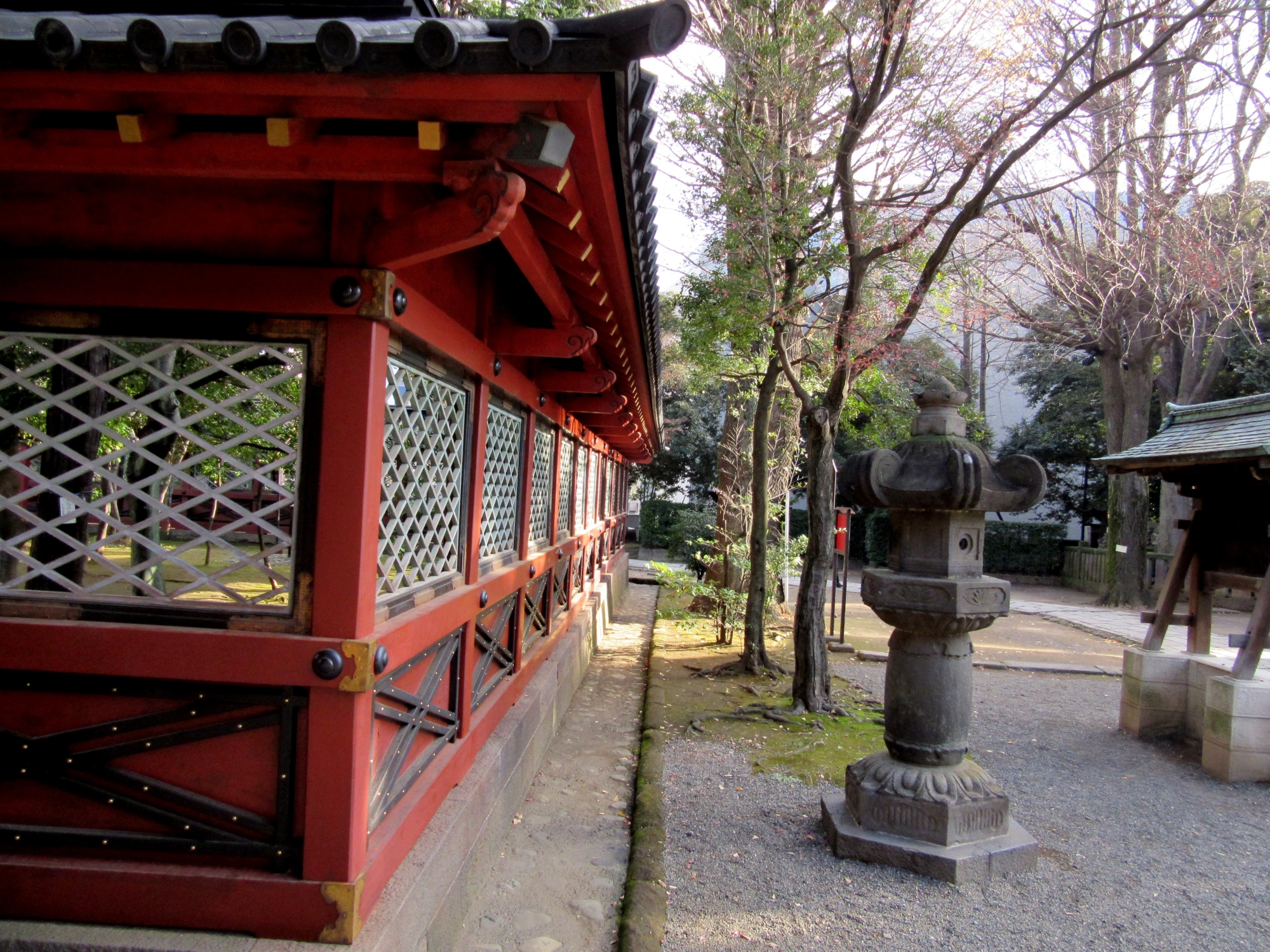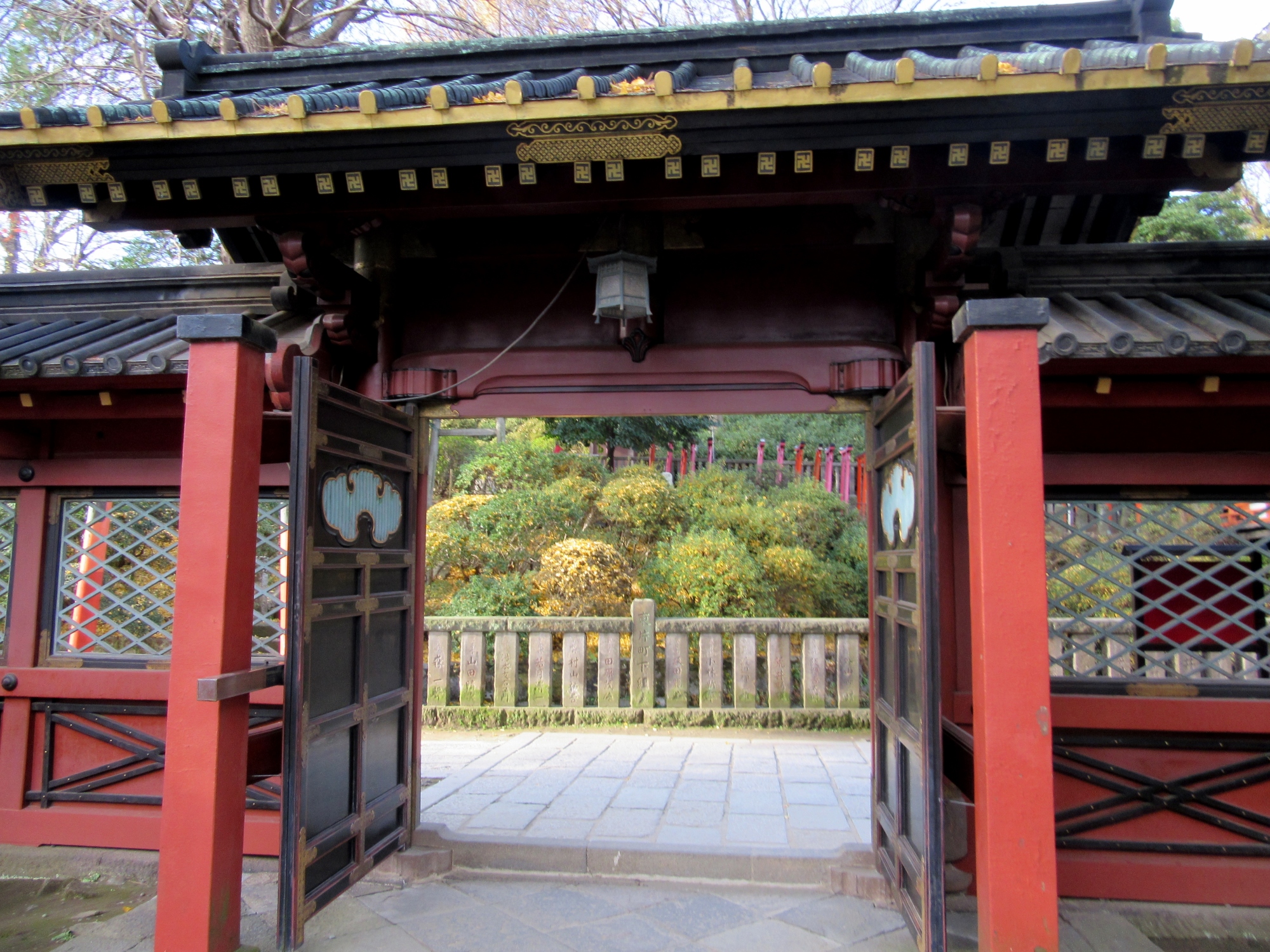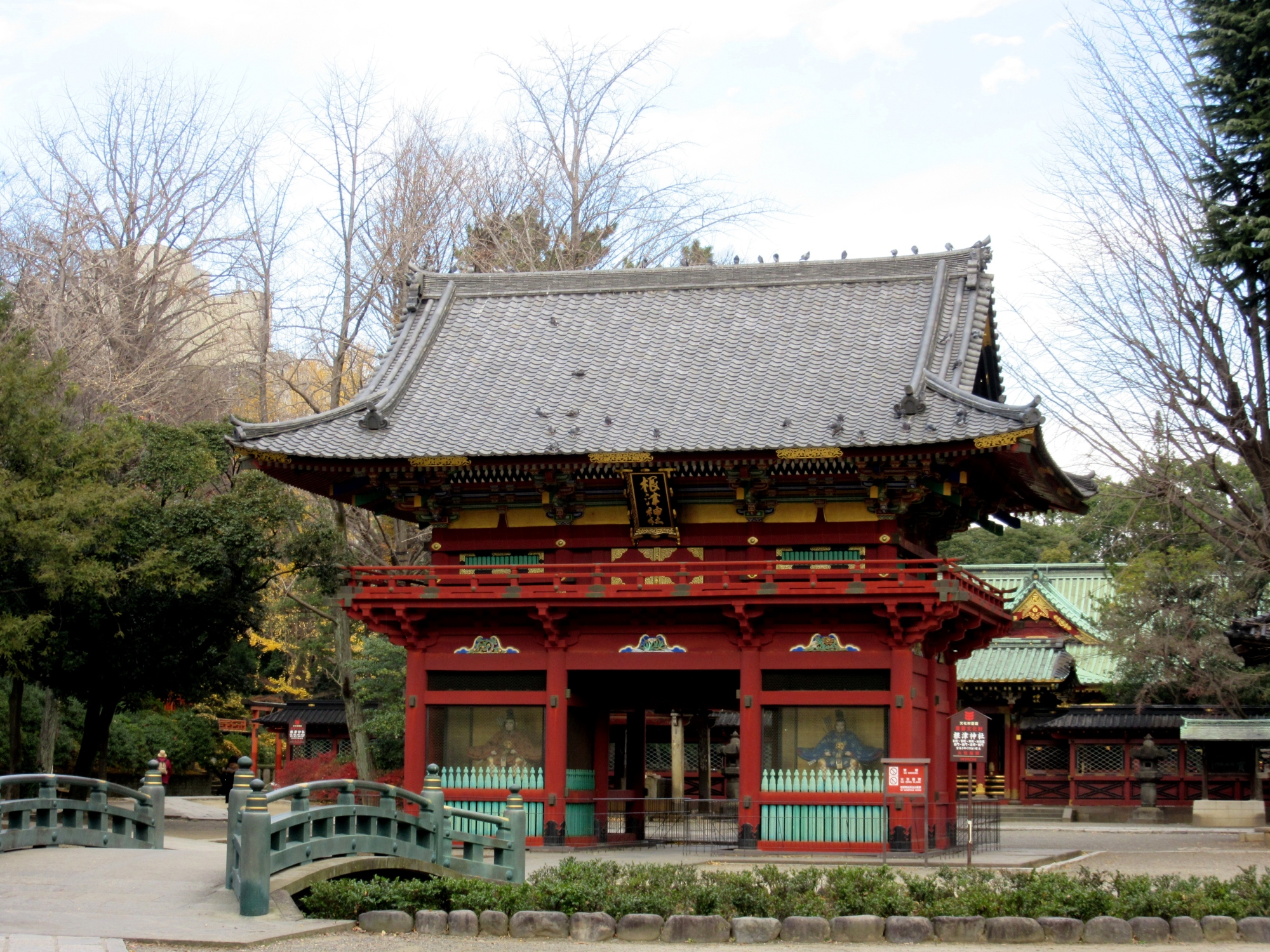 【1900年ほど前に日本武尊が千駄木に創祀したとされる。文明年間(1469年-1486年)には太田道灌により社殿が造られた。万治年間(1658年-1661年)に同所が太田氏の屋敷地となったため東方に移り、のちさらに団子坂上(現文京区立本郷図書館周辺、元根津)に遷座した[3]。宝永2年(1705年)江戸幕府第5代将軍徳川綱吉が兄綱重の子・綱豊(甲府藩主。のちの第6代将軍・家宣)を養嗣子に定めた。綱豊が江戸城に移ると、当社が家宣の産土神とされていたことから、綱豊の屋敷地(旧甲府藩邸、現在地)を当社に献納して普請を開始した[3]。社殿は宝永3年(1706年)に完成し、同年遷座した。】だそうです,